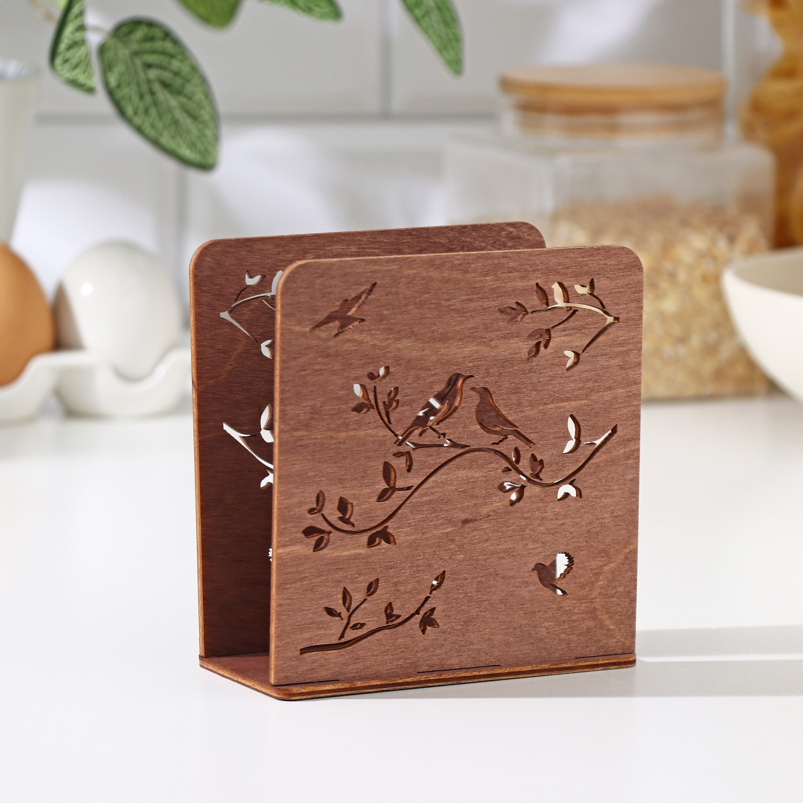 Салфетница деревянная «весенняя сказка», 12x12x5,5 см, цвет коричневый