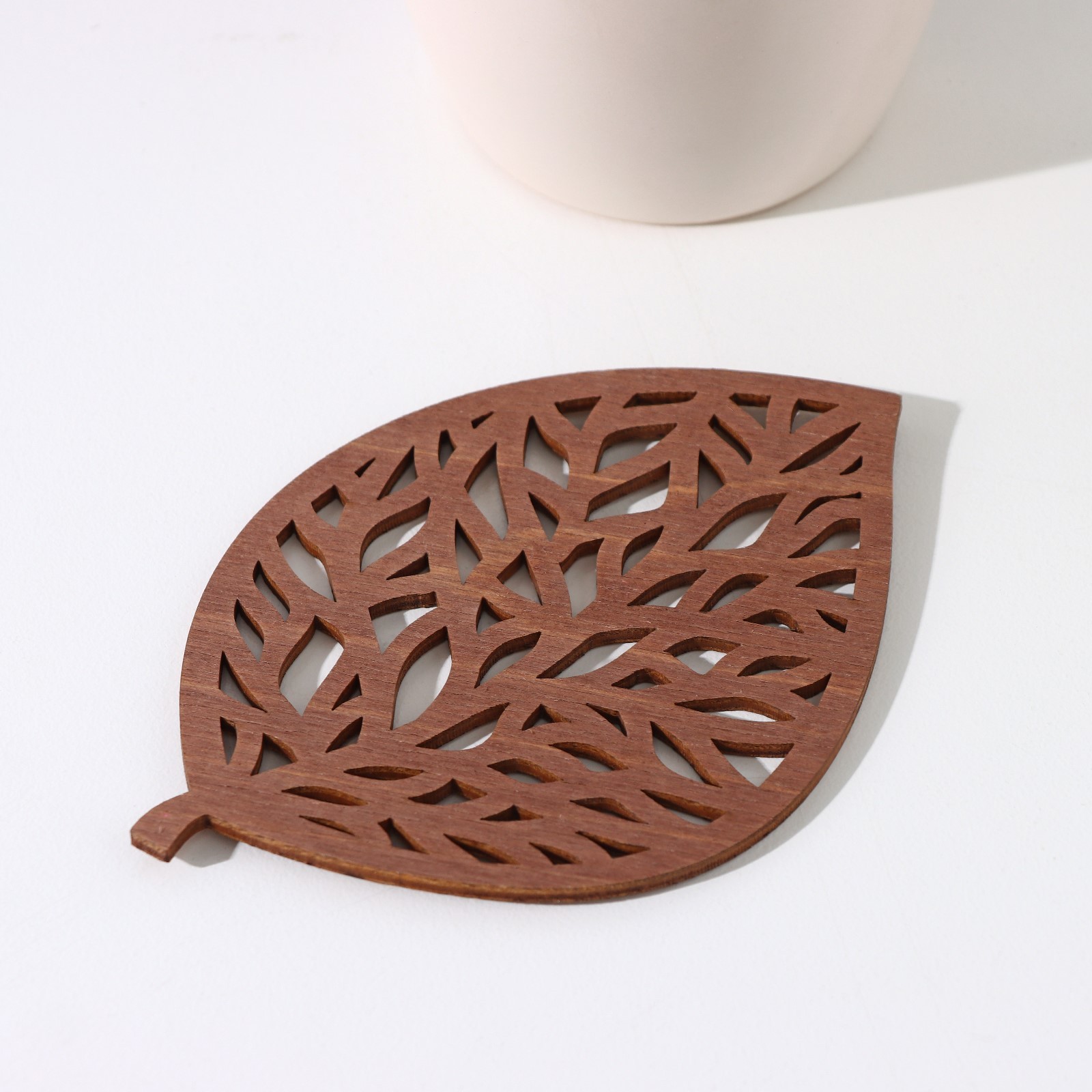 Подставка под горячее деревянная «листочек», 9x9 см, цвет коричневый