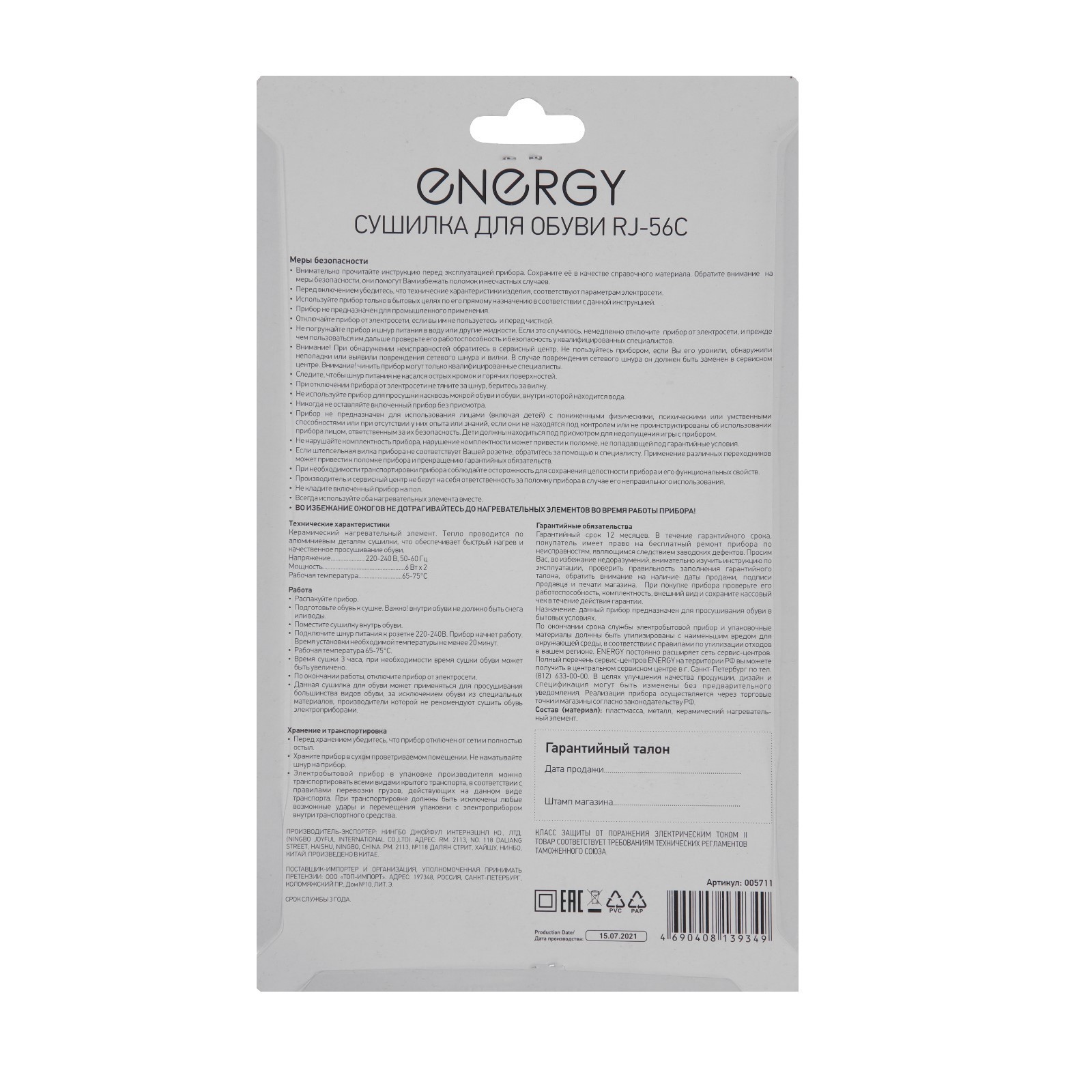 Сушилка для обуви Energy Rj-56с, 12 вт, раздвижная, 17-22 см, блистер