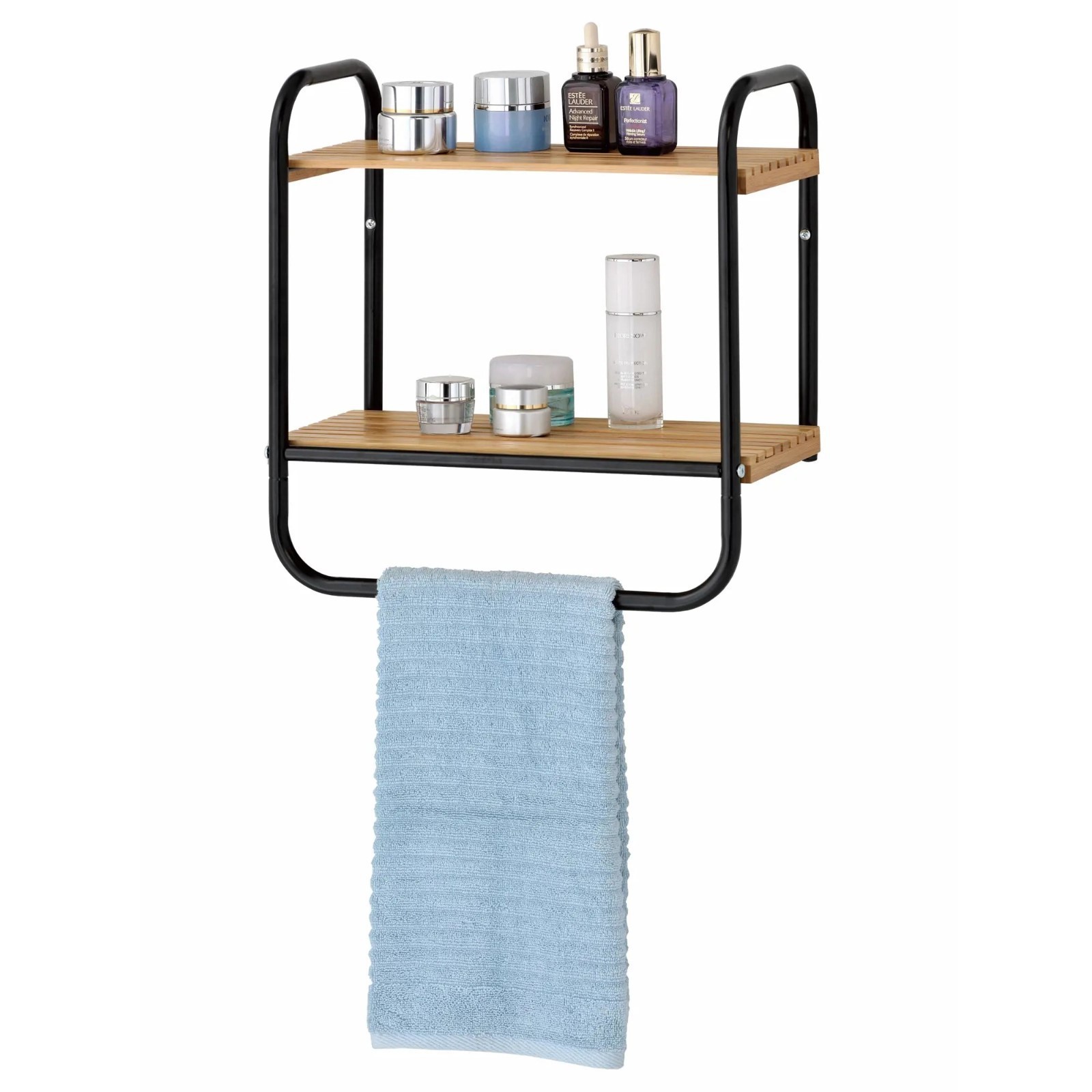 Полка подвесная Osaka, в ванную комнату, с планкой для полотенца, чёрная