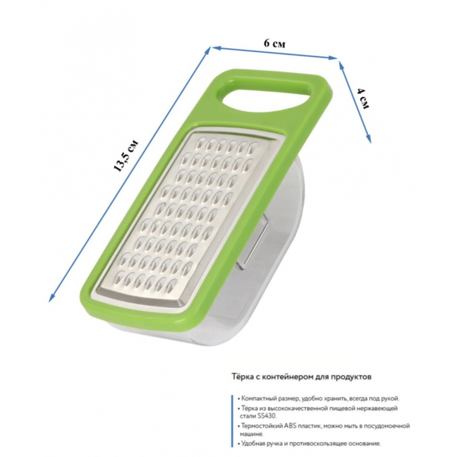 Тёрка Provence, из нержавеющей стали, с контейнером, зелёная
