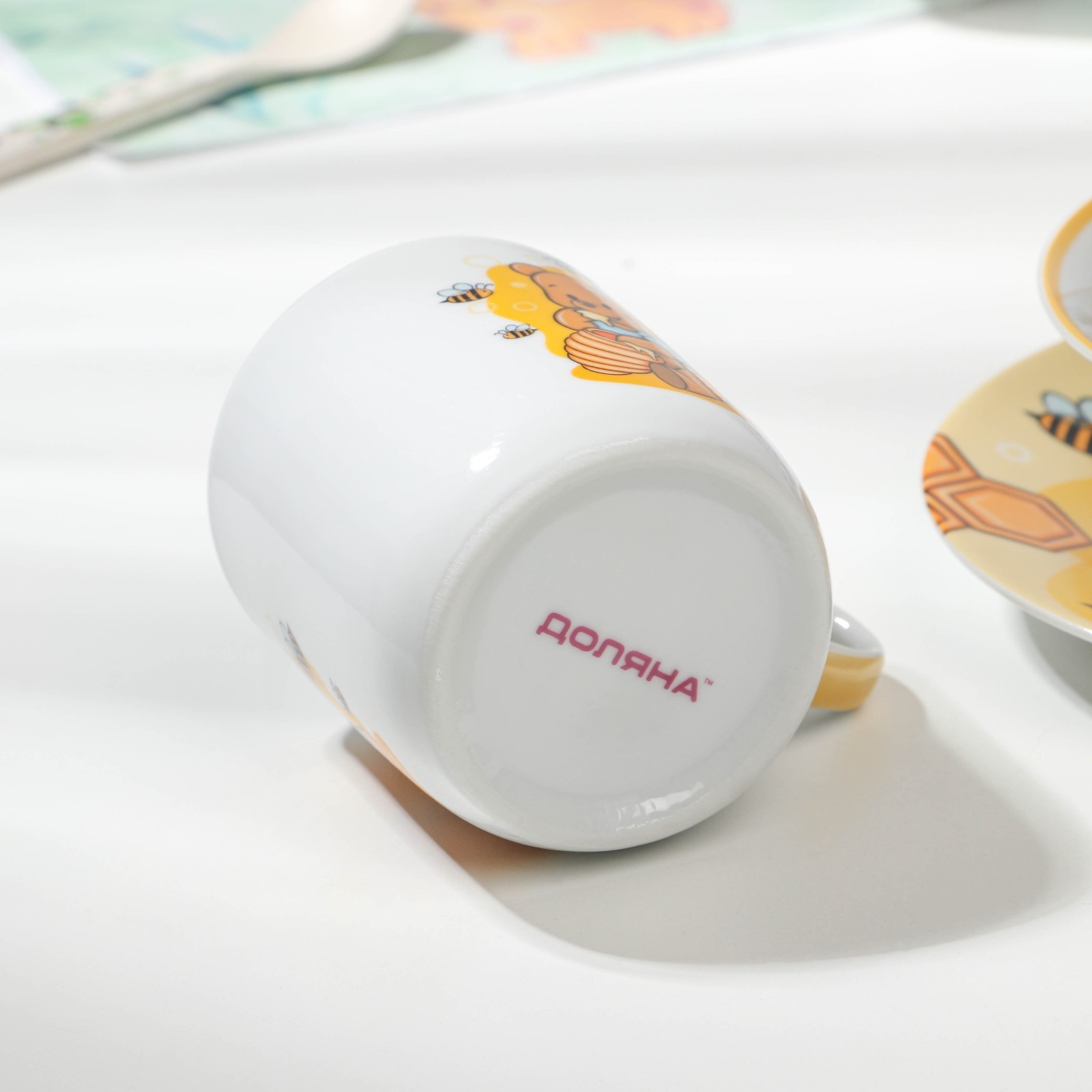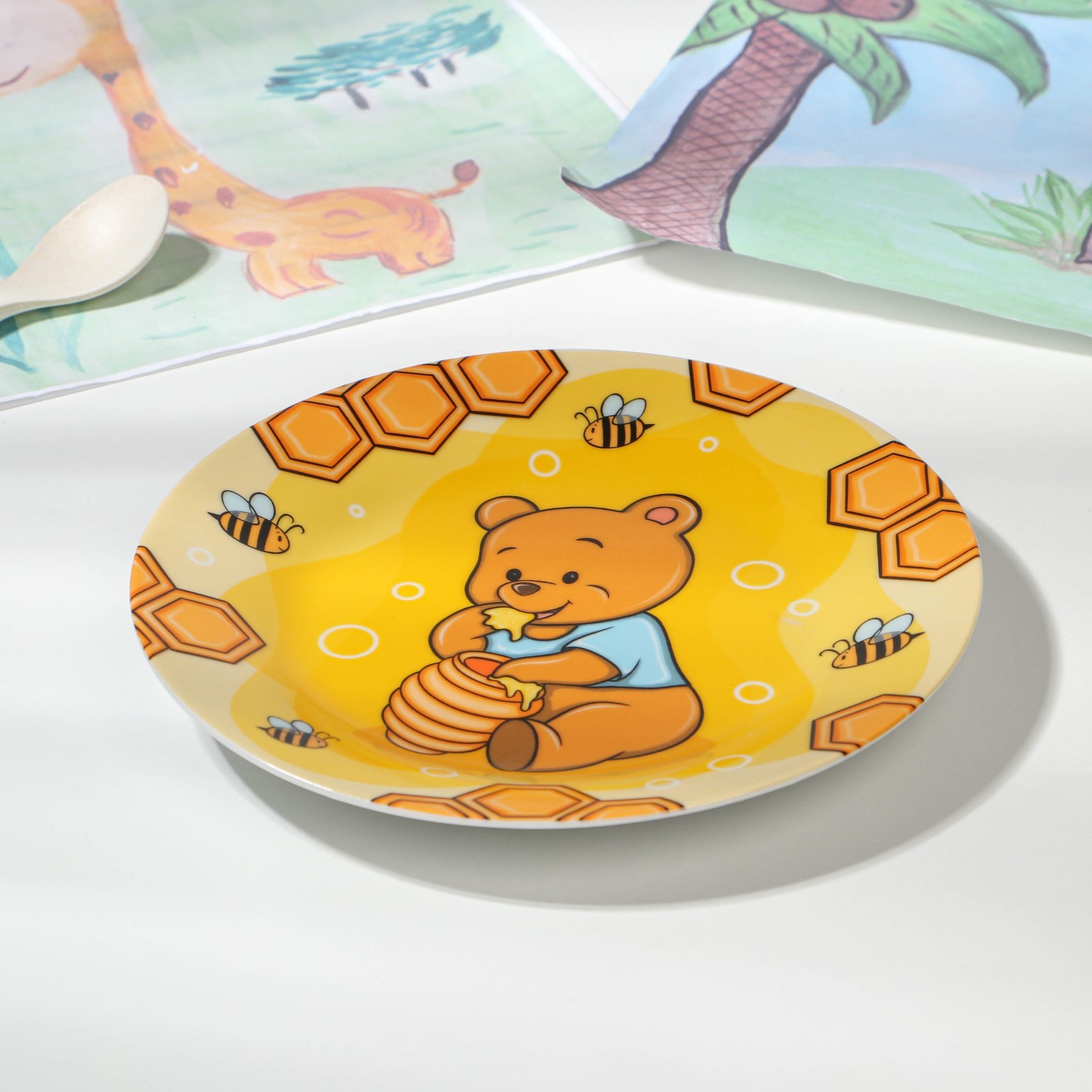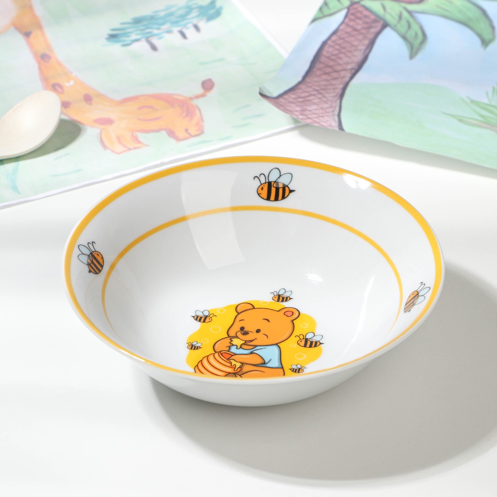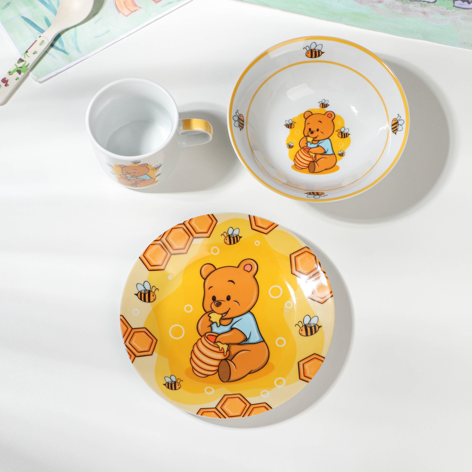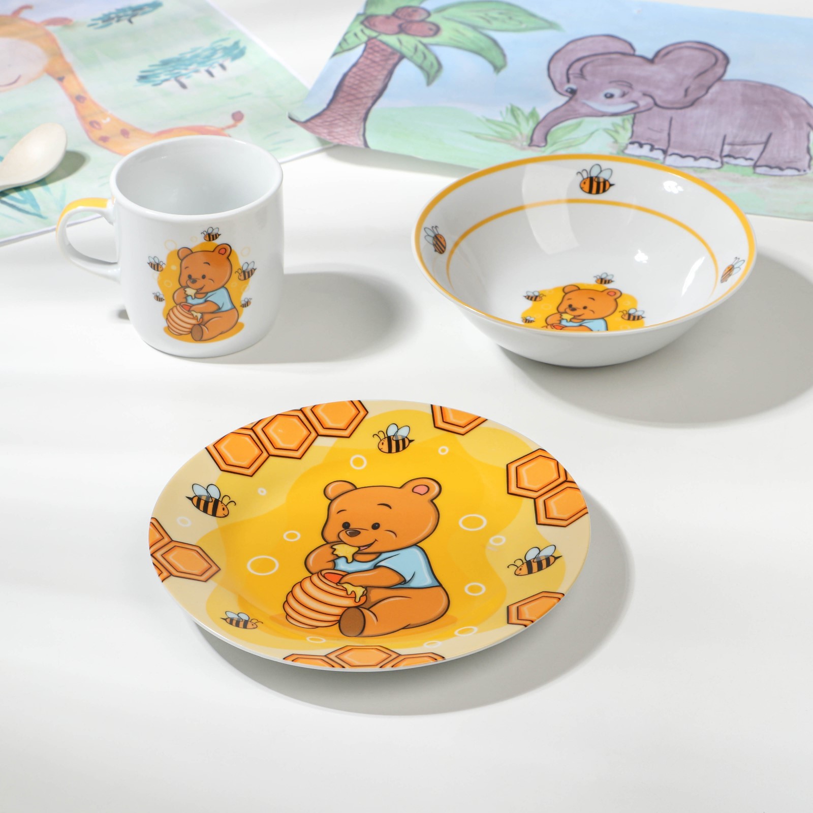 Набор детской посуды из керамики доляна «медвежонок и мёд», 3 предмета: кружка 230 мл, миска 400 мл, тарелка D=18 см