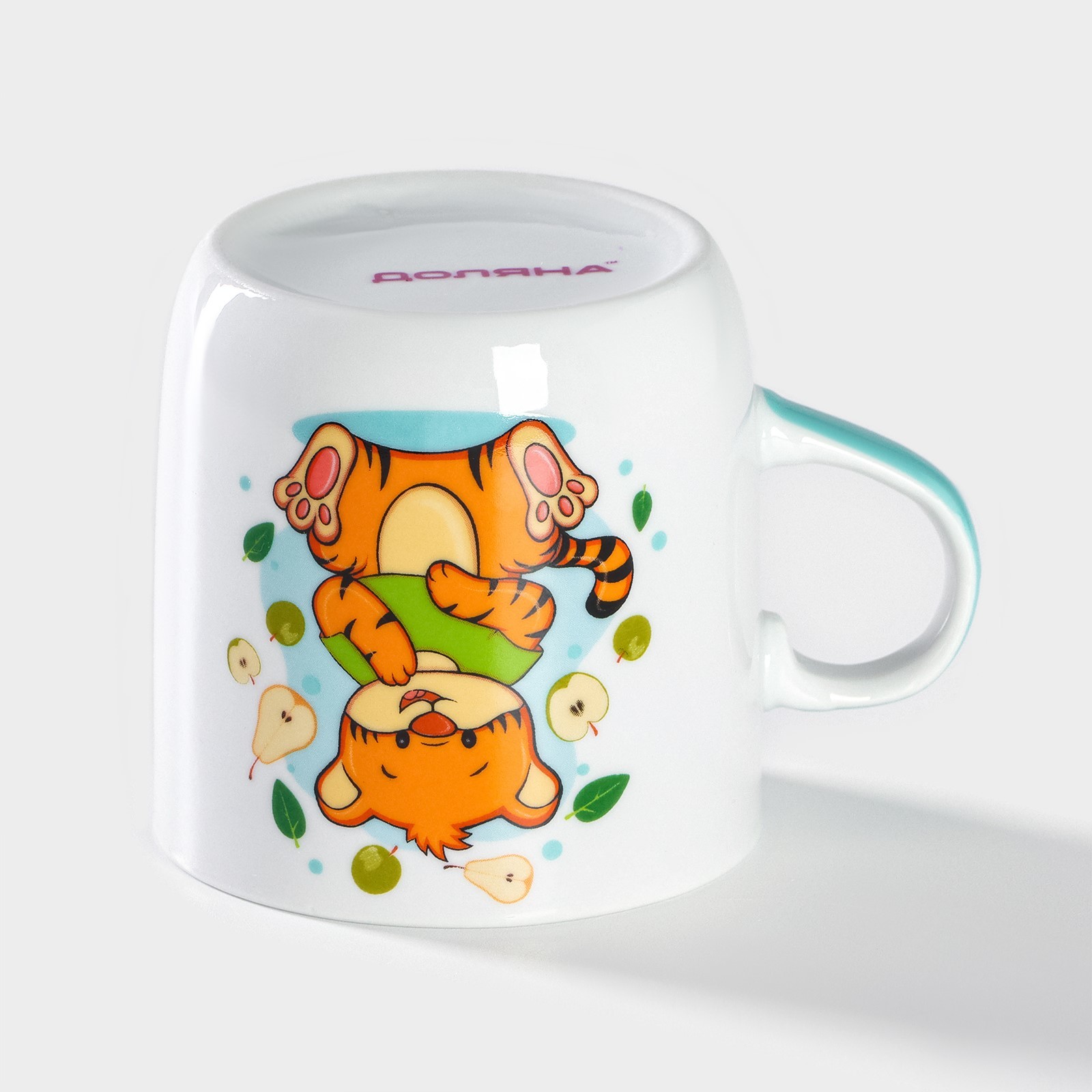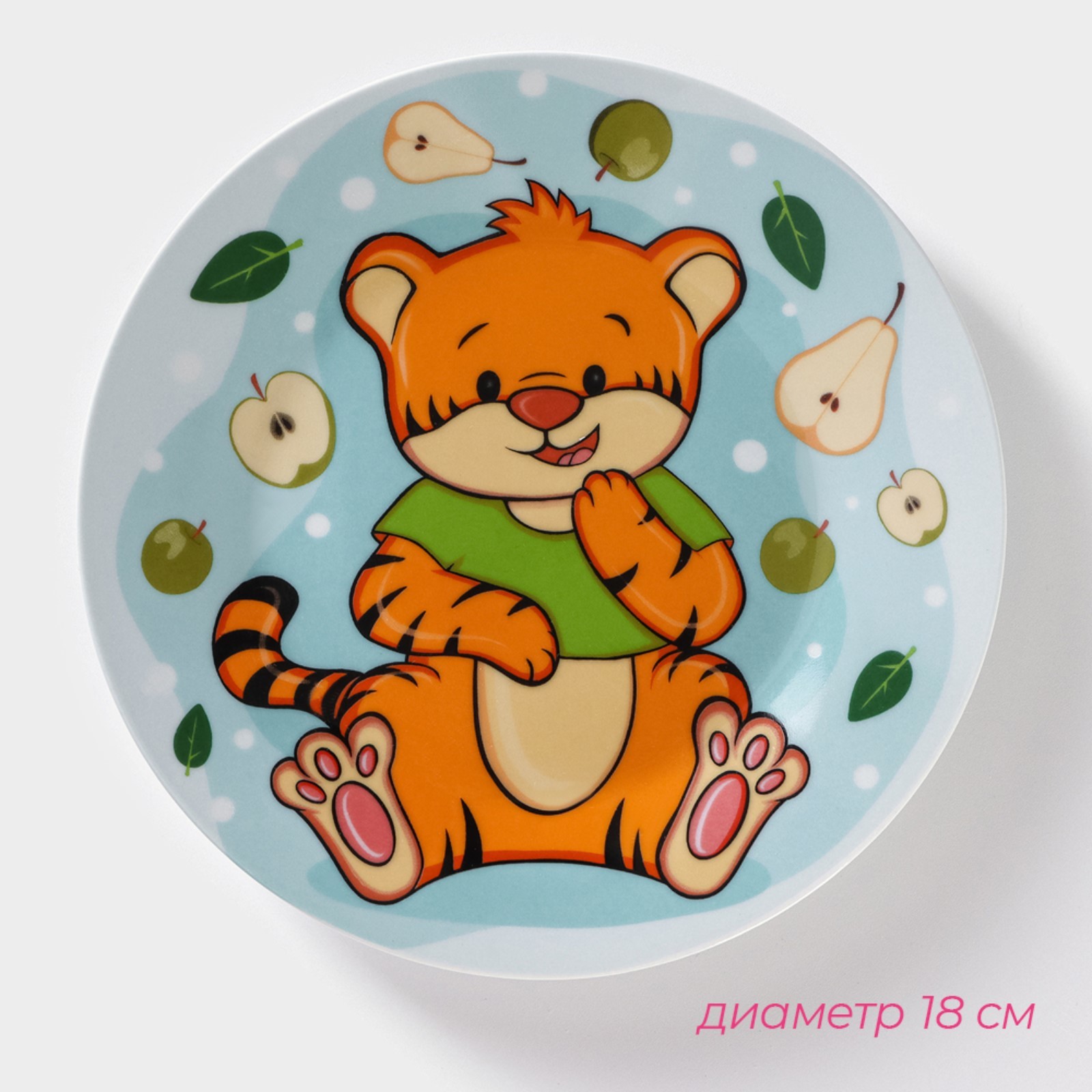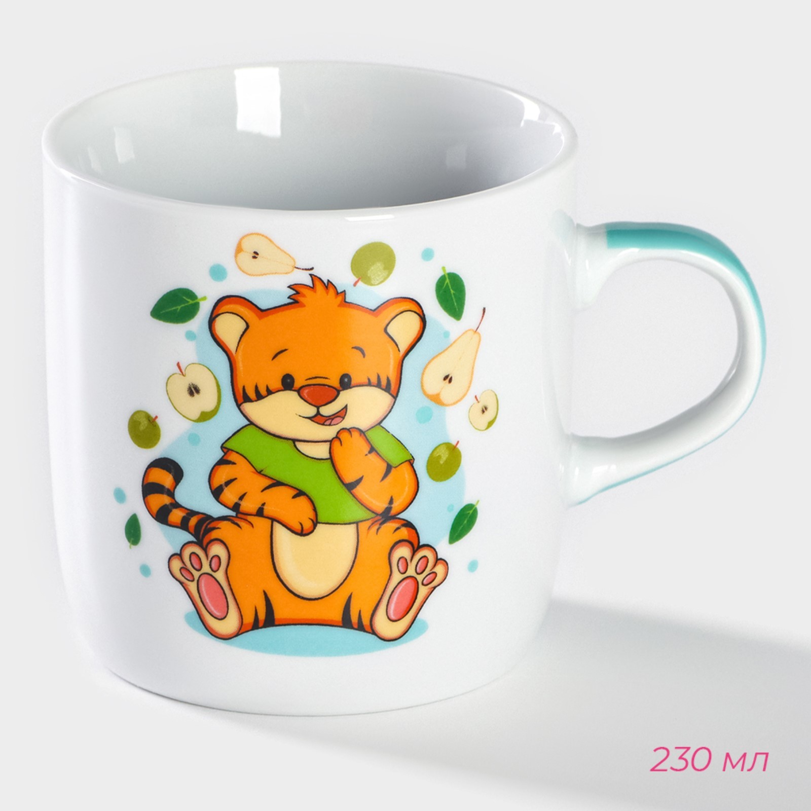 Набор детской посуды из керамики доляна «тигрёнок с грушами», 3 предмета: кружка 230 мл, миска 400 мл, тарелка D=18 см