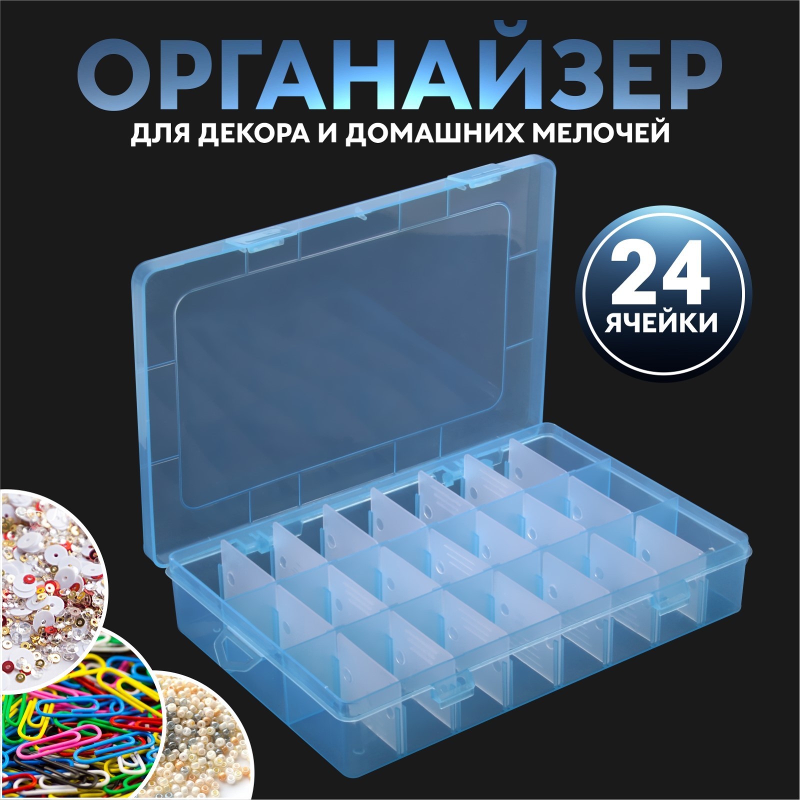 Органайзер для декора, передвижные ячейки, 24 ячейки, 19,7 X 13,3 X 3,5 см, цвет микс