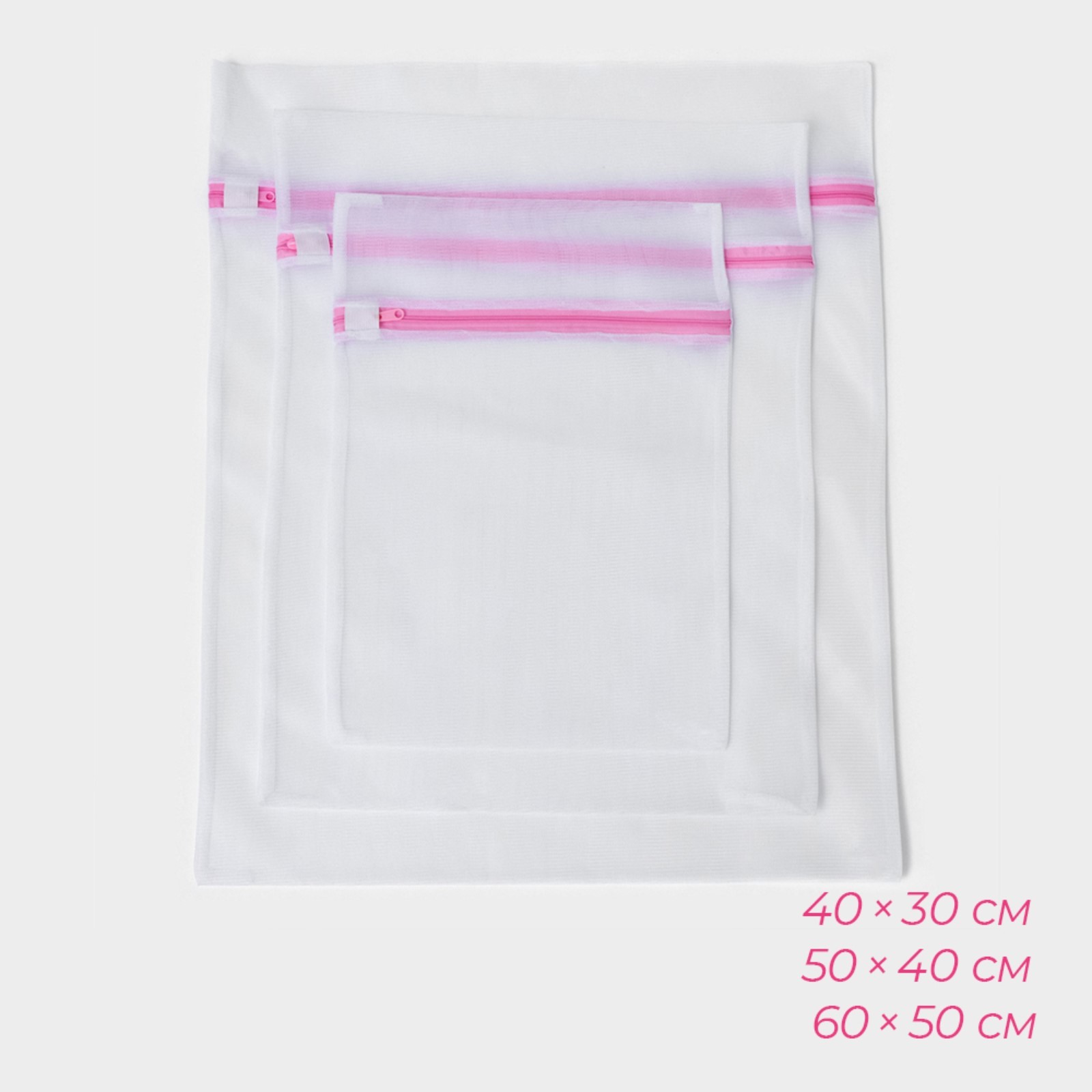 Мешки для стирки, 4 шт: L= 60x50, M=50x40, S=40x30, цилиндр=15x16, цвет белый