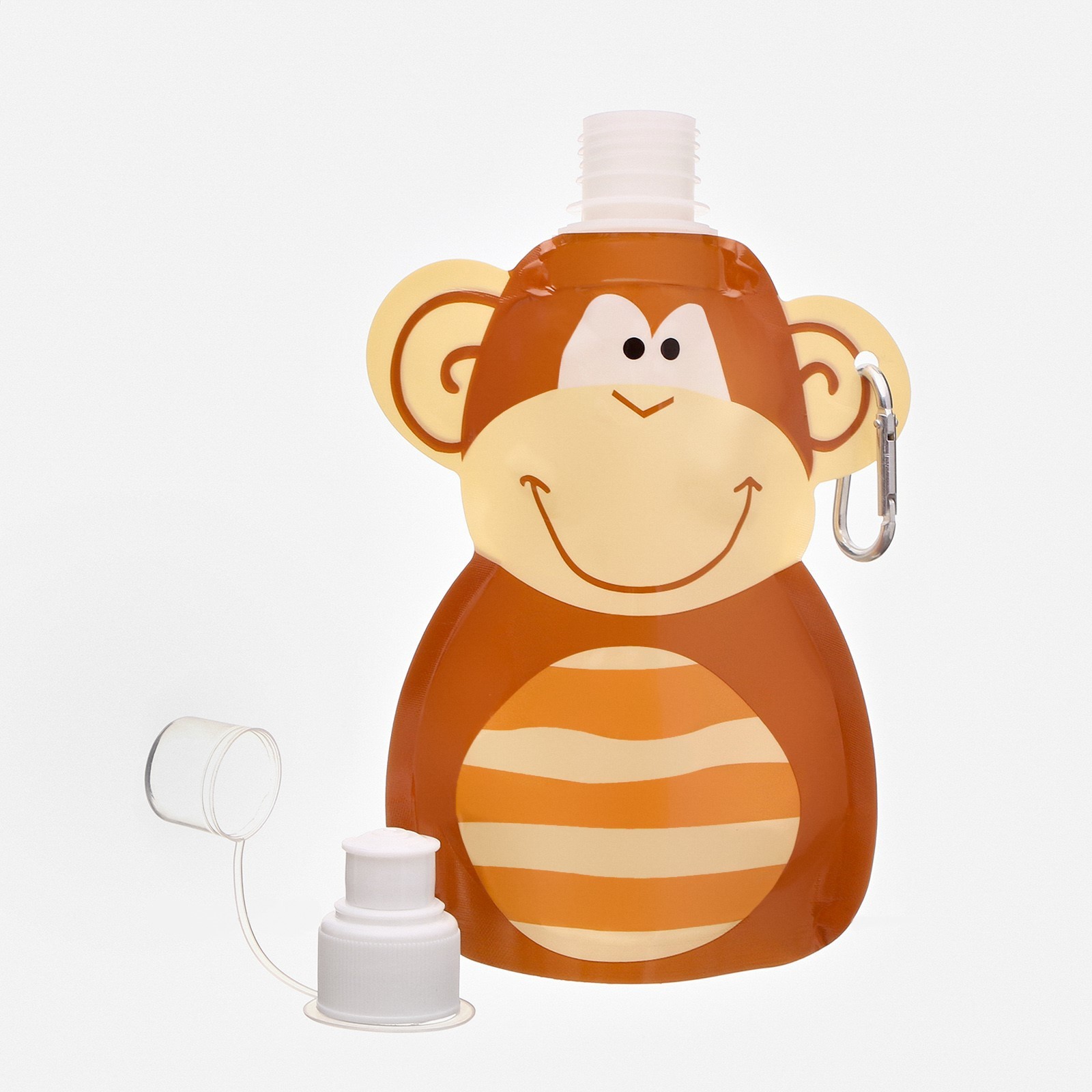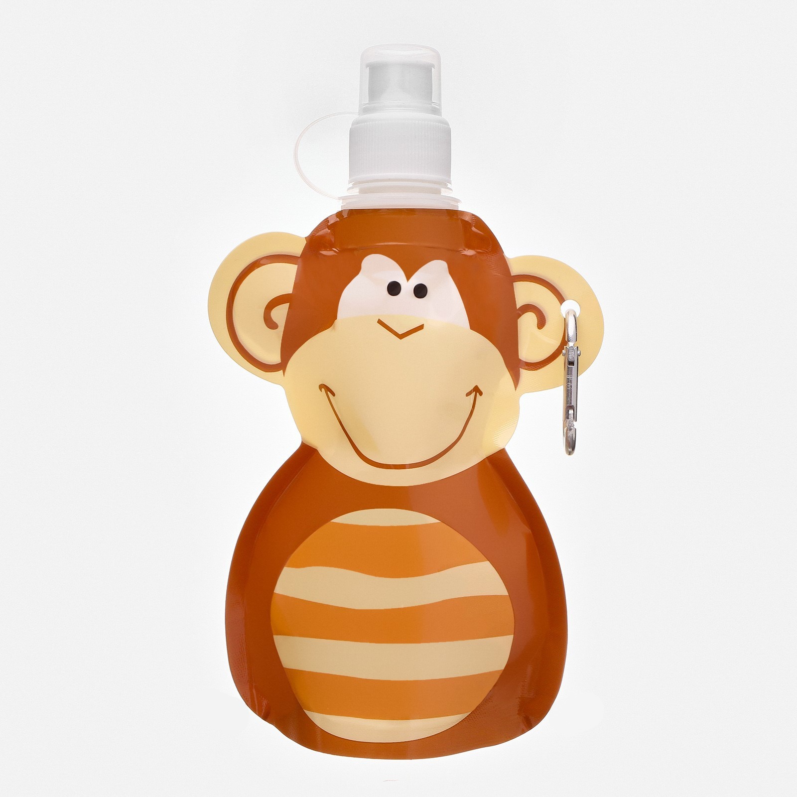 Фляжка для воды, 280 мл, "обезьянка", на карабине, 22 х 12 см. Эту бутылочку-фляжку для воды удобно брать с собой на прогулку, пикник или в школу. В бутылке можно носить воду, морсы, соки и другие прохладительные напитки. Подойдет как для мальчиков, так и для девочек. Особенности: Гипоаллергенный и безопасный материалУдобная крышкаСкладная конструкцияКарабин для пристегивания к сумочке/рюкзаку Цвет: Коричневый Объём, мл: 280 Материал: Пластик Вид: Фляжка Особенности: Складная Особенности: На подвесе  развернуть описание ▼