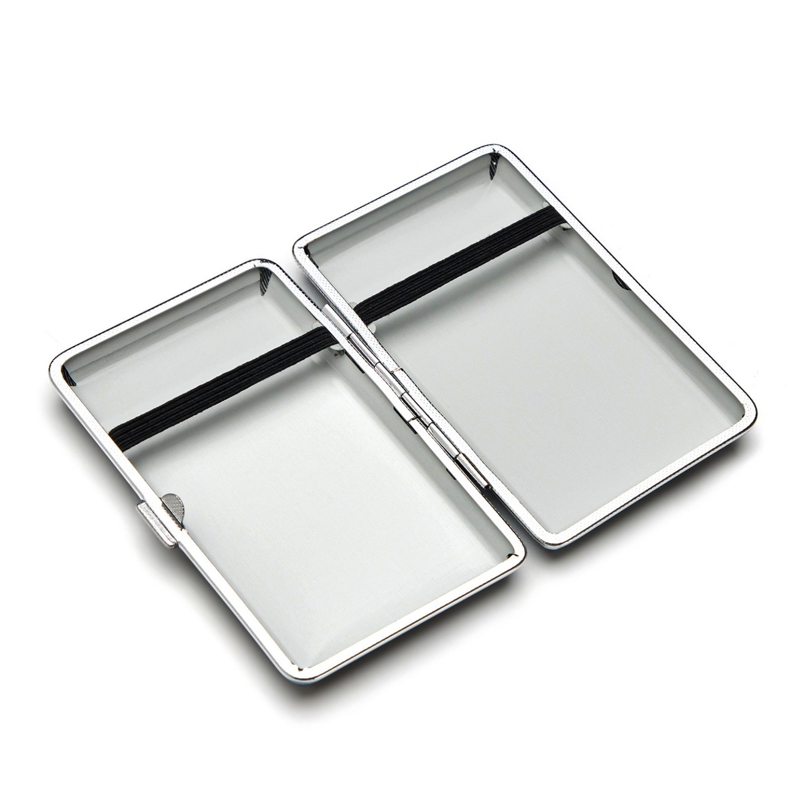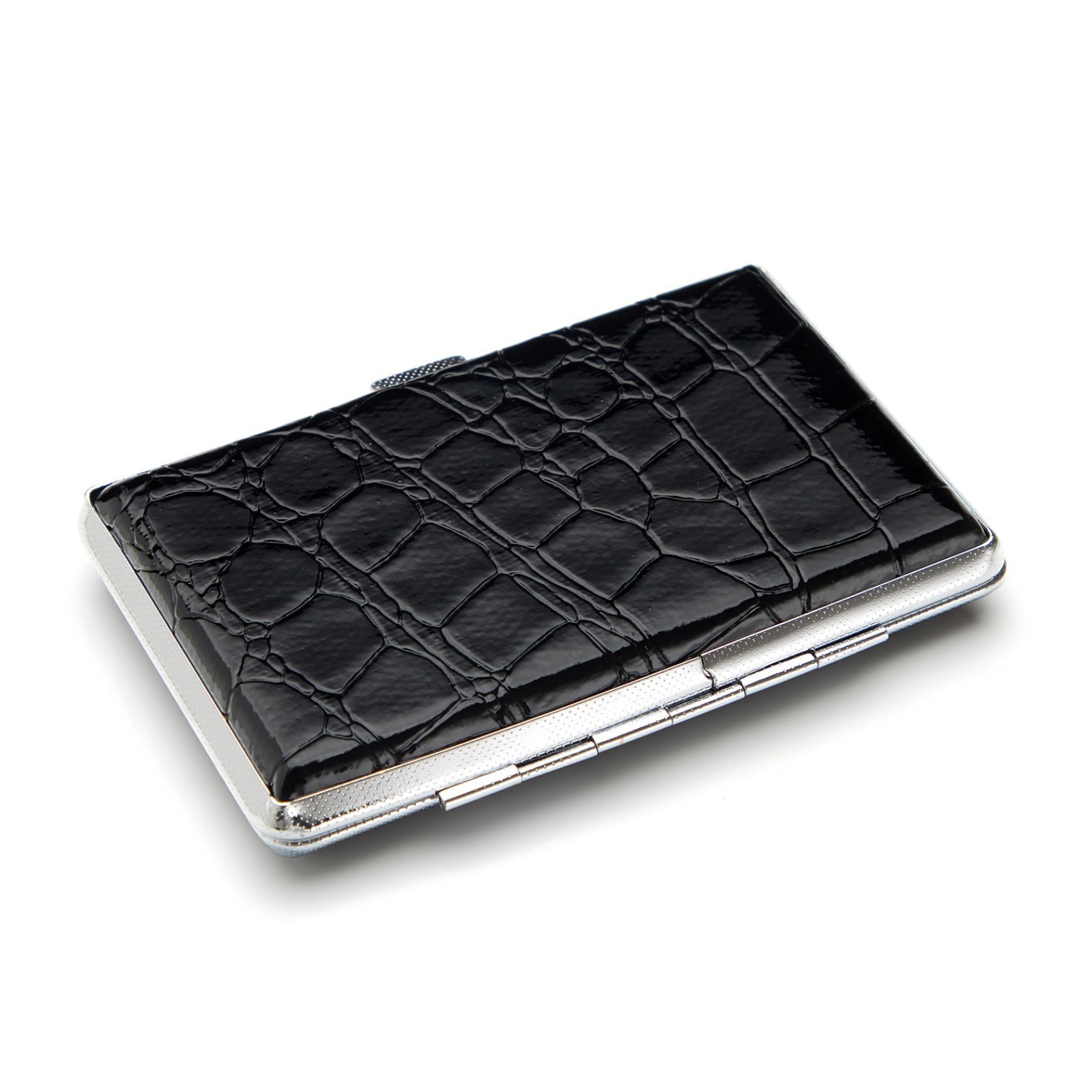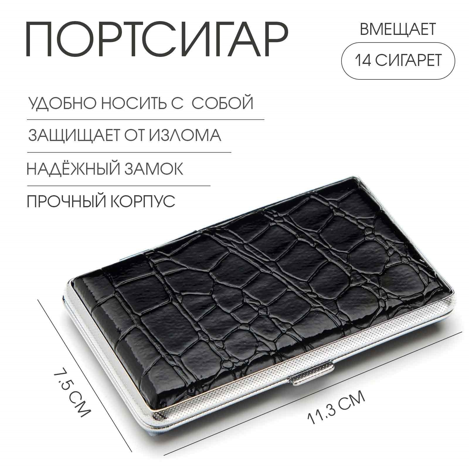 Портсигар, на 14 сигарет, 7.5 11.3 см. Портсигар — это удобный футляр для хранения сигарет, в нём они не помнутся и будут защищены от влаги. А ещё это аксессуар, подчёркивающий ваш стиль, имидж и статус. Удачно подобранный портсигар произведёт впечатление на любого человека. Цвет:Чёрный|Цвет:Серебристый|Вместимость, шт.:14|Материал:Экокожа|Материал:Металл|Крепление:Резинка|Страна:Китай  развернуть описание ▼