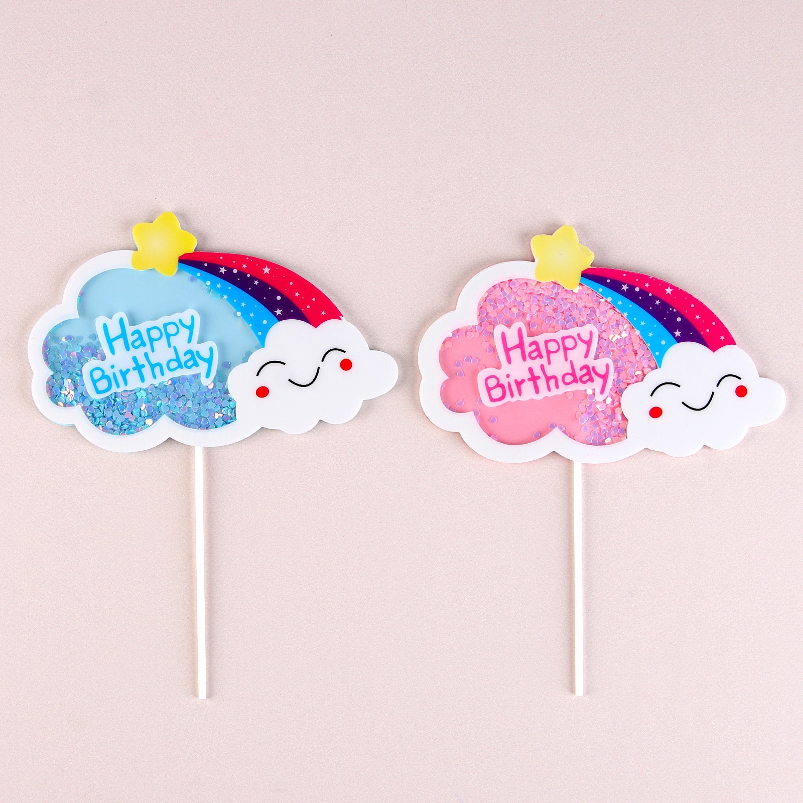 Набор топперов «с днём рождения. облака», 2 шт., цвета микс