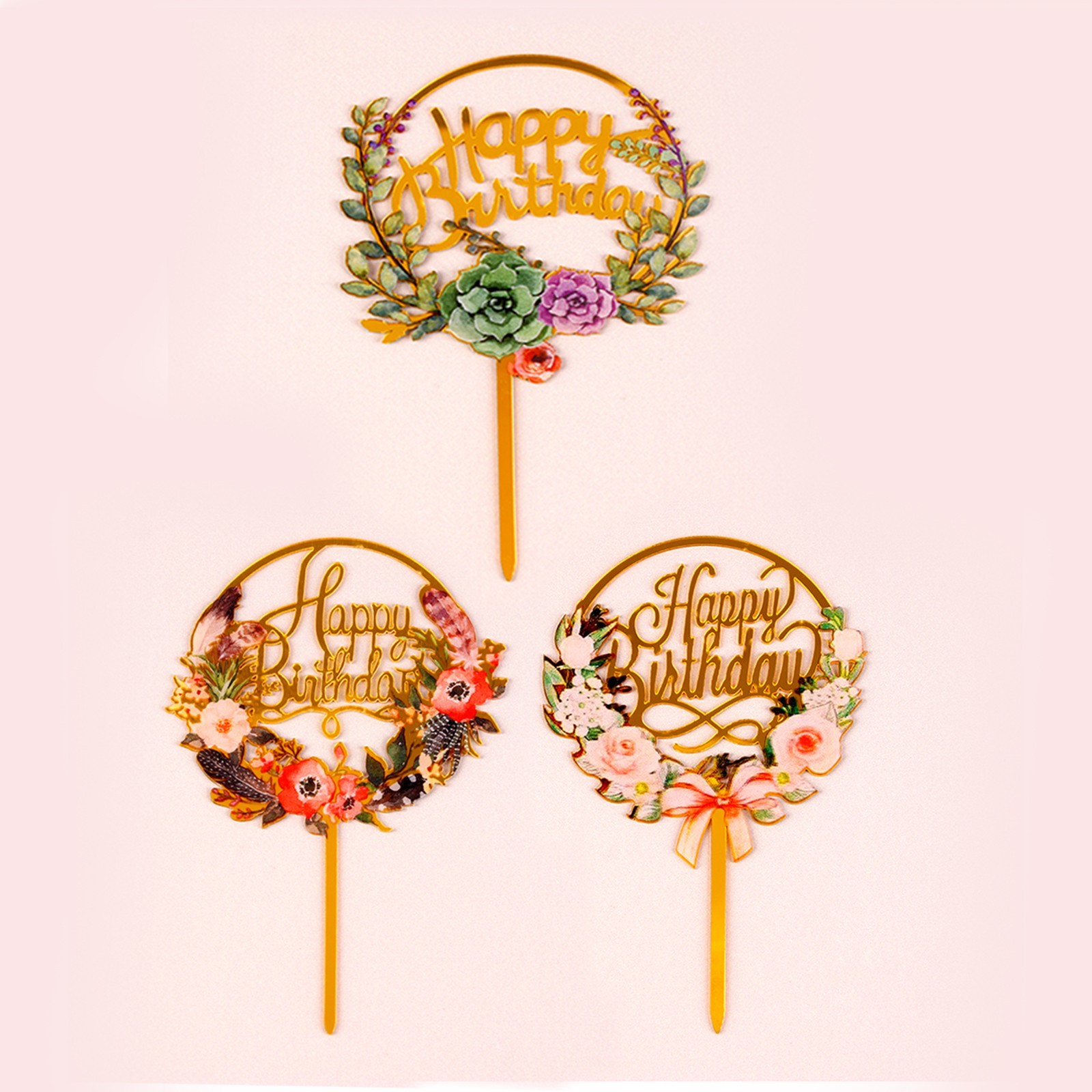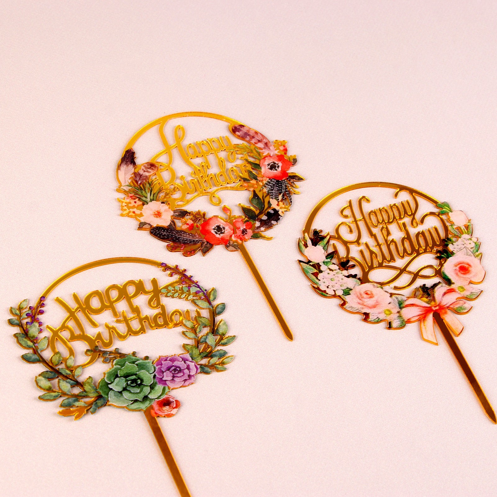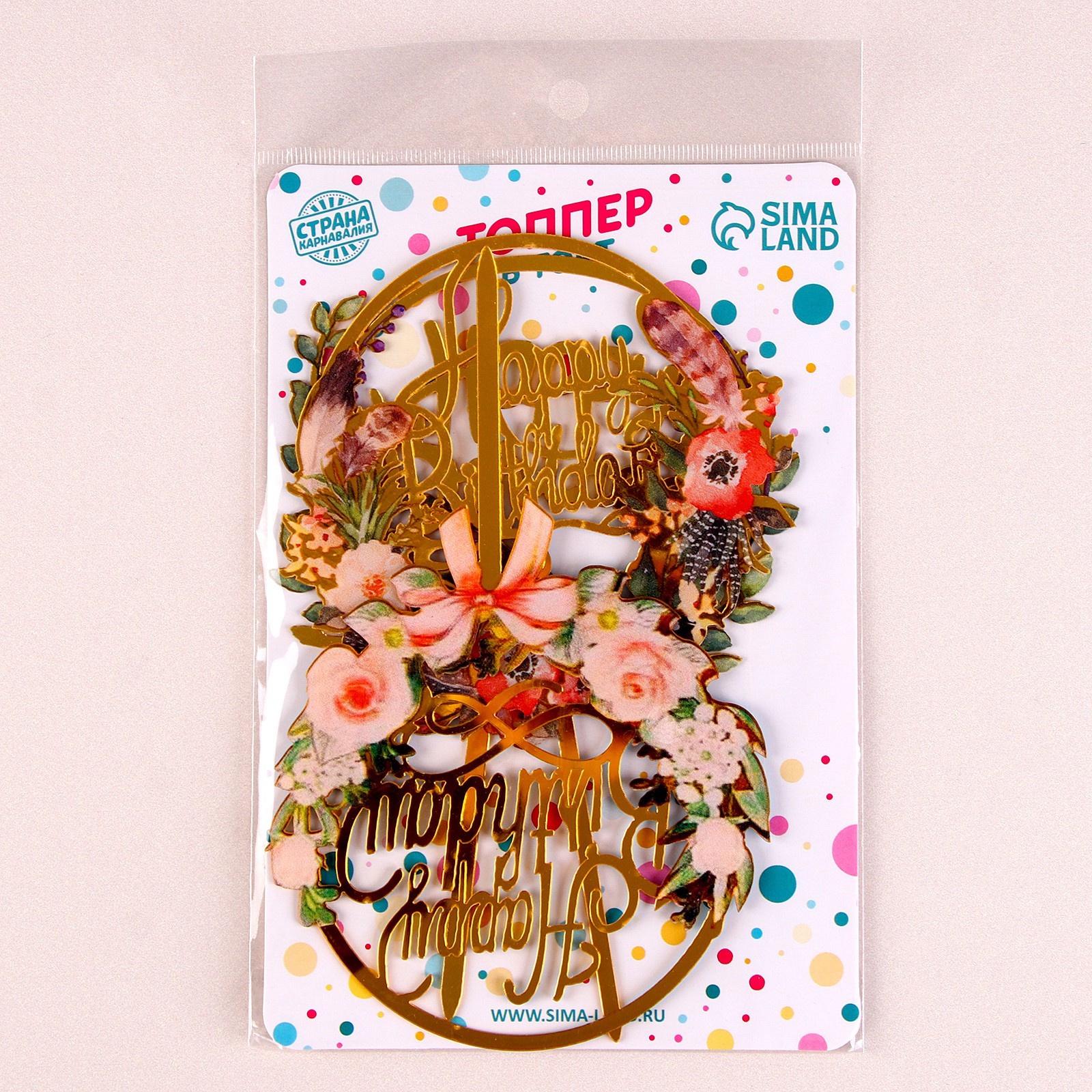 Набор топперов «с днём рождения. цветы», 3 шт.. Цвет: Разноцветный Высота держателя, см: 6.6 Высота держателя, см: 6.8 Материал: Пластик Вид: Топпер  развернуть описание ▼