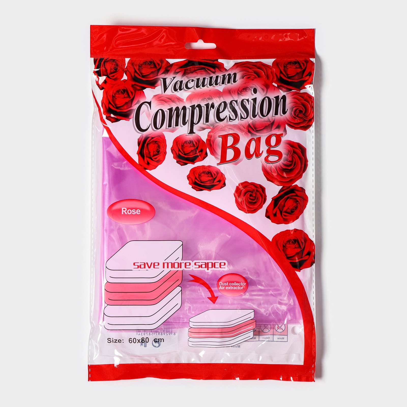 Вакуумный пакет для хранения вещей «роза», 60x80 см, ароматизированный, прозрачный