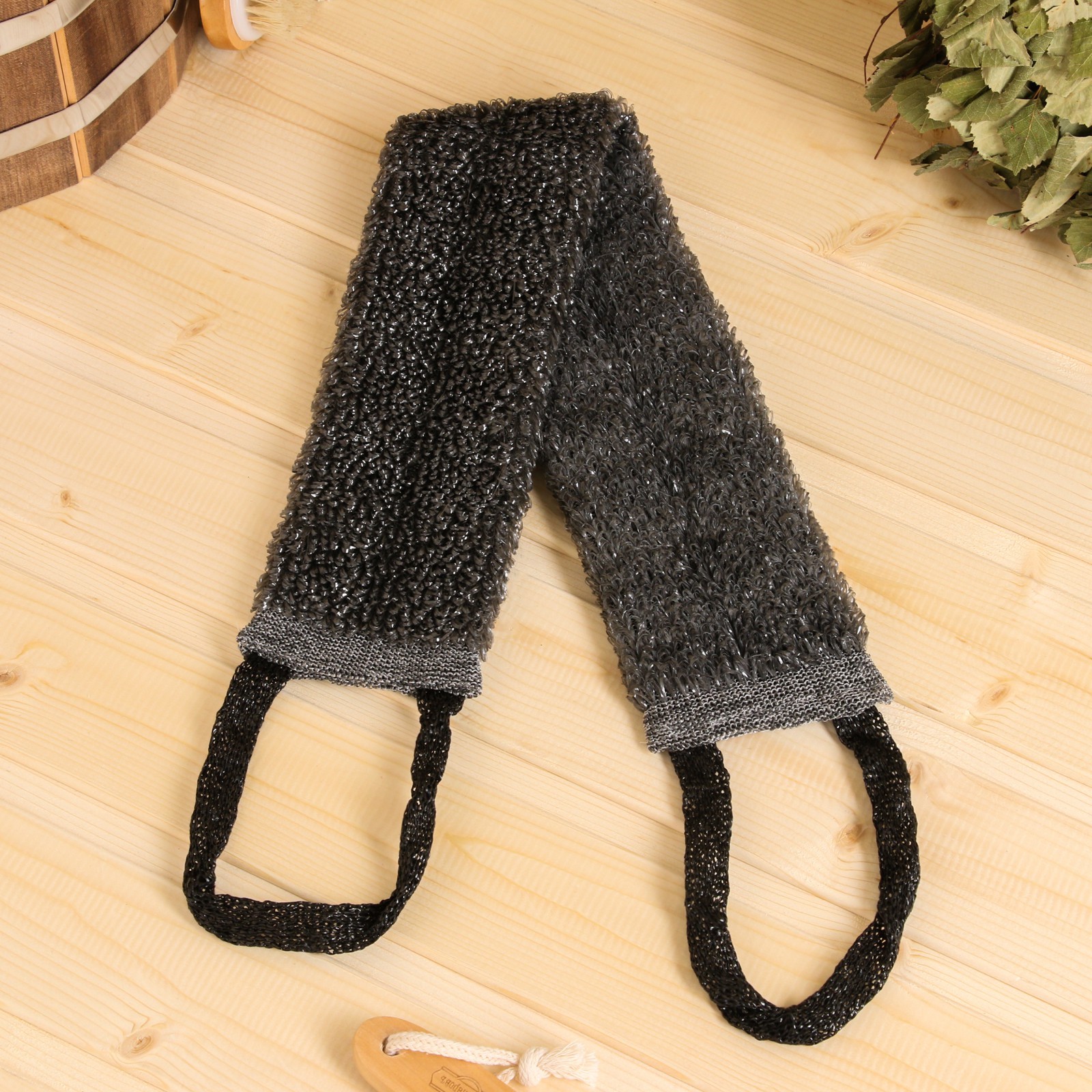 Мочалка банная мужская с ручками "пояс" черная (60 см без ручек)