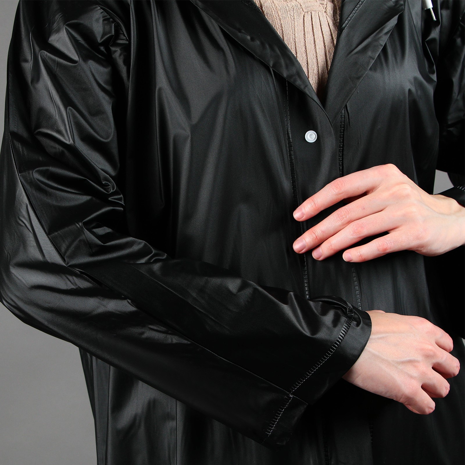 Дождевик взрослый плащ «уточка», размер 42-48, цвет чёрный. Непромокаемый дождевик с капюшоном защитит вас от дождя на прогулке, при походе, на рыбалке - идеален для любых активностей. В сложенном состоянии имеет компактные размеры, что позволяет всегда иметь его под рукой. Размер - 42-48;Длина от плеча - 110 см, ширина - 60 см;Глубина капюшона - 24 см;Длина рукава 60 см. Упаковка: пакет. Цвет: Чёрный Для кого: Для женщины : 12 Вид застёжки: Кнопка Возраст: Взрослый Материал: Пластик Рекомендации по уходу: Ручная стирка Двусторонний: Нет Вид: Плащ  развернуть описание ▼
