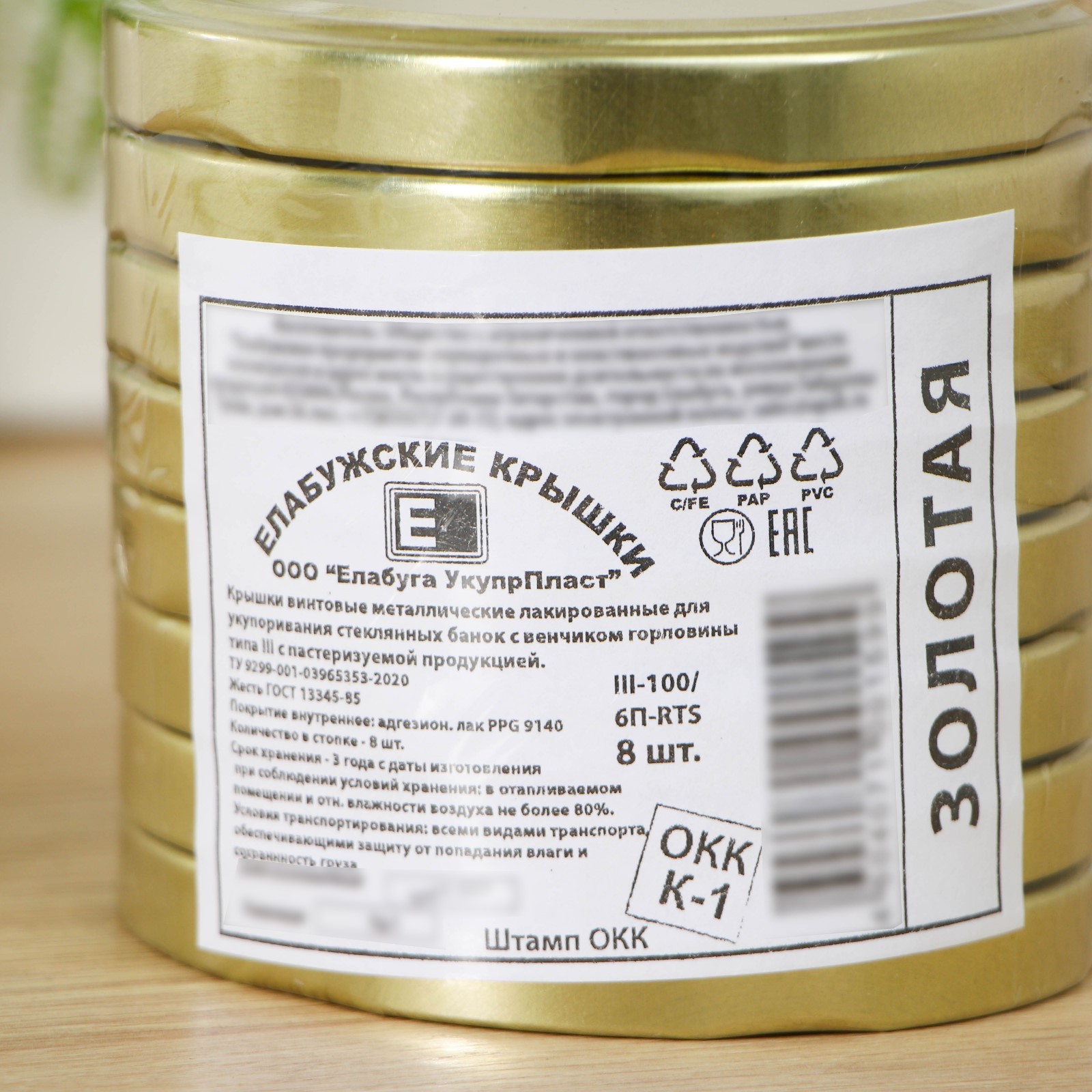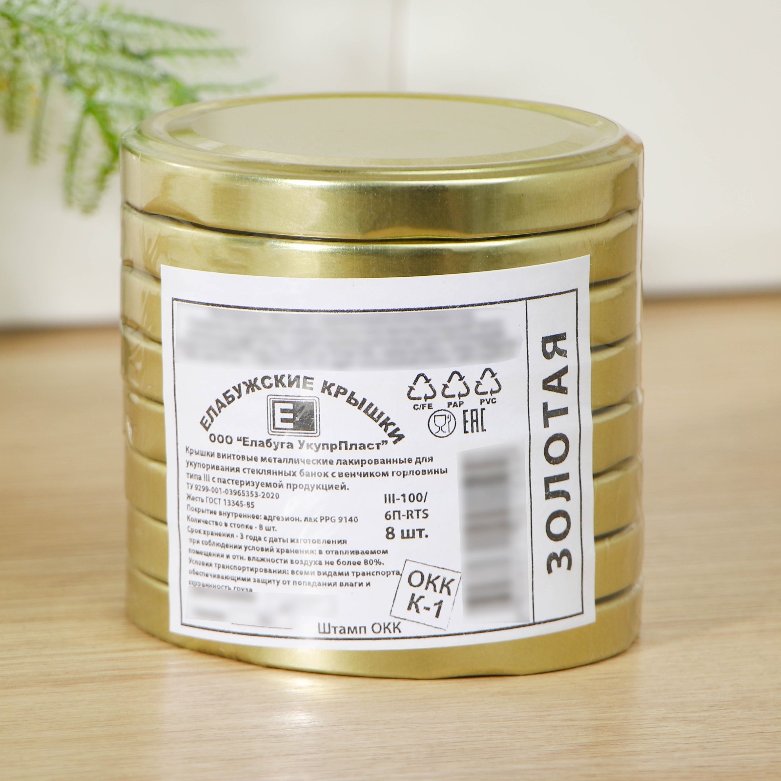 Крышка «елабуга», то-100 мм, металл, лак, цвет золотой. Крышка Твист-офф - изделие, которое понравится всем, кто ищет качественное решение для хранения продуктов. Она выполнена из высококачественного металла, благодаря которому обеспечит сохранность аромата и вкуса вашего урожая на длительное время. Крышка используется для закрытия различных ёмкостей - от банок с джемом до стеклянных бутылок с соком. Это удобное и практичное решение позволит сохранить продукты свежими и защитит их от нежелательных воздействий извне. Цвет: Золотистый parts count: 0 В наборе, шт.: 8 Диаметр крышки, мм: 100 tnved: 8309909000 Материал: Металл Тип крышки: Твист-офф Температурное ограничение: Нет  развернуть описание ▼