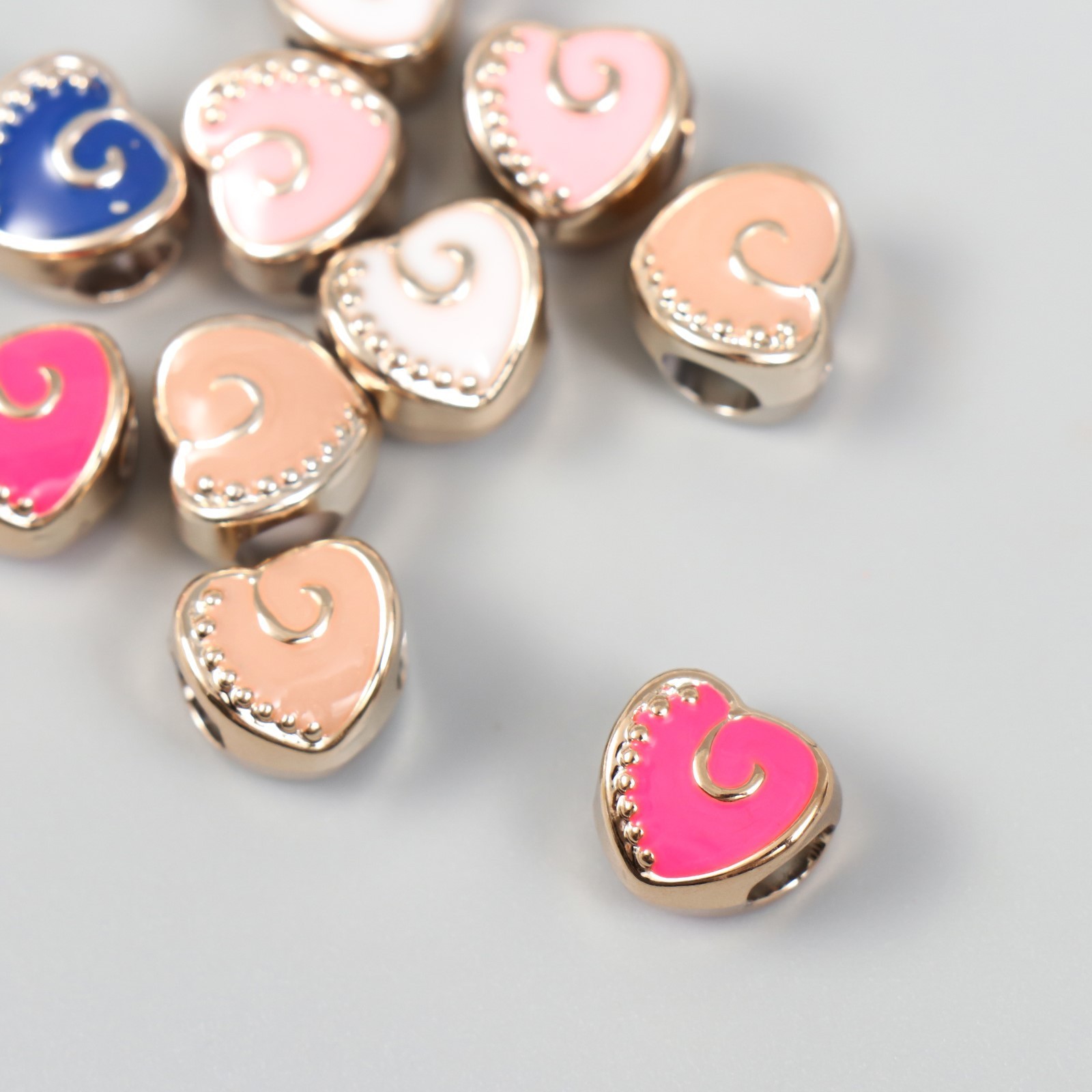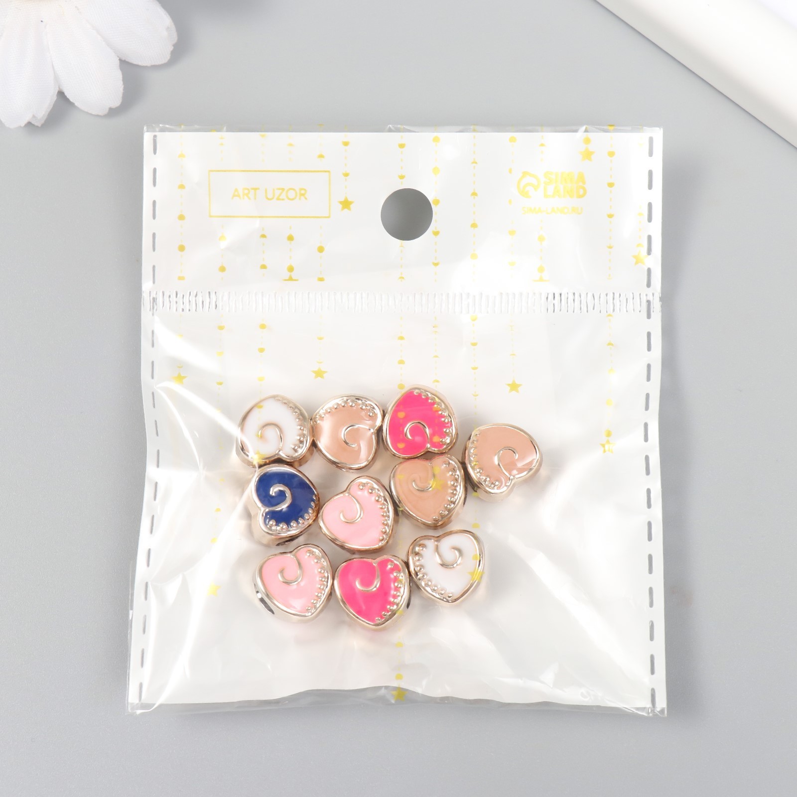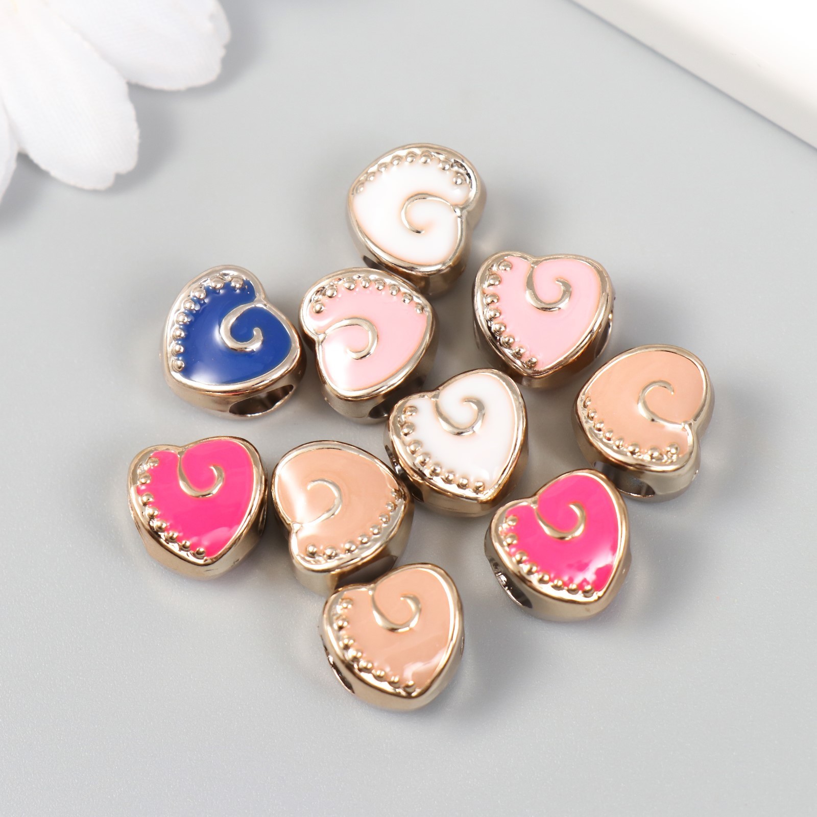Набор бусин для рукоделия и плетения «арт узор. сердечко с завитком», 10 шт., пластик, 1.1 0.8 1 см, микс