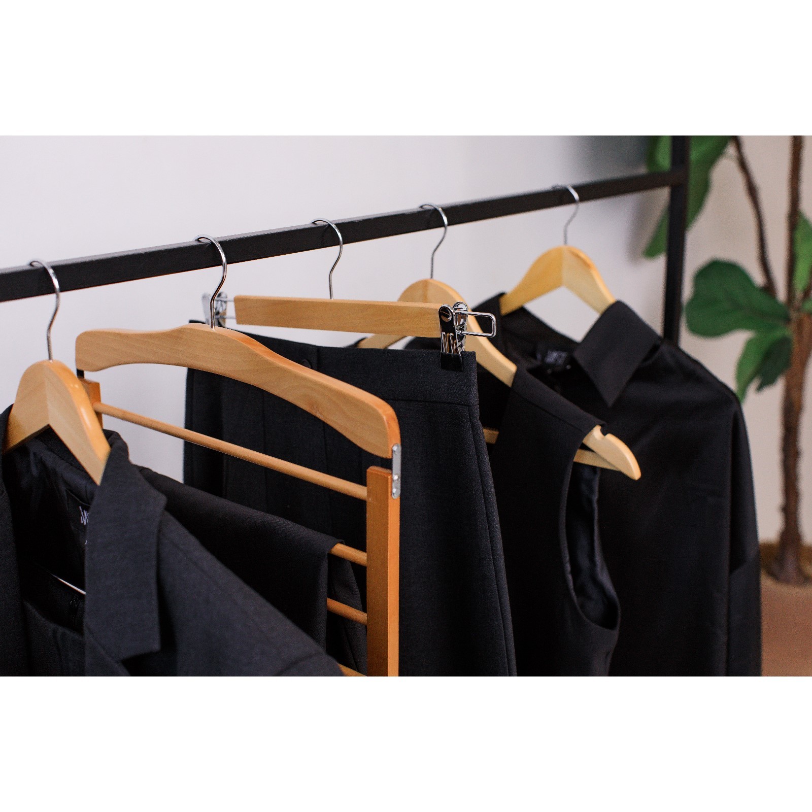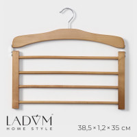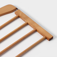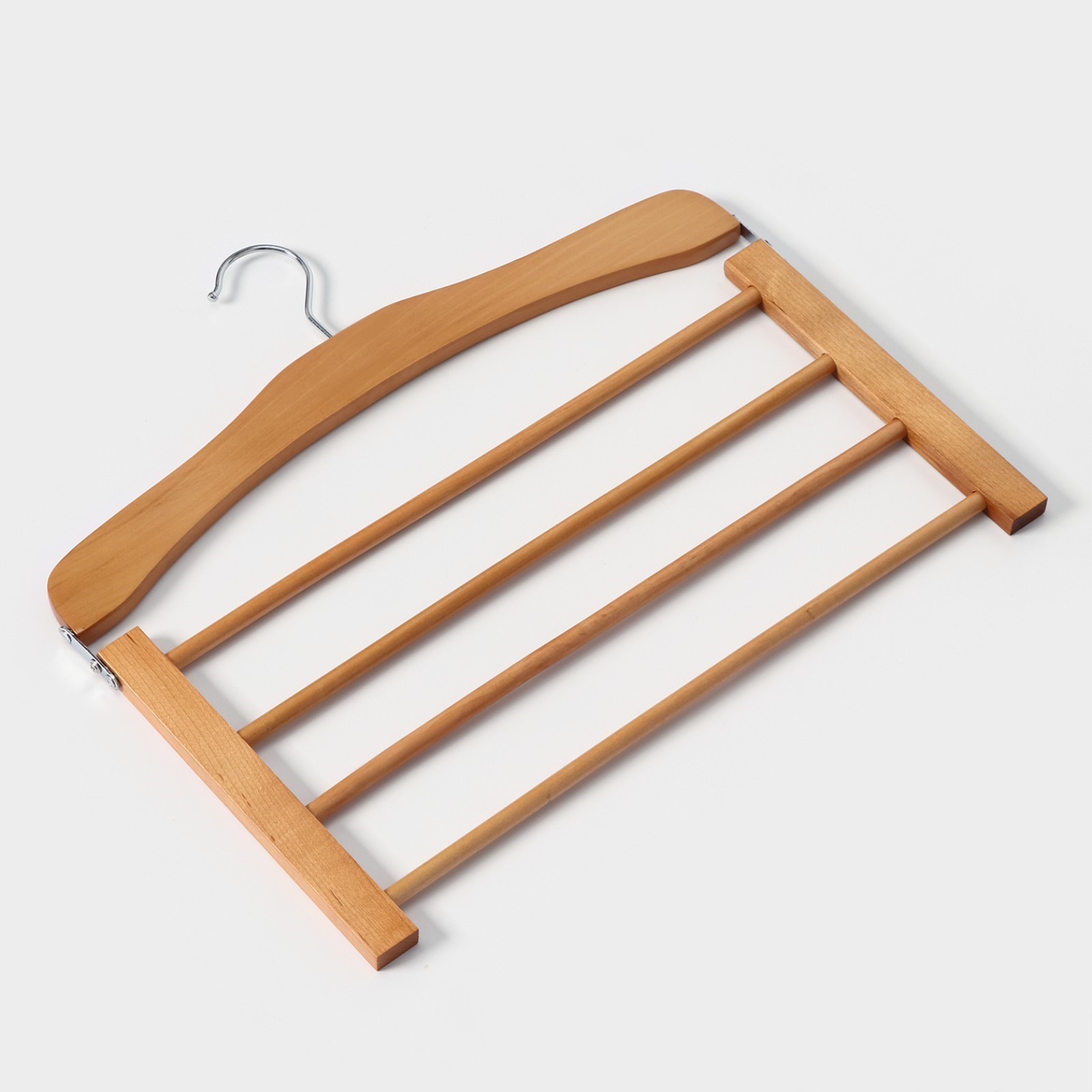 Array. На неудачно сложенной одежде могут появиться заломы и складки, из-за чего вещи приходится гладить повторно. Это маленькое неудобство можно решить с помощью специального предмета. Вешалка – это компактное приспособление, которое позволит вам разместить в гардеробе классические штаны из лёгких или плотных материалов, блузки, рубашки, кофты и другие вещи. Изделие практичной формы занимает мало места, что позволяет экономить пространство в шкафу. Преимущества: небольшой размер;долговечность;удобство эксплуатации;безопасное покрытие. Изготовлено из дерева лотос. Цвет: Бежевый Вид вешалки: Для рубашек, блузок, трикотажа Вид вешалки: Для юбок и брюк Вид вешалки: Для шарфов Возраст: Любой Материал: Дерево Материал: Металл Размер: 34.3 - 38.5 Многоуровневая: Да Покрытие: Без покрытия  развернуть описание ▼
