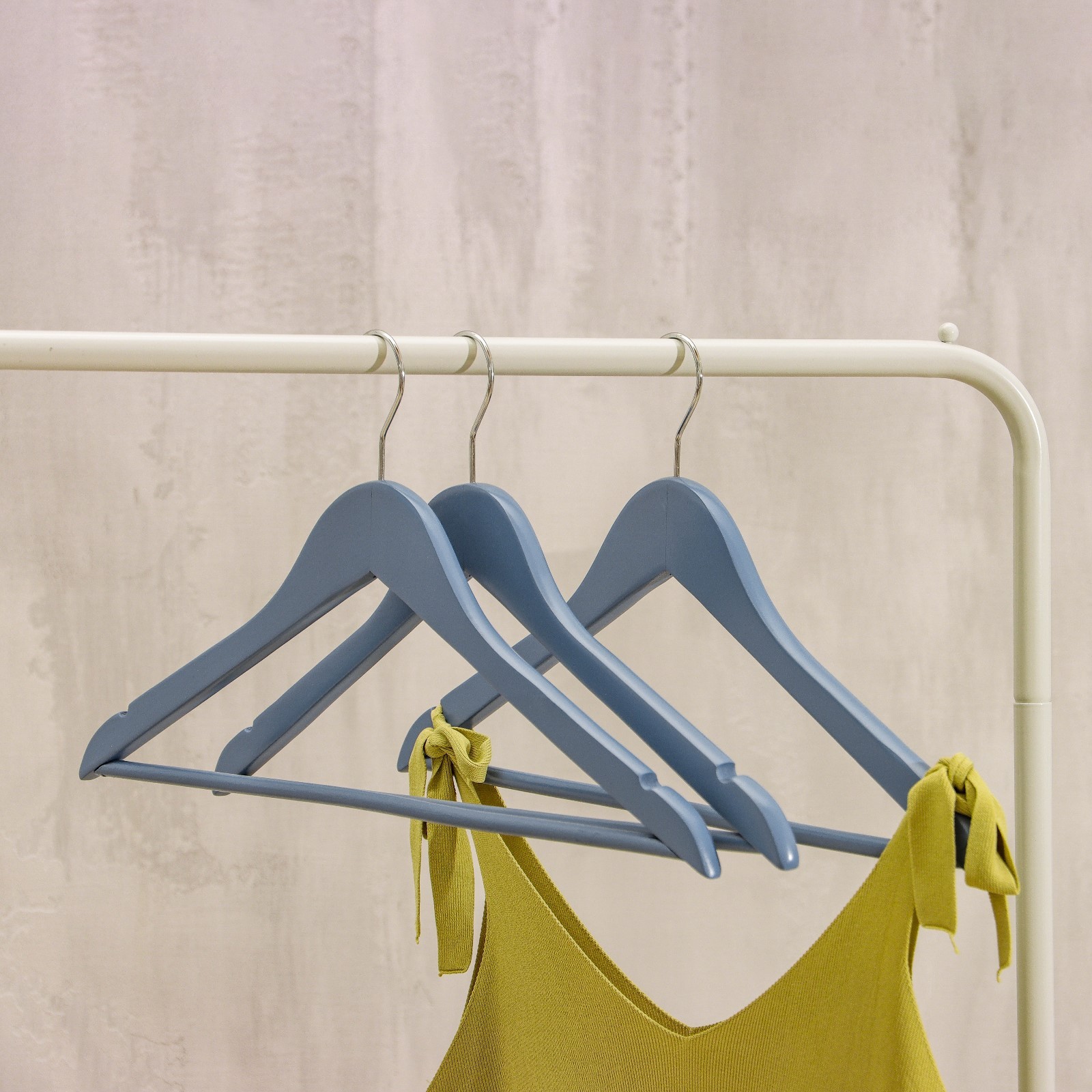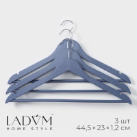 Array. На неудачно сложенной одежде могут появиться заломы и складки, из-за чего вещи приходится гладить повторно. Это маленькое неудобство можно решить с помощью специального предмета - вешалка. Вешалка – это компактное приспособление, которое позволит вам разместить в гардеробе классические штаны из лёгких или плотных материалов, блузки, рубашки, кофты и другие вещи. Изделие практичной формы занимает мало места, что позволяет экономить пространство в шкафу. Эргономичная форма поможет надёжно зафиксировать одежду и предотвратить её падение. Преимущества: Небольшой размер;Долговечность;Удобство эксплуатации;Безопасное покрытие. Цвет: Синий В наборе, шт.: 3 Вид вешалки: Для рубашек, блузок, трикотажа Вид вешалки: Для верхней одежды Возраст: Любой Материал: Металл Материал: Дерево Размер: 23 - 44.5 Многоуровневая: Нет Покрытие: Без покрытия  развернуть описание ▼