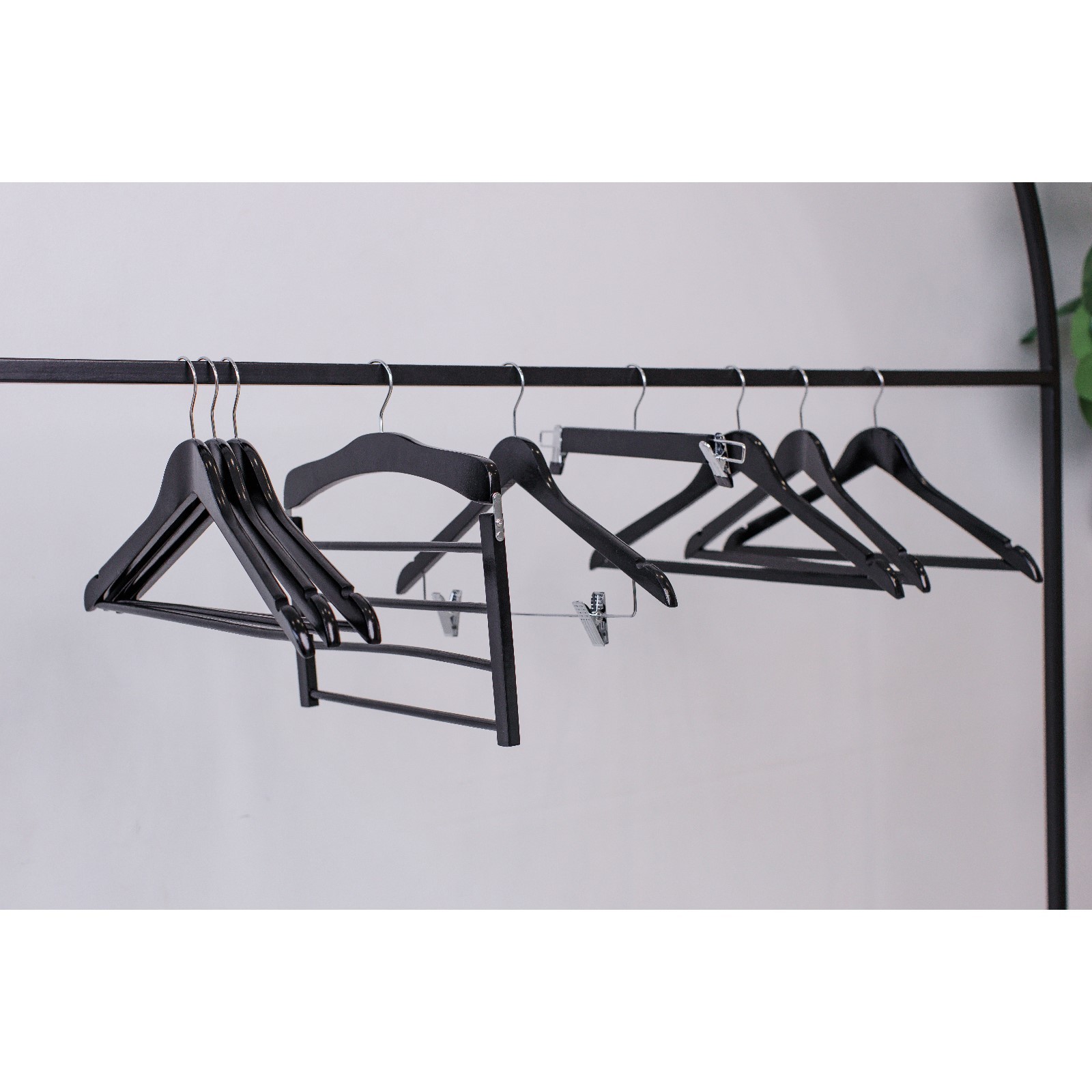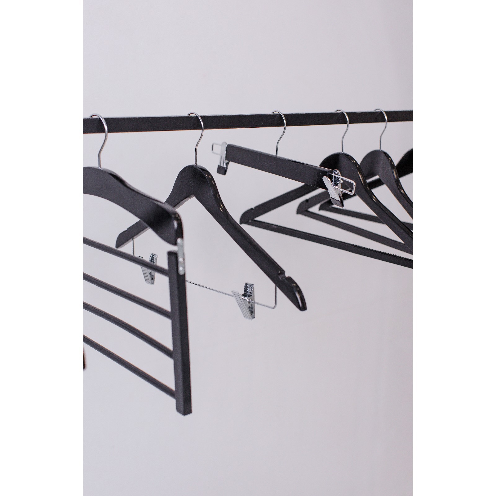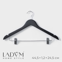 Array. На неудачно сложенной одежде могут появиться заломы и складки, из-за чего вещи приходится гладить повторно. Это маленькое неудобство можно решить с помощью специального предмета. Вешалка – это компактное приспособление, которое позволит вам разместить в гардеробе классические штаны из лёгких или плотных материалов, блузки, рубашки, кофты и другие вещи. Изделие практичной формы занимает мало места, что позволяет экономить пространство в шкафу. Преимущества: небольшой размер;долговечность;удобство эксплуатации;безопасное покрытие. Изготовлено из дерева лотос. Цвет: Чёрный Вид вешалки: Для юбок и брюк Вид вешалки: Для рубашек, блузок, трикотажа Возраст: Любой Материал: Металл Материал: Дерево Размер: 27.5 - 44.5 Многоуровневая: Нет Покрытие: Без покрытия  развернуть описание ▼