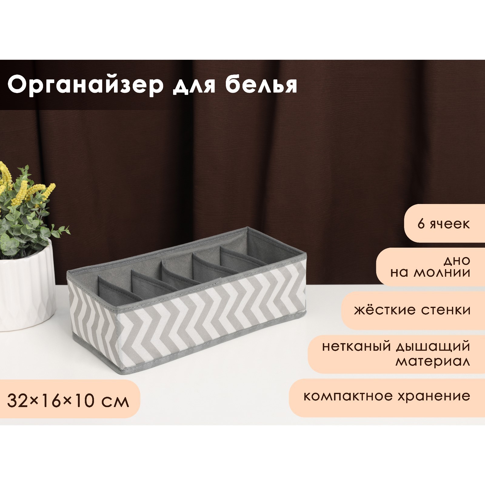 Органайзер для белья «симетро», 6 ячеек, 32x16x10 см, цвет серый