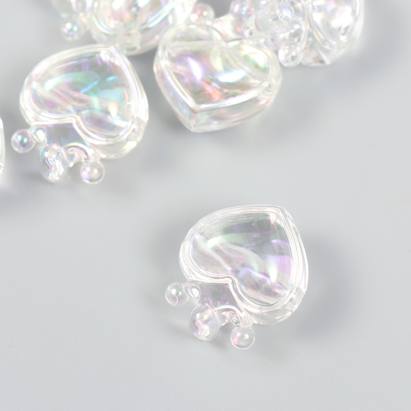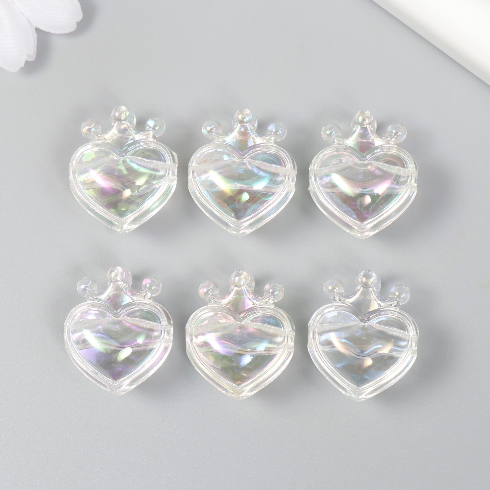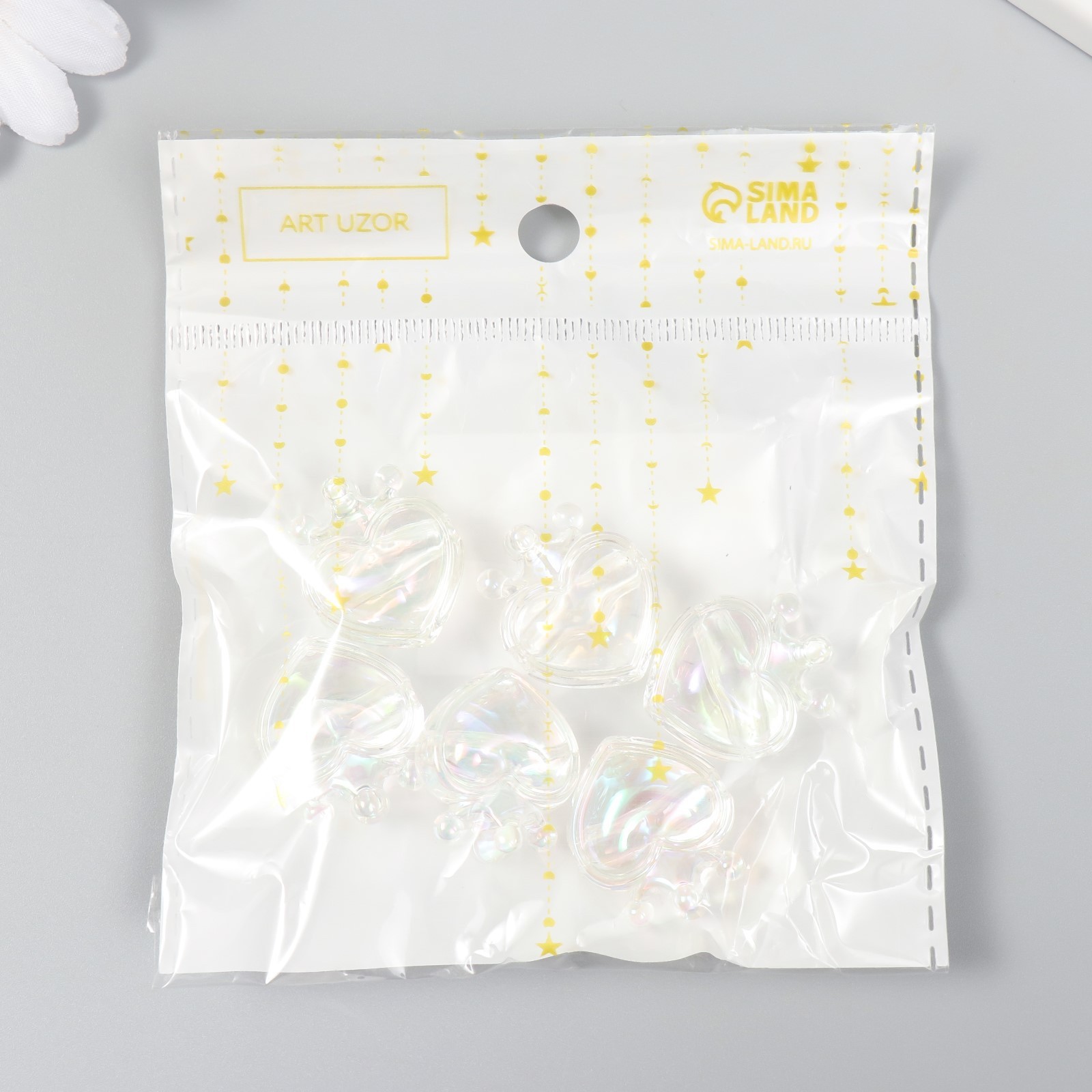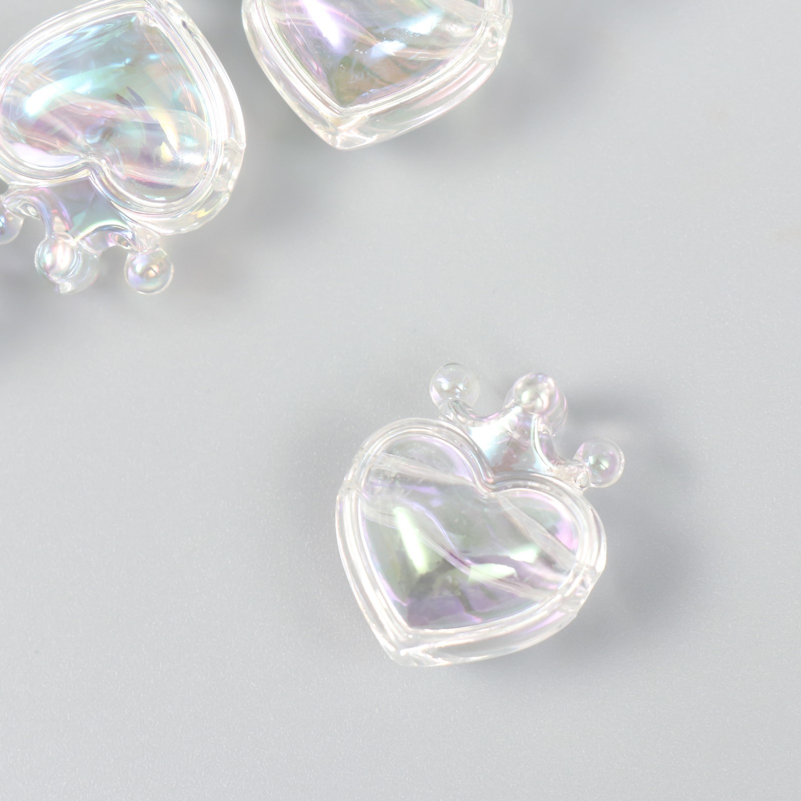 Бусина для рукоделия и плетения «арт узор. сердечко с короной прозрачный перламутр», пластик, 2.1 1.4 2.5 см