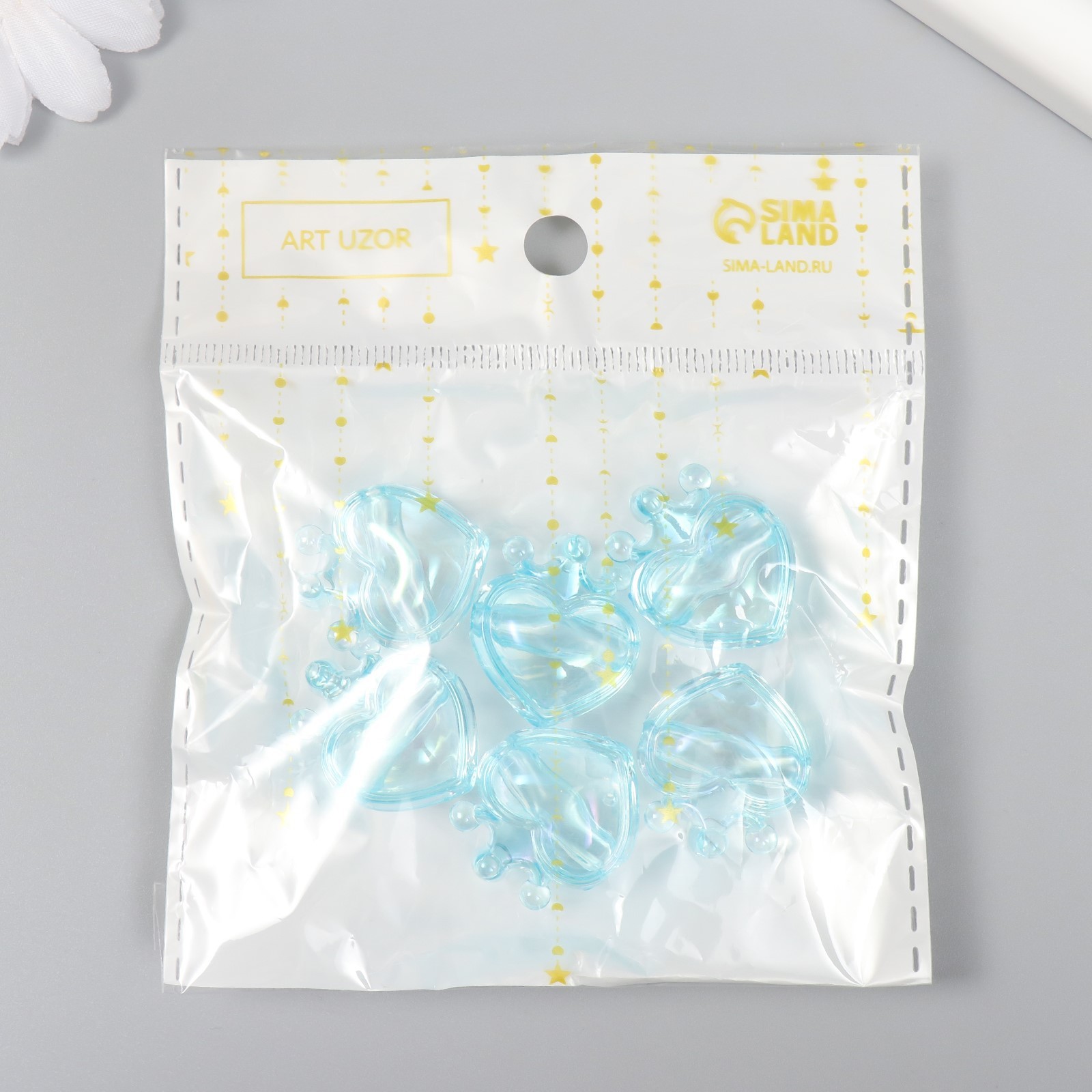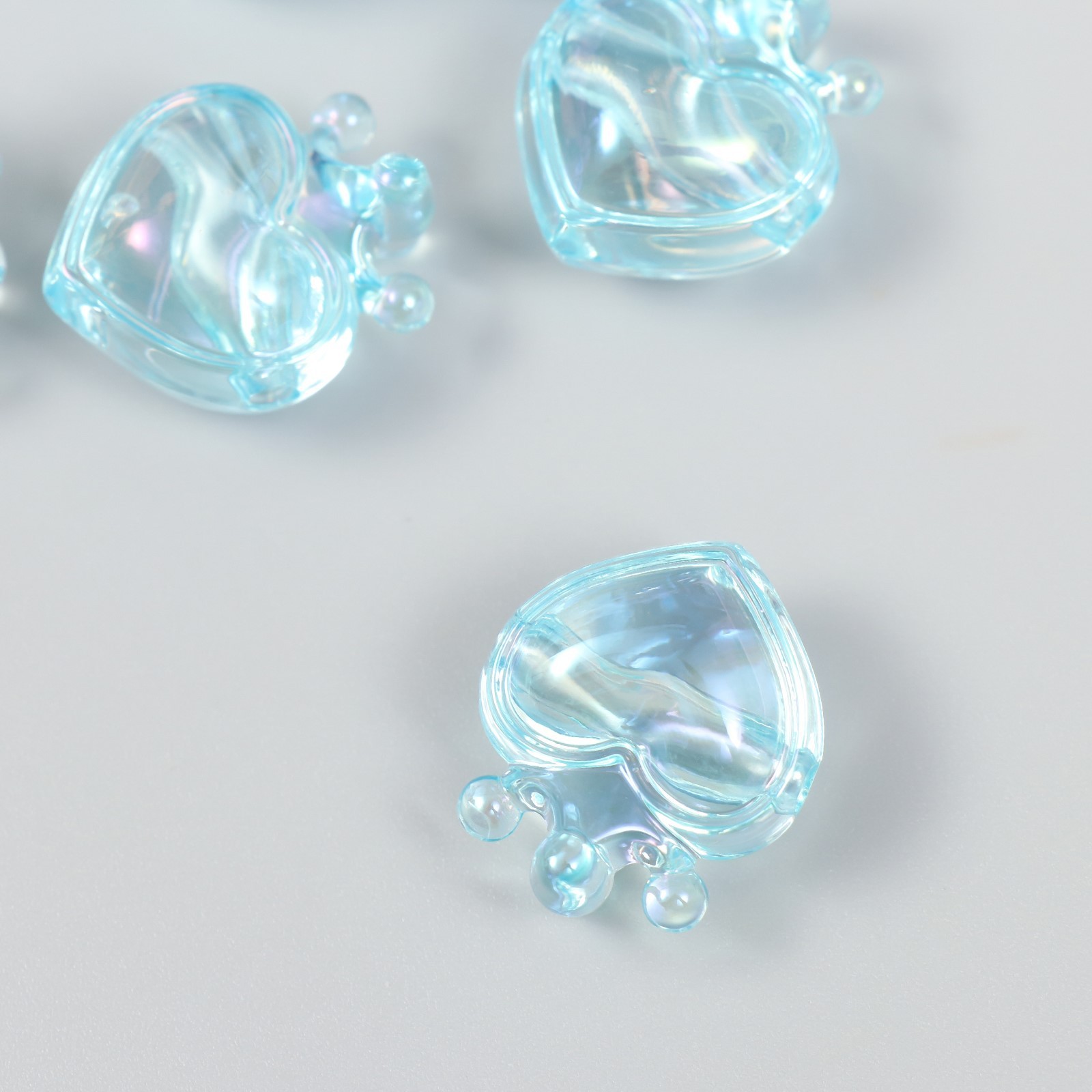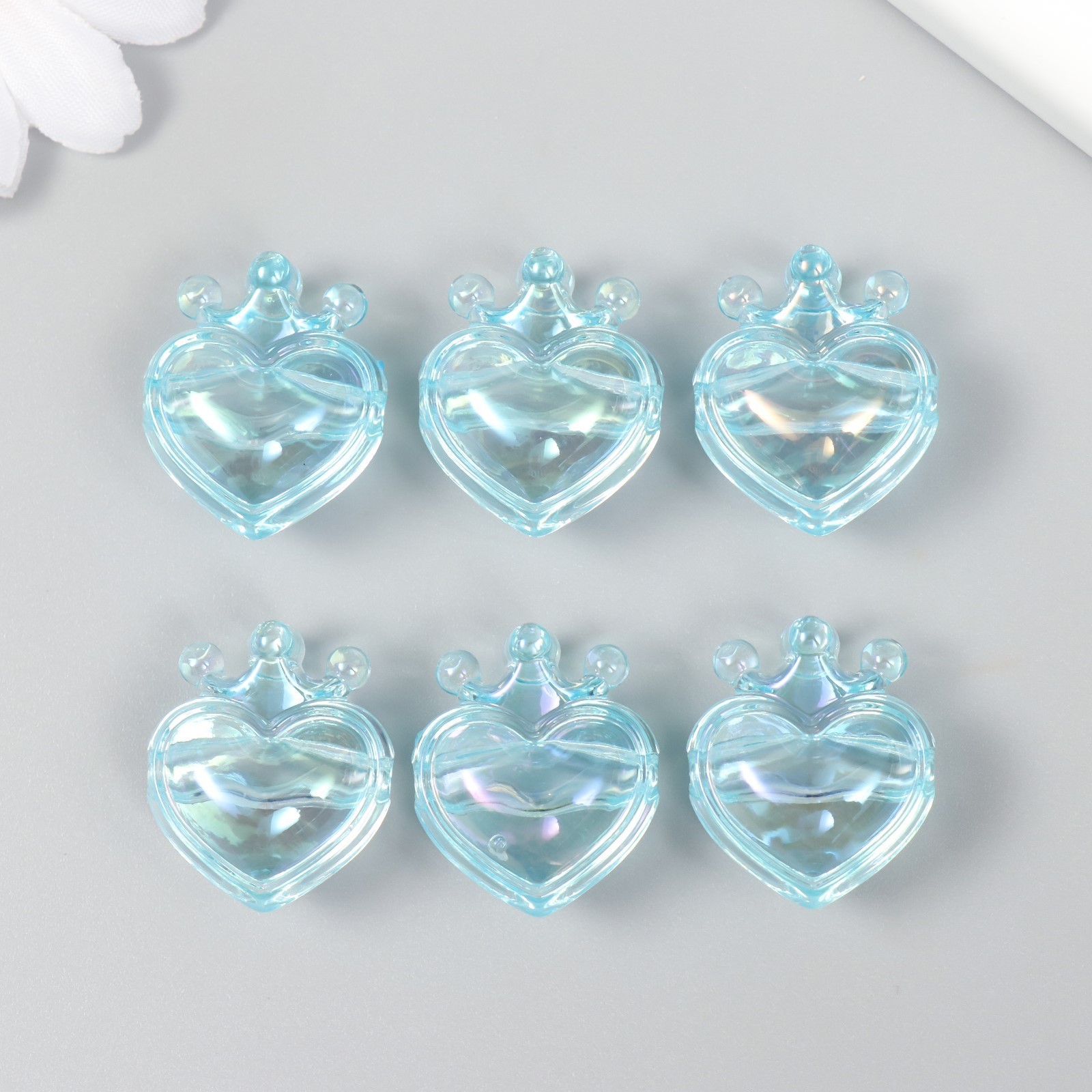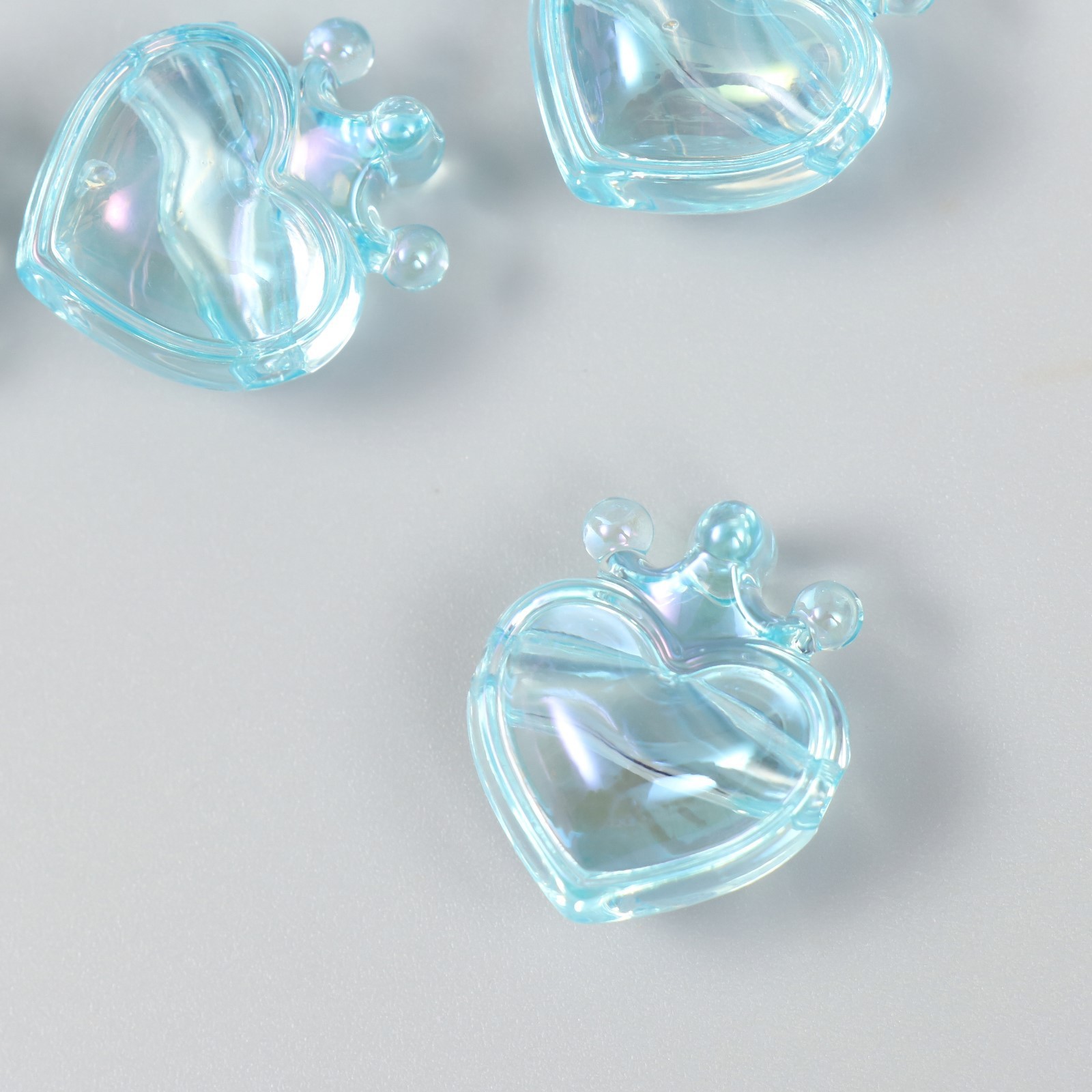 Бусина для рукоделия и плетения «арт узор. сердечко с короной голубое», пластик, 2.1 1.4 2.5 см