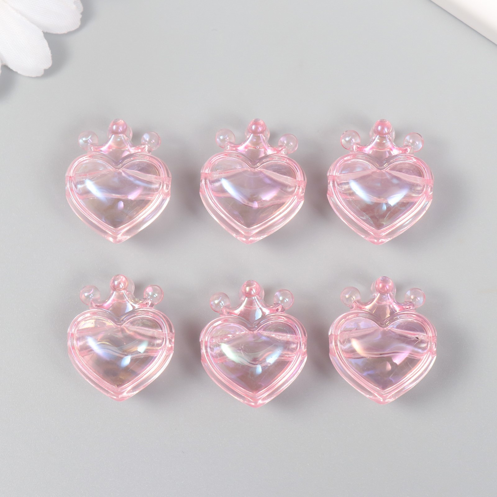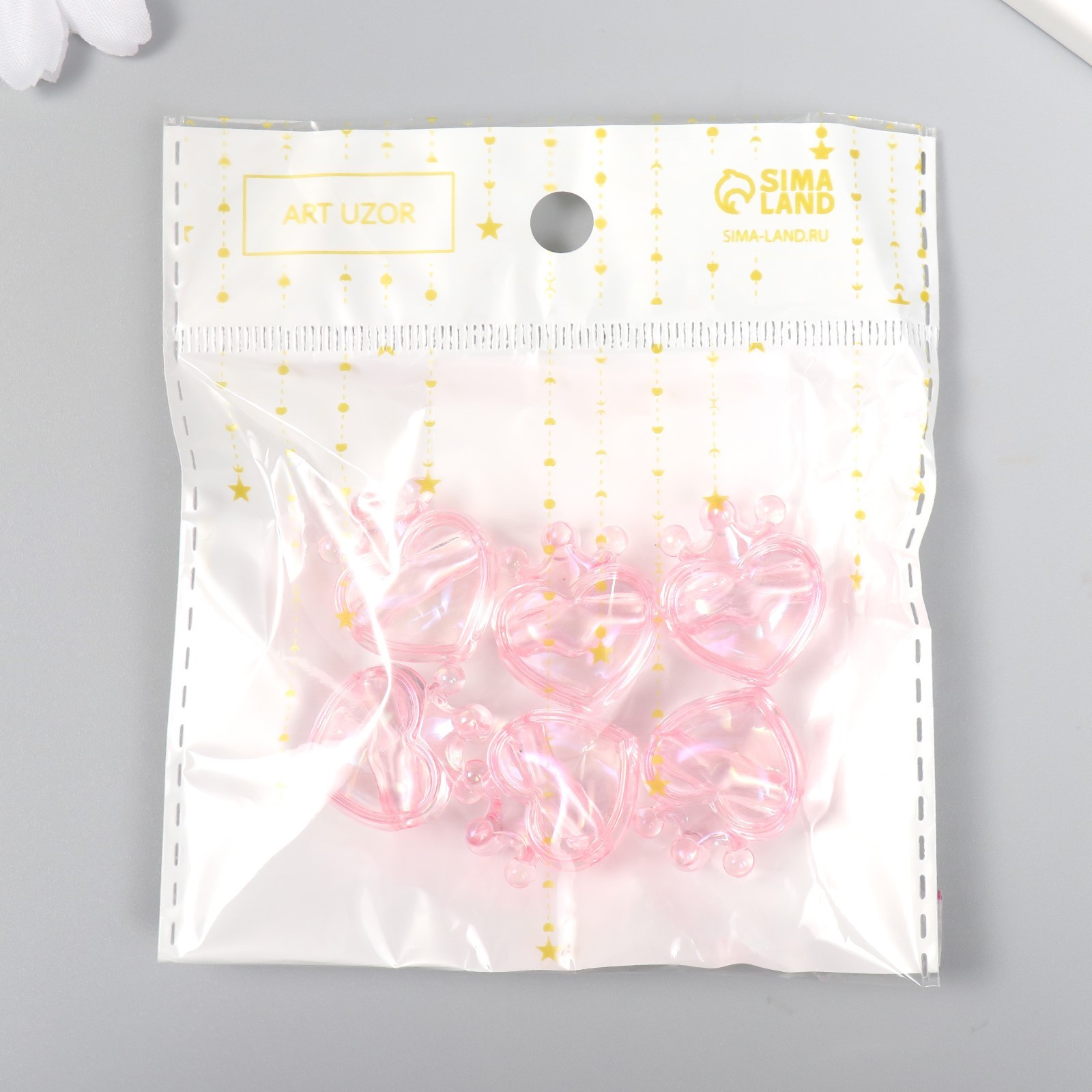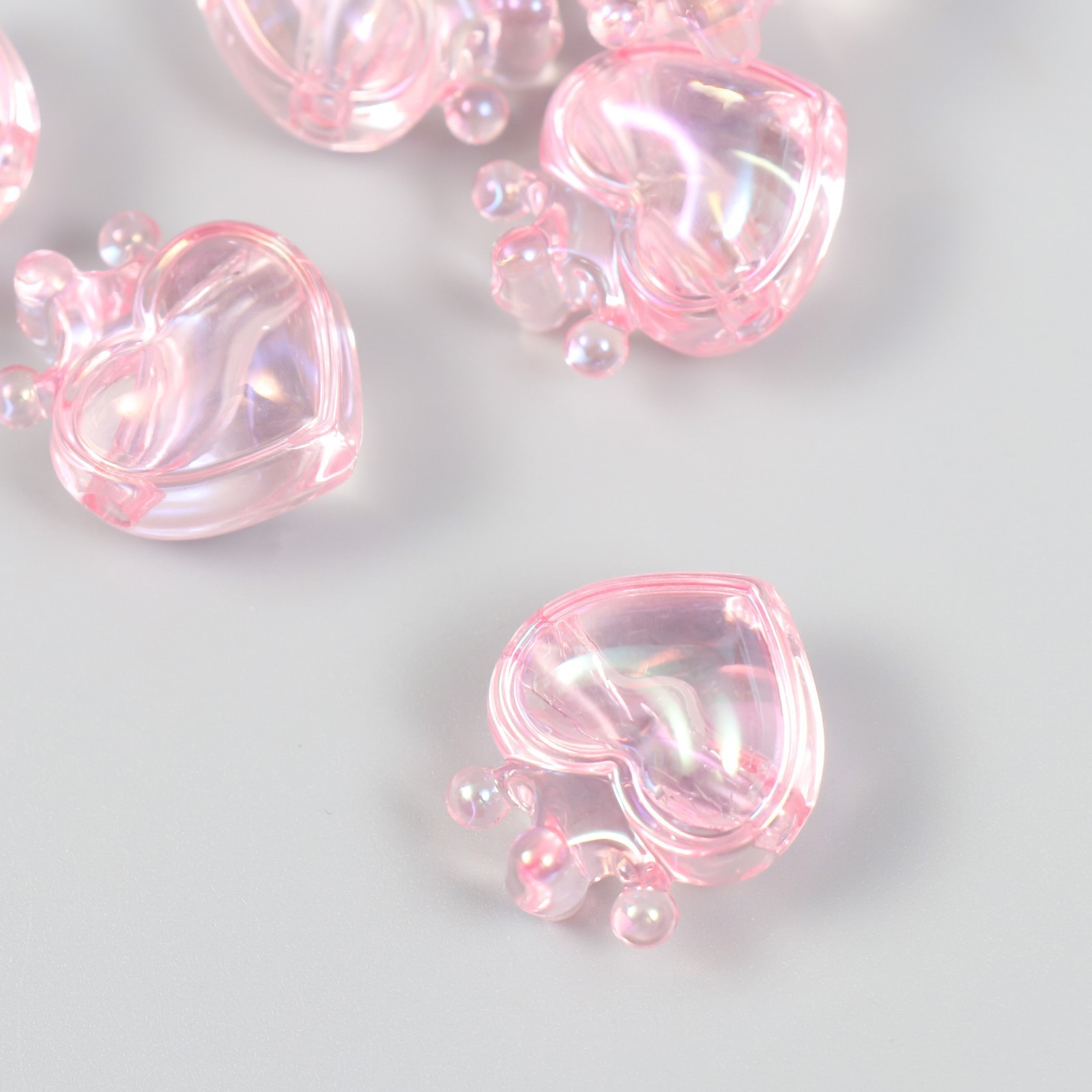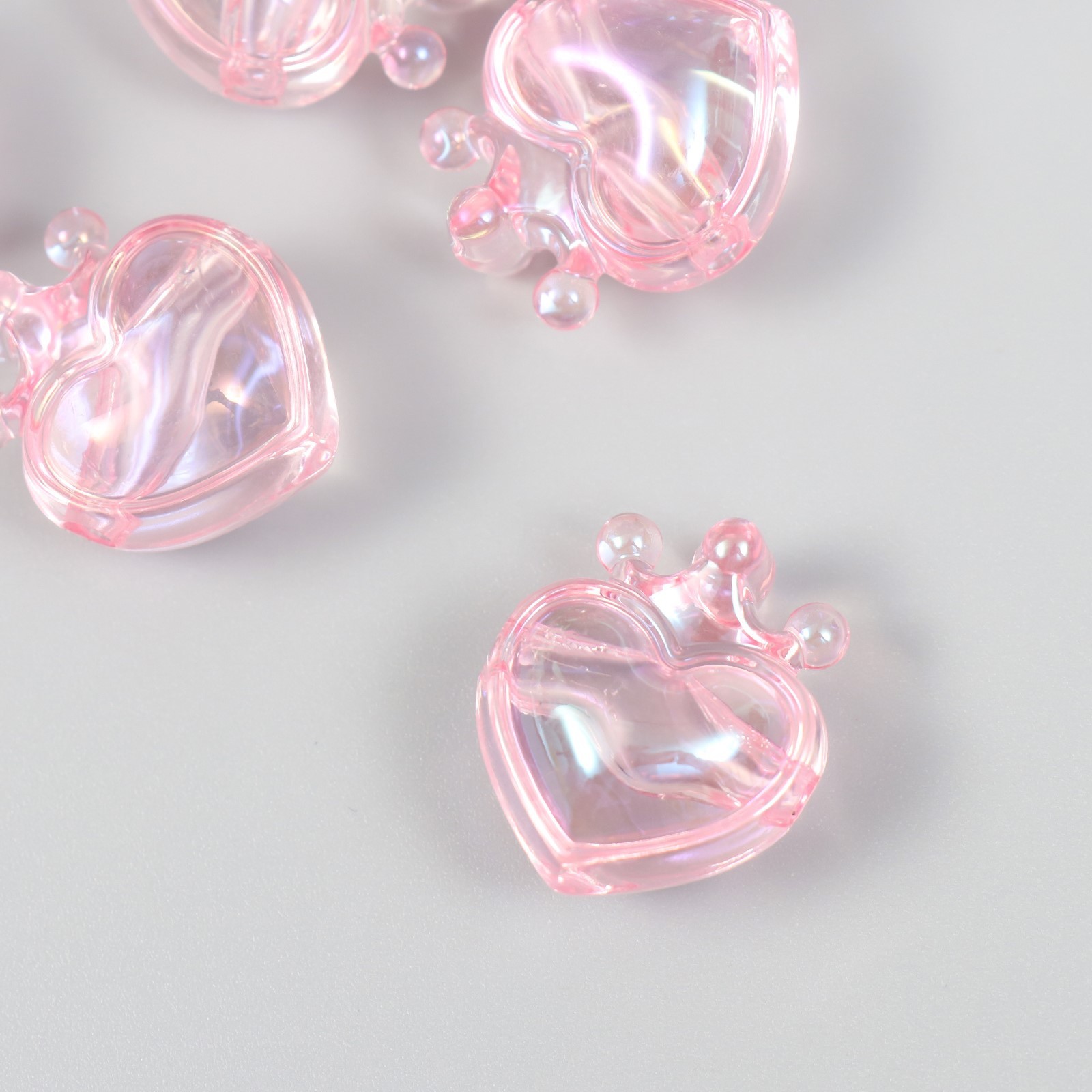 Бусина для рукоделия и плетения «арт узор. сердечко с короной розовое», пластик, 2.1 1.4 2.5 см