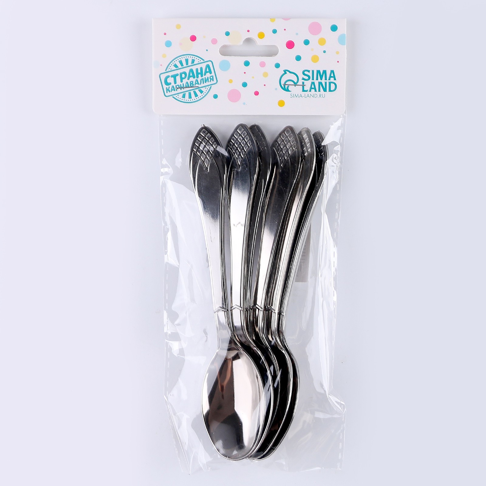 Ложки пластиковые, в наборе 6 шт., цвет серебро