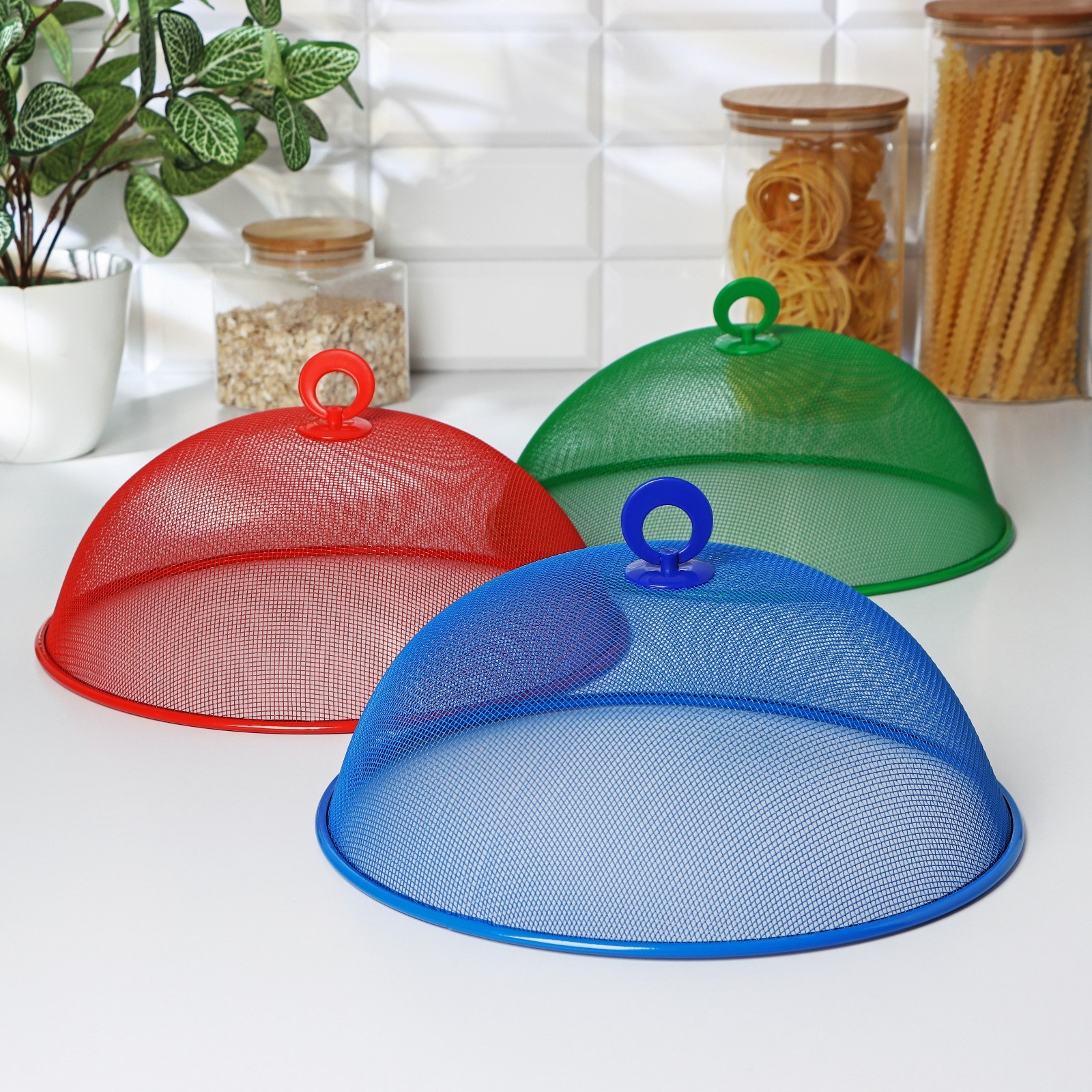 Крышка-сетка для продуктов доляна «вкус», d=30 см, цвет микс. Не все продукты требуют хранения в холодильнике. Многие овощи и фрукты, сладости и выпечку мы беспечно оставляем на столе, полагая, что с ними ничего не случится. При этом мы забываем о насекомых — разносчиках инфекции, которые так и норовят поживиться чужой пищей, попутно нанося вред нашему здоровью. Чтобы лишить их такой возможности, обзаведитесь крышкой для продуктов. Изделие имеет ряд преимуществ: защищает пищу от проникновения насекомых и попадания инородных тел;не препятствует свободному потоку воздуха;удобно снимается благодаря специальной ручке. Кроме того, всем придётся по душе яркий цвет. Пусть в доме станет больше красок, а результаты труда не пропадают зря! Цвет: МИКС Диаметр, см: 30 Материал: Металл Материал: Пластик  развернуть описание ▼