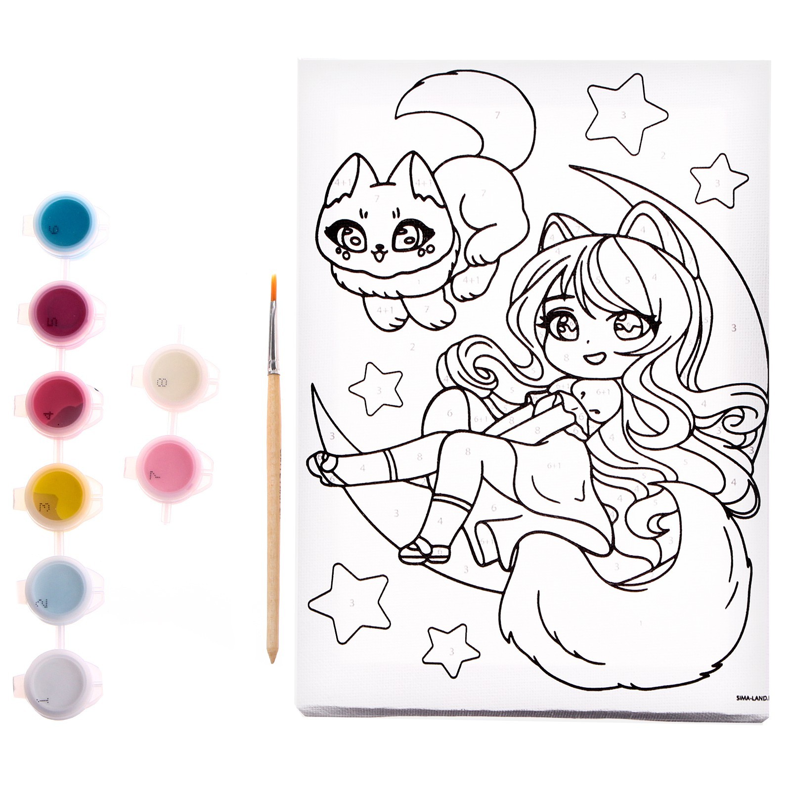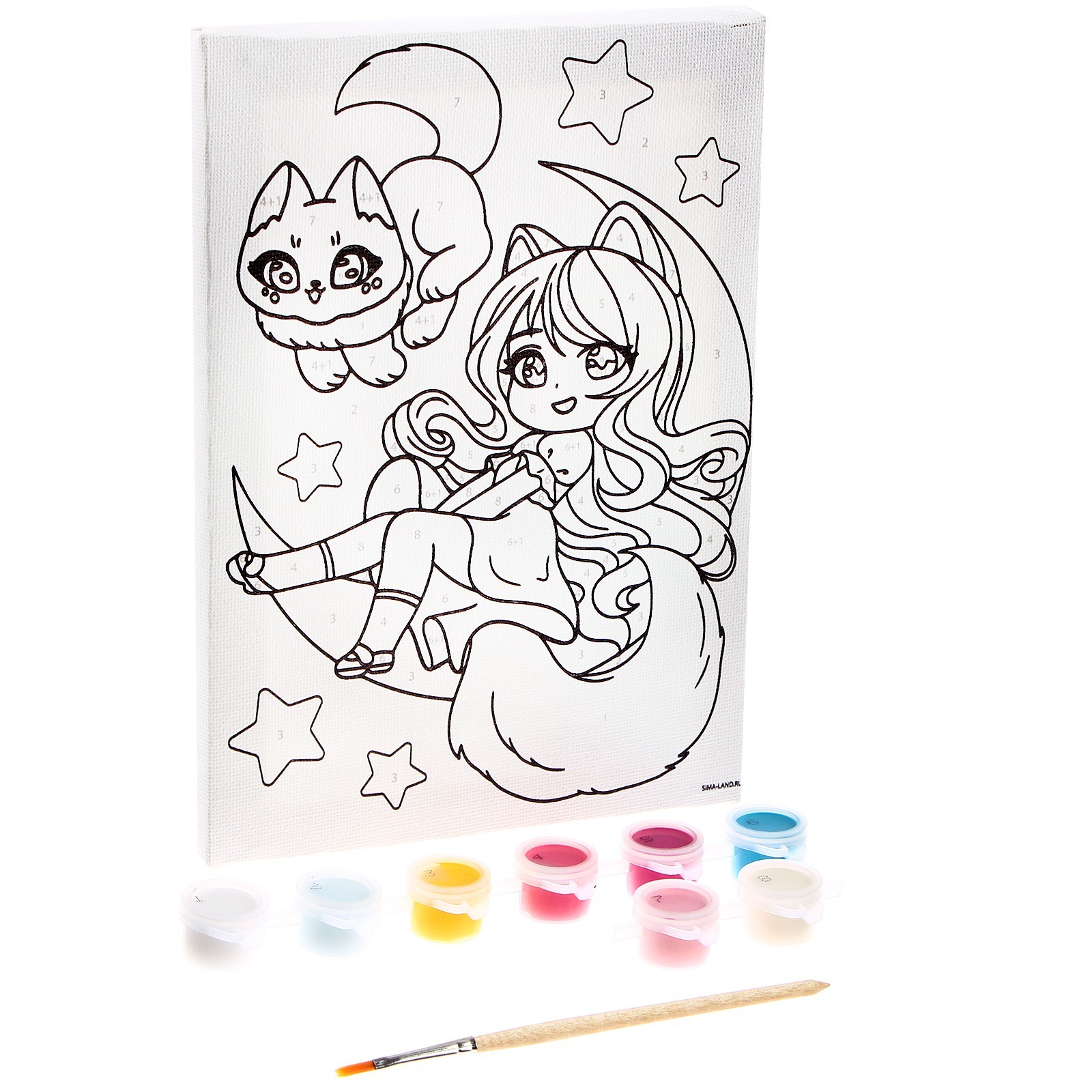 Картина по номерам для детей «принцесса на луне», 21 х 15 см. Подарите маленькому художнику картину по номерам, и через пару мгновений он создаст шедевр! Как раскрасить картину по номерам Рисунок представляет собой знакомую ребёнку раскраску.В каждом секторе рисунка есть цифра, которая обозначает цвет краски.Можете пользоваться подсказкой для раскрашивания, а можете пофантазировать и смешать краски по-своему.Готовая картина украсит детскую комнату или станет оригинальным подарком близкому человеку. Количество цветов:8|Для кого:Для девочки|Размер, см:21 х 15|Возраст:От 7 лет|Тематика:Аниме|Тематика:Детская|Тематика:Азиатская|Ориентация изображения:Вертикально|Вид:Холст под роспись|Темпер. ограничение НЕ НИЖЕ :-30|Уровень сложности:Средний|Изображение:Аниме|Комплектация набора:С кисточками|Комплектация набора:С красками|Страна:Россия  развернуть описание ▼