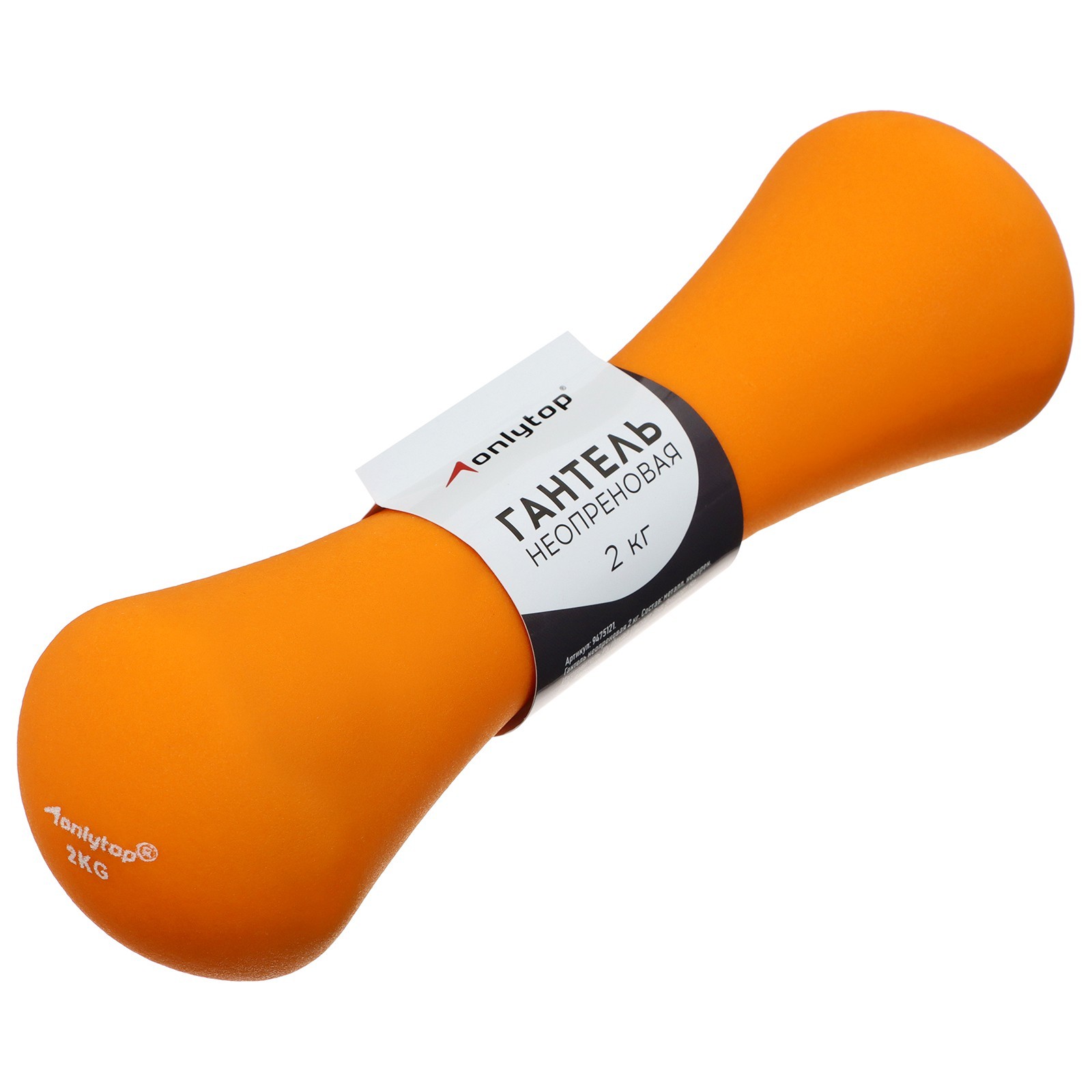 Гантель неопреновая onlytop, 2 кг, цвет оранжевый. Цвет: Оранжевый Вес, кг: 2 Толщина хвата, см: 3 Ширина хвата, см: 10 Защитное покрытие: Да Тип покрытия: Неопрен Тип гантели: Неразборная Форма дисков: Круглые Наличие замков: Нет  развернуть описание ▼