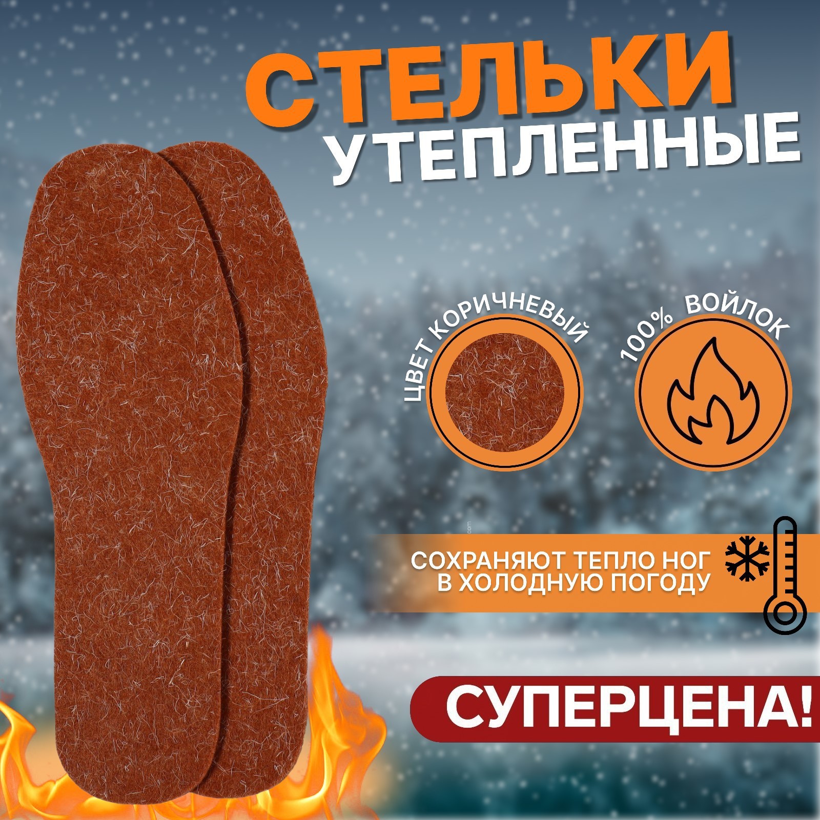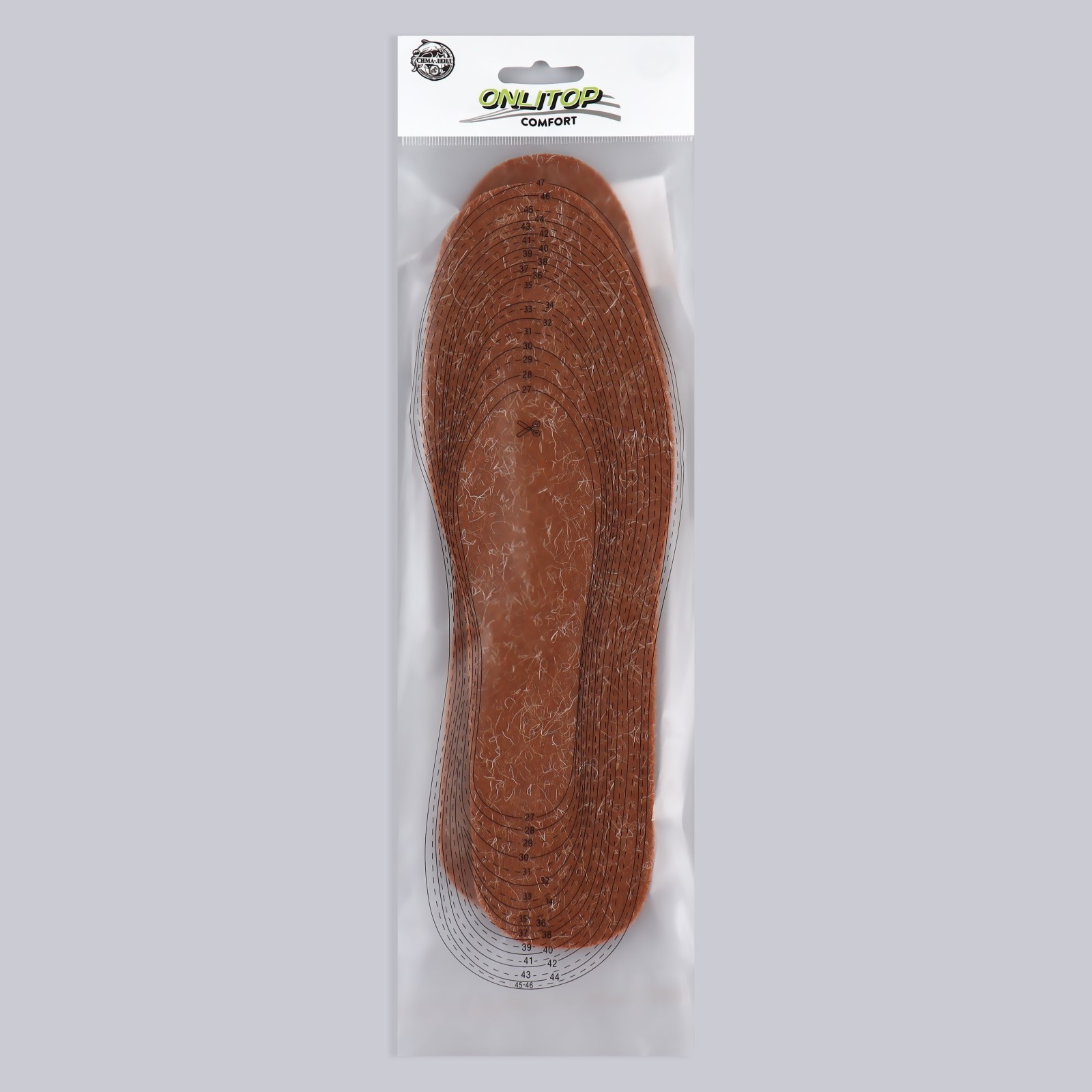 Стельки для обуви, утеплённые, универсальные, р-р Ru до 44 (р-р пр-ля до 45), 28 см, пара, цвет коричневый