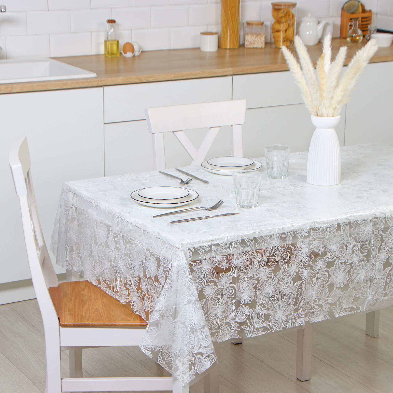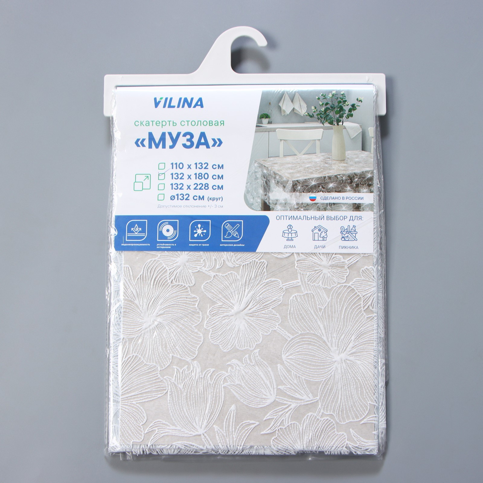 Скатерть «гибискус», 132x180 см, цвет белый