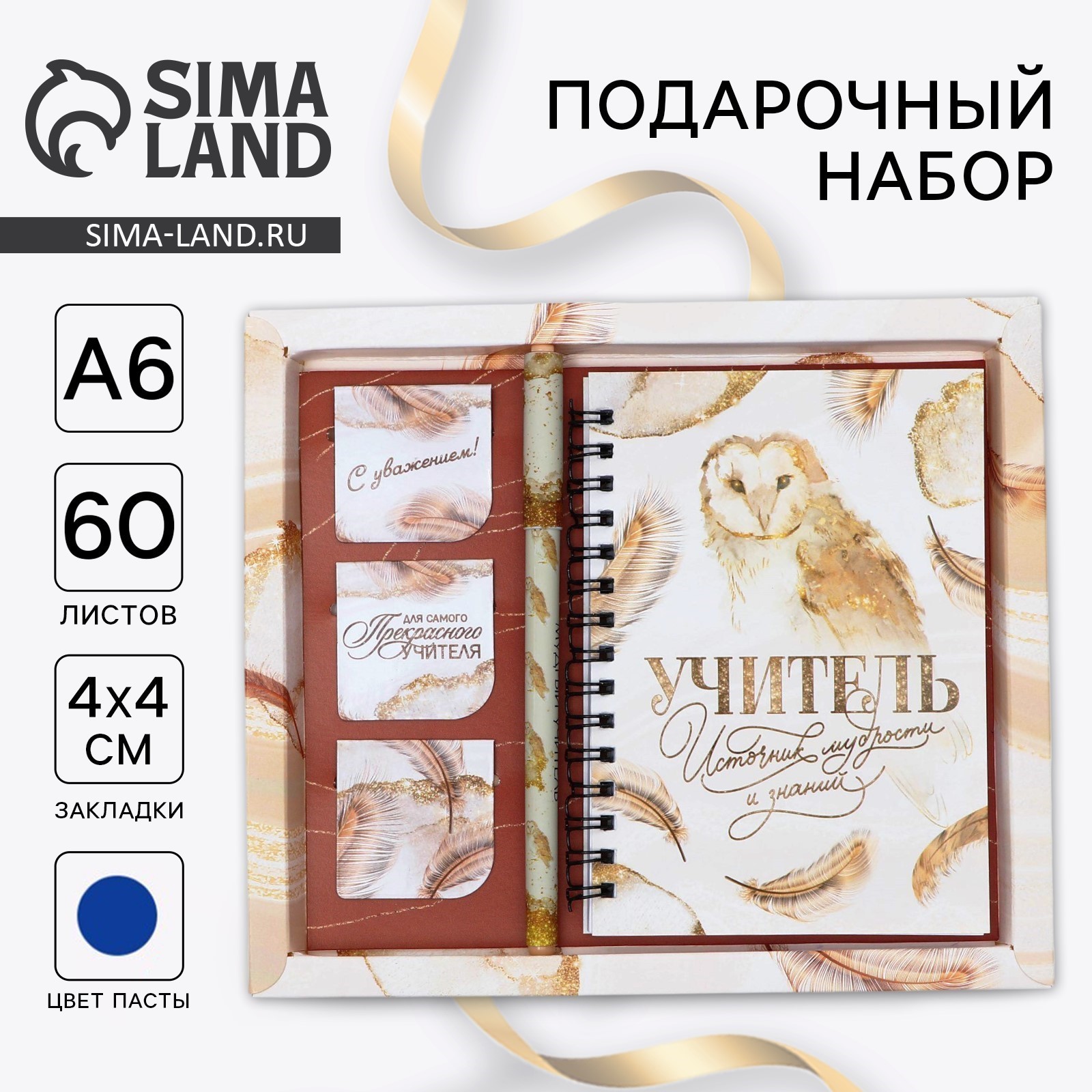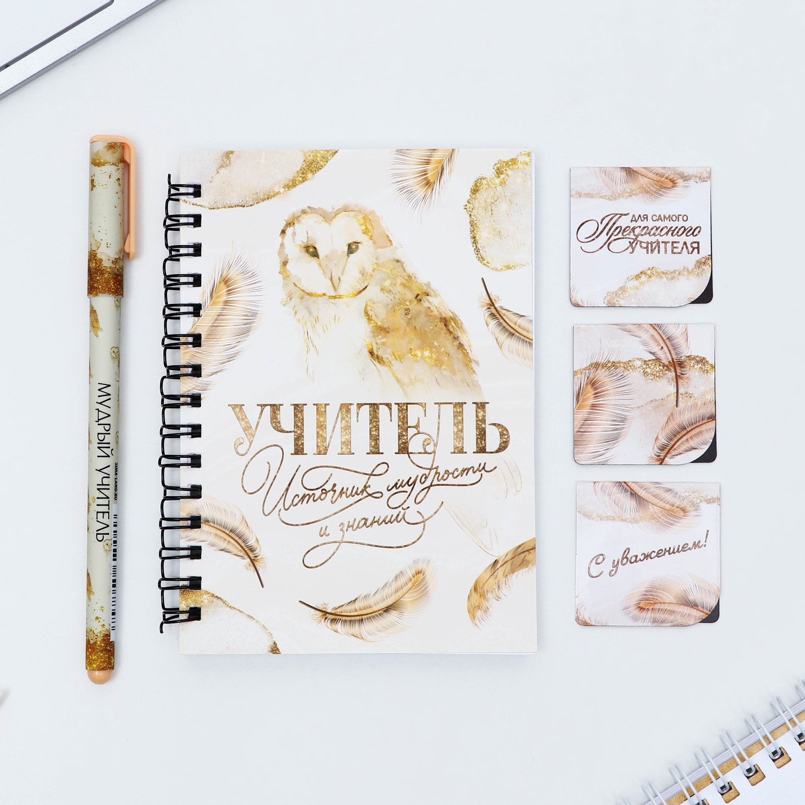 Подарочный набор, блокнот а6, 60 л. магнитные закладки и ручка «учитель». Подарочный набор станет отличным подарком на праздник. Закладка Материал: магнит, картон;Размер закладки : 4см х 4см.Ручка Материал: пластик, чернила;Вид ручки: шариковая;Цвет стержня: синий;Стержень заменяемый: да.Блокнот Количество листов: 60;Формат: А6;Вид обложки: мягкая;Материал: бумага, картон.Упаковка: плёнка. Цвет:Белый|Для кого:Для женщины|Формат:А6|Линовка блока:Линейка|Тип скрепления:На гребне/спирали|В наборе, шт.:5|Количество листов:60|Отделка:Без отделки|Материал обложки:Картон|Вид упаковки:Плёнка|Тематика праздника:День учителя|Адресат:Учителю|Материал:Картон|Материал:Бумага|Составляющие набора:Закладка|Составляющие набора:Блокнот|Составляющие набора:Ручка|Возраст:Для взрослых|Вид обложки:Мягкая|Дизайн обложки:С рисунком|Страна:Россия  развернуть описание ▼