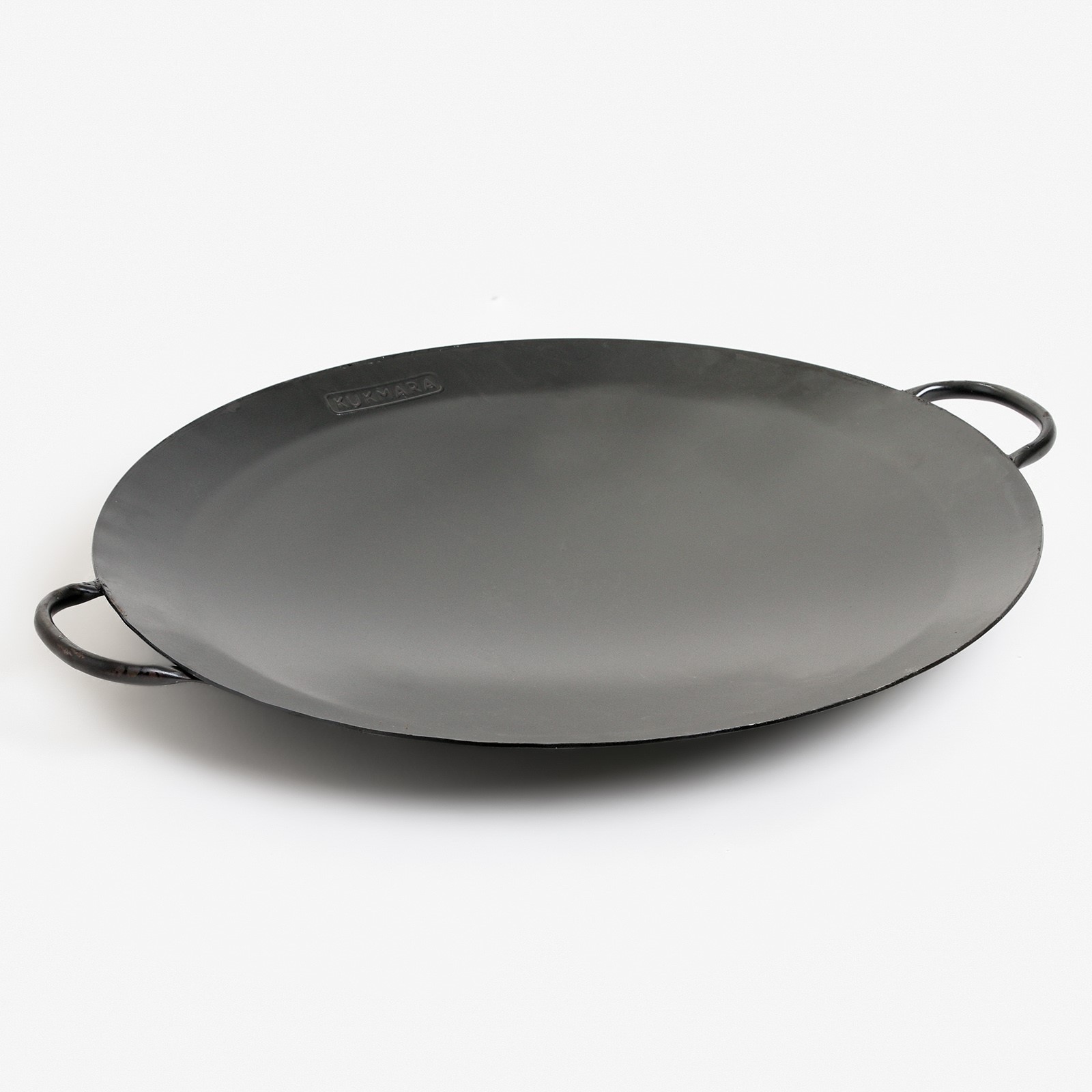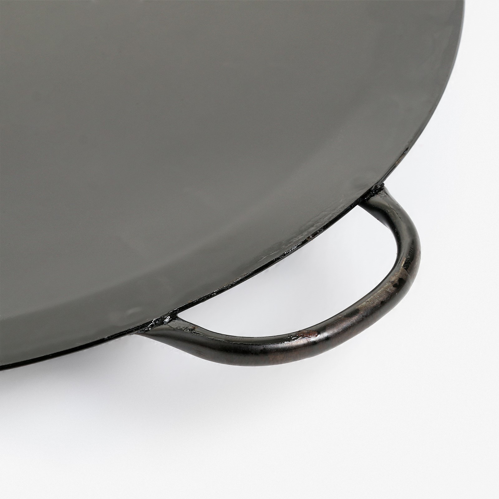 Садж стальной с эко-воронением, сталь 2 мм, 57 х 49 х 6 см. Садж представляет собой сковороду со сферическим дном, снабженную двумя ручками. Его можно расположить на учаге для казана, мангале, а также над открытым огнем. Позволяет готовить одновременно несколько видов продуктов, а также блюда на большую компанию. Преимуществом саджа является его универсальность: если разместить выпуклой стороной вниз над огнем, то можно приготовить не только традиционный садж (азербайджанское блюдо), но и другие мясные, рыбные, овощные блюда. А если посуду перевернуть выпуклой стороной вверх, то появляется возможность для выпечки лаваша и лепешек. Для предохранения от коррозии садж пропитан льняным маслом, поэтому нет необходимости прокаливать изделие перед использованием, нужно просто его вымыть. Особенности: Антипригарное покрытие: НетДиаметр изделия (см): 49Материал корпуса: СтальТолщина бортов (см): 0, 2Крышка: НетВес (кг): 3, 24Ручка: Не съёмнаяТолщина дна (см): 0, 2Длина изделия (мм): 570Ширина изделия (мм): 490Высота изделия (мм): 60 Цвет: Чёрный Форма: Круглая Диаметр, см: 49 Толщина стенки, мм: 2 Толщина дна, мм: 2 Крышка: Нет Материал: Металл Съёмная ручка: Нет Тип плиты: Для газовой плиты Температурное ограничение: Нет Капсульное дно: Нет Вид сковороды: Садж Можно мыть в посудомоечной машине: Нет Форма: Круг, шар, цилиндр  развернуть описание ▼