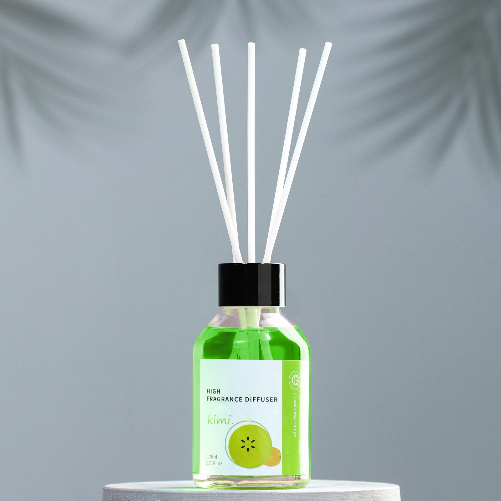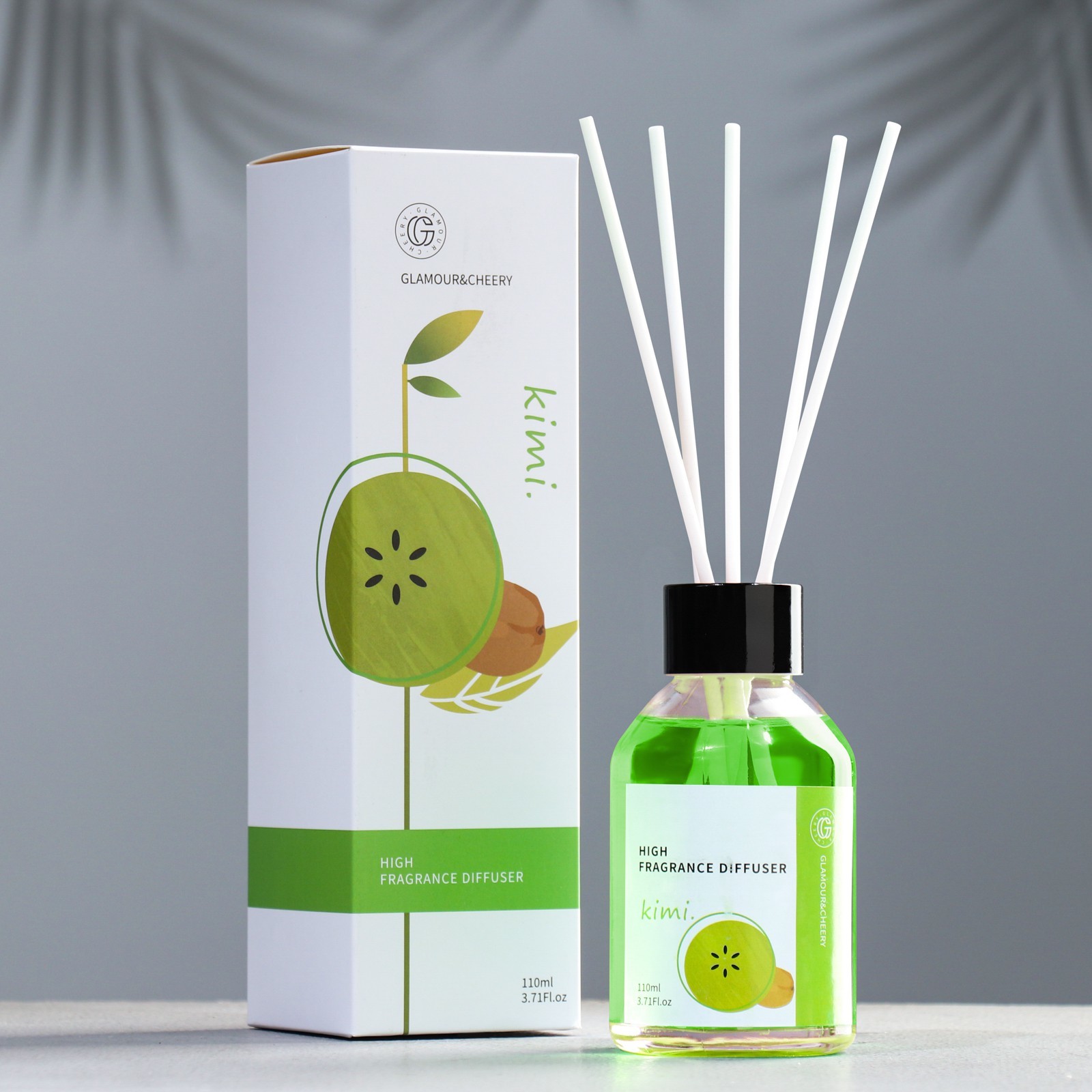 Диффузор ароматический "киви", 100 мл. Диффузор — это безопасный, экологически чистый и натуральный способ ароматизации помещения, является прекрасной альтернативой ароматизированным спреям. Чтобы аромат оставался насыщенным, 1–2 раза в день доставайте палочки и переворачивайте их, вставляя другим концом в стеклянную колбу. Интенсивность аромата зависит от влажности воздуха (в более влажном помещении летучесть аромата сильнее), проветриваемости помещения и количества палочек. Объём, мл: 100 Вид ароматизатора: Диффузор Аромат: Киви  развернуть описание ▼