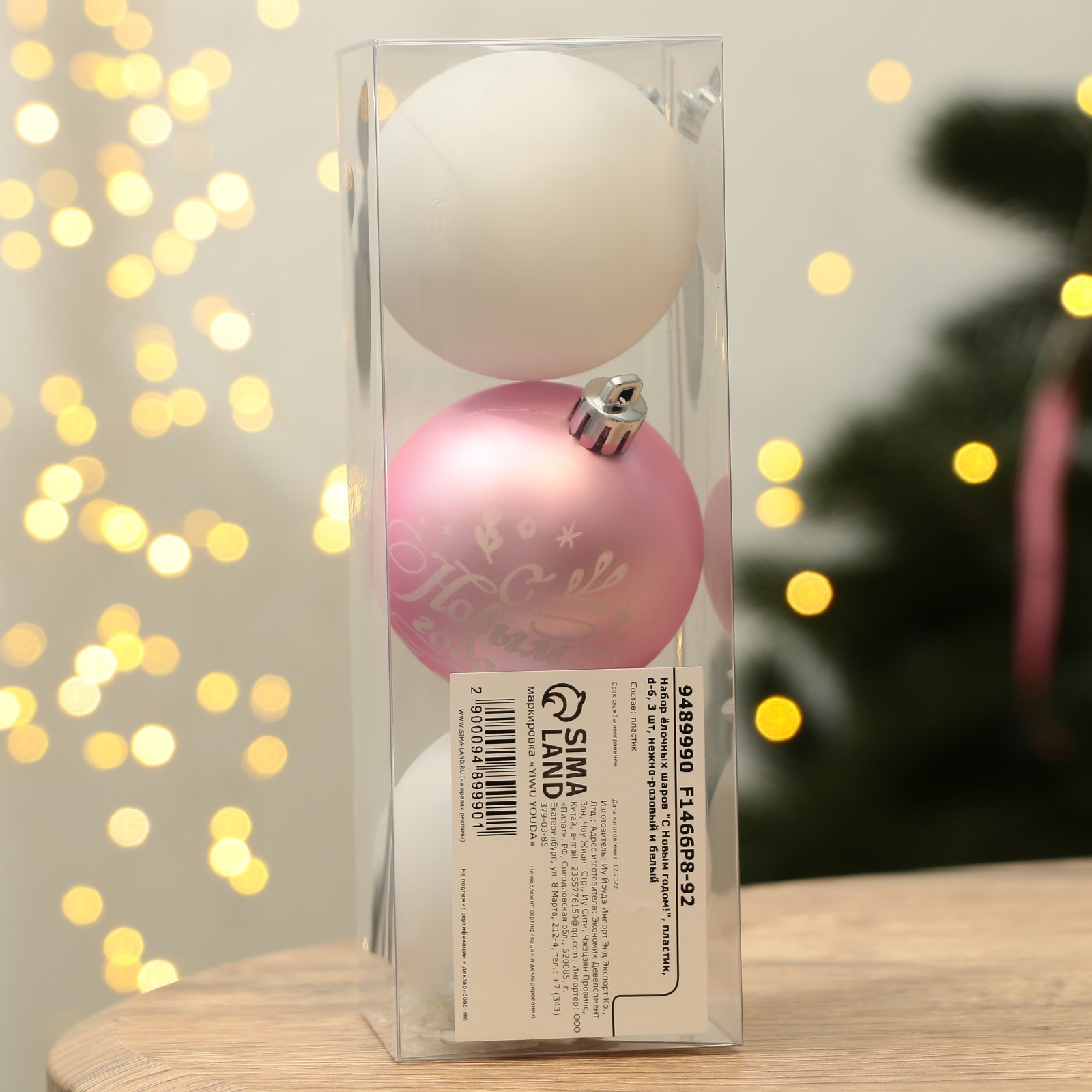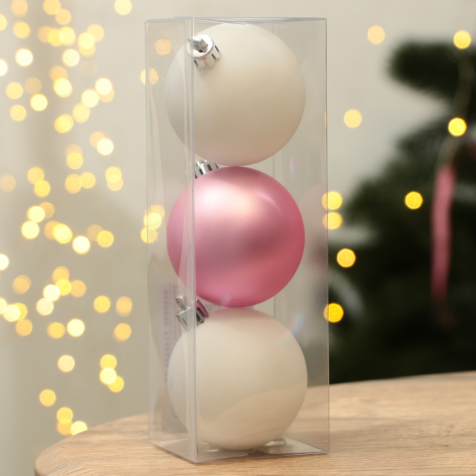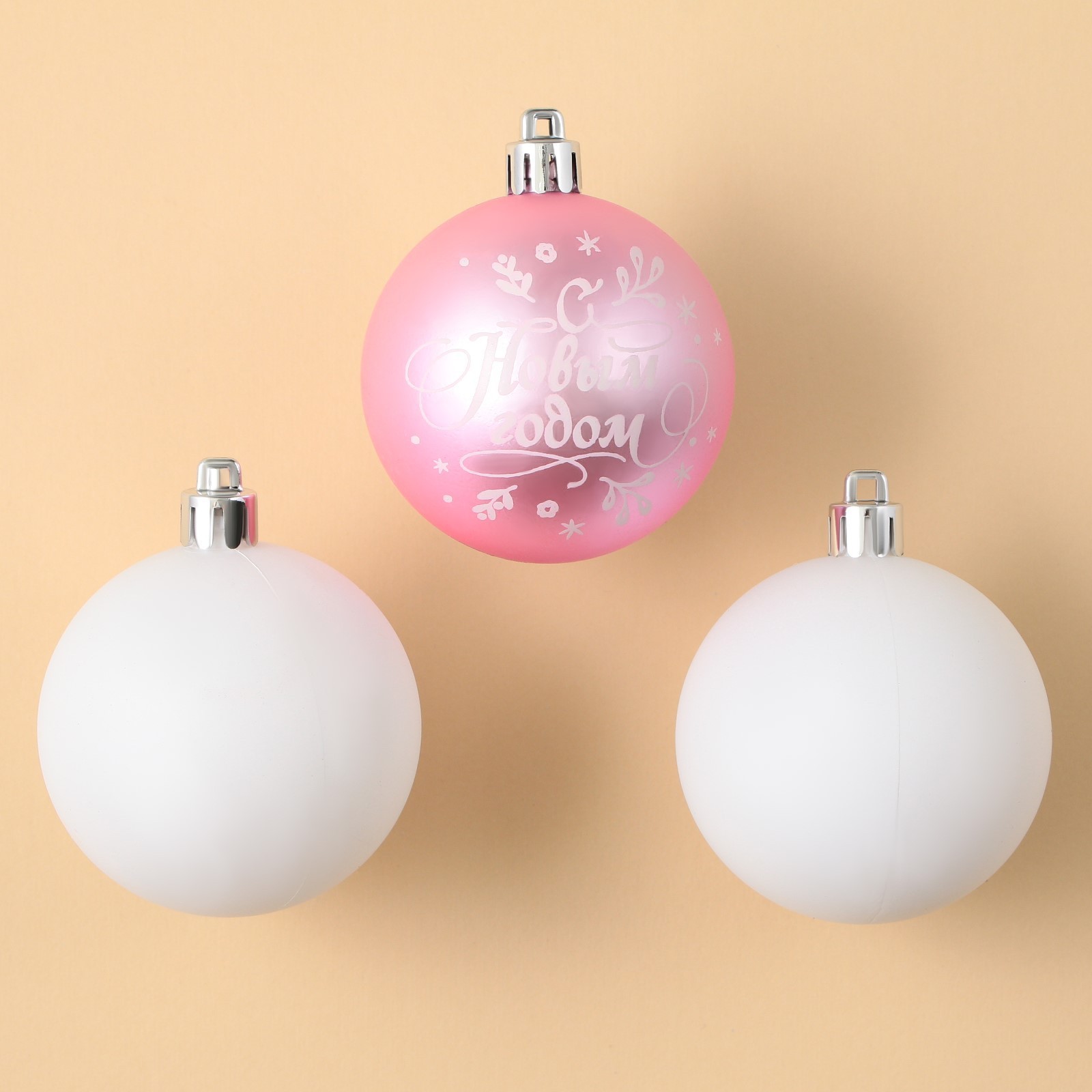 Шары ёлочные «с новым годом!», пластик, D=6, 3 шт., розовый, белый