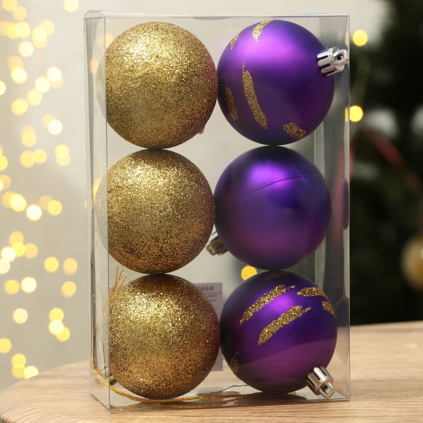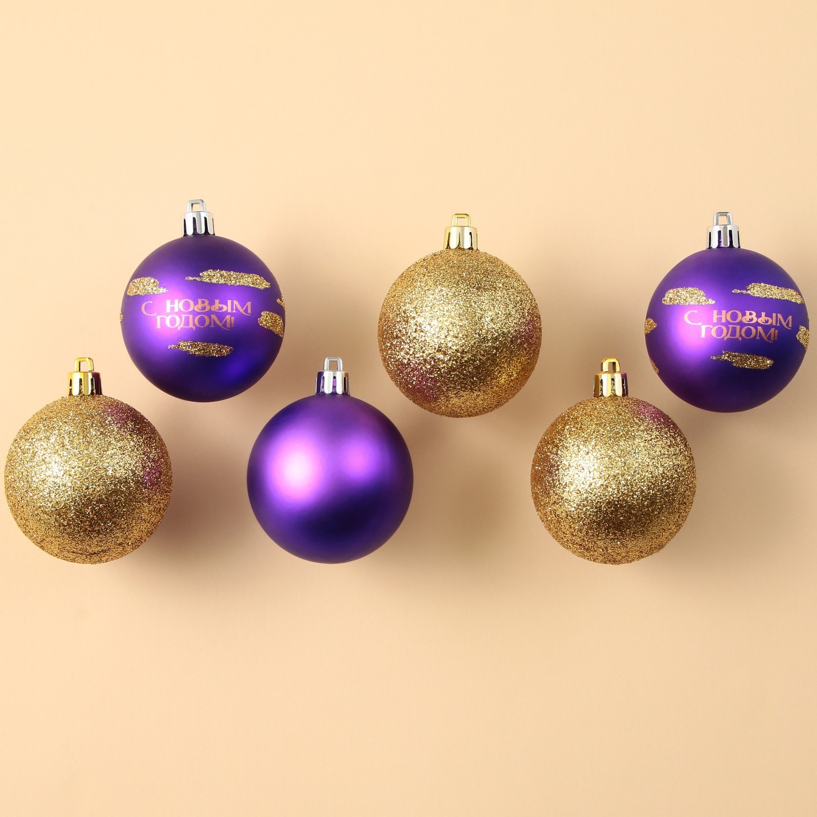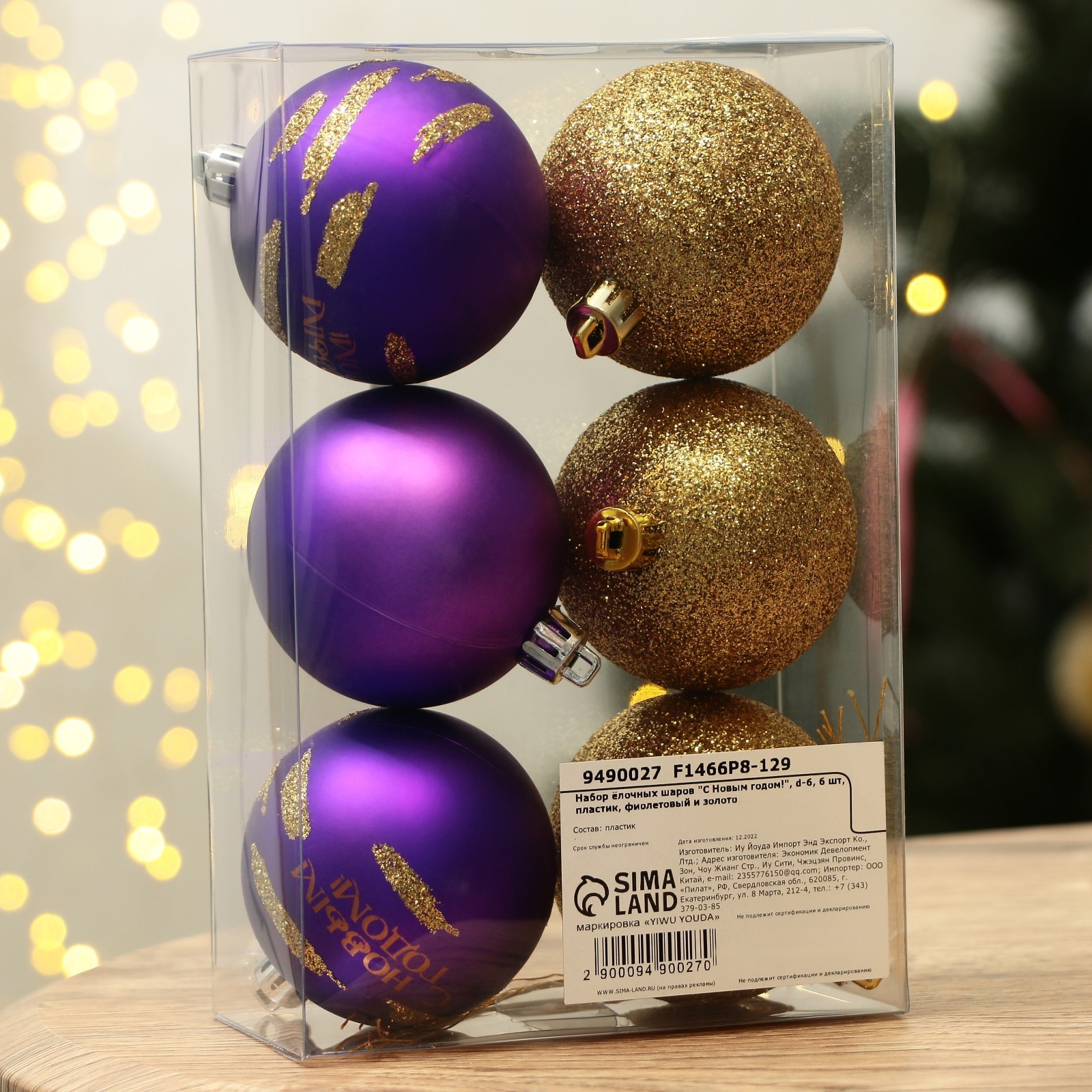 Шары ёлочные «с новым годом!», пластик, d=6, 6 шт., фиолетовый, золотой. Набор:Да|Цвет:Фиолетовый|Цвет:Золотистый|Высота, см:18|В наборе, шт.:6|Диаметр шара, см:6|Символ года:Нет|Материал:Пластик|Стиль:Фьюжн|Страна:Китай
