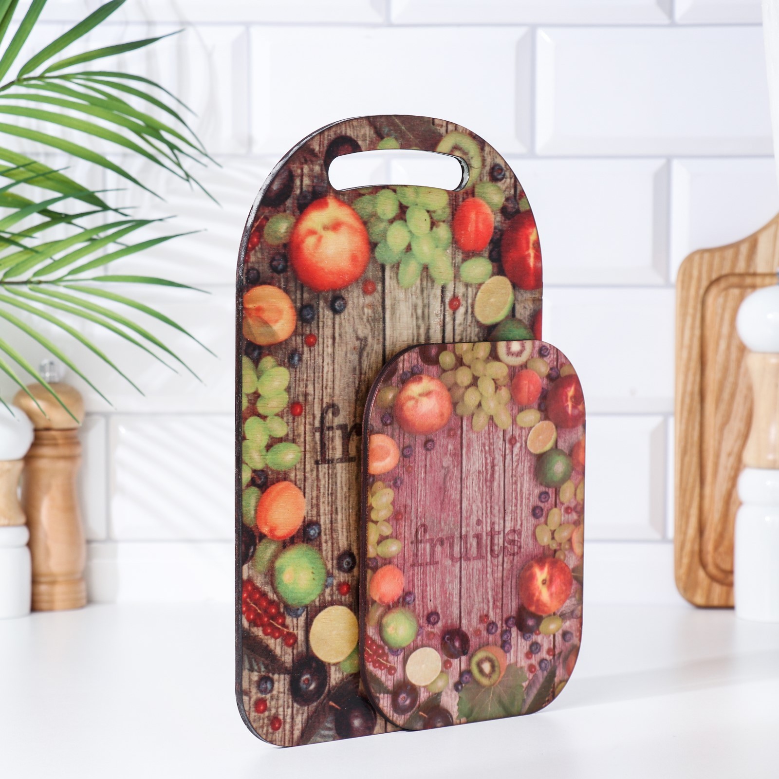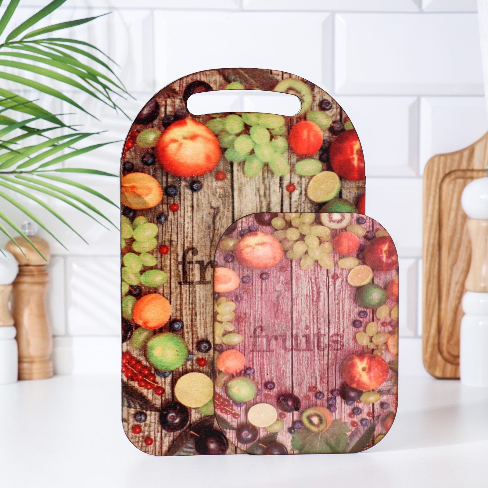 Набор деревянная разделочная доска и подставка под горячее с декором "№2" 29,25х18,75х1,1 см