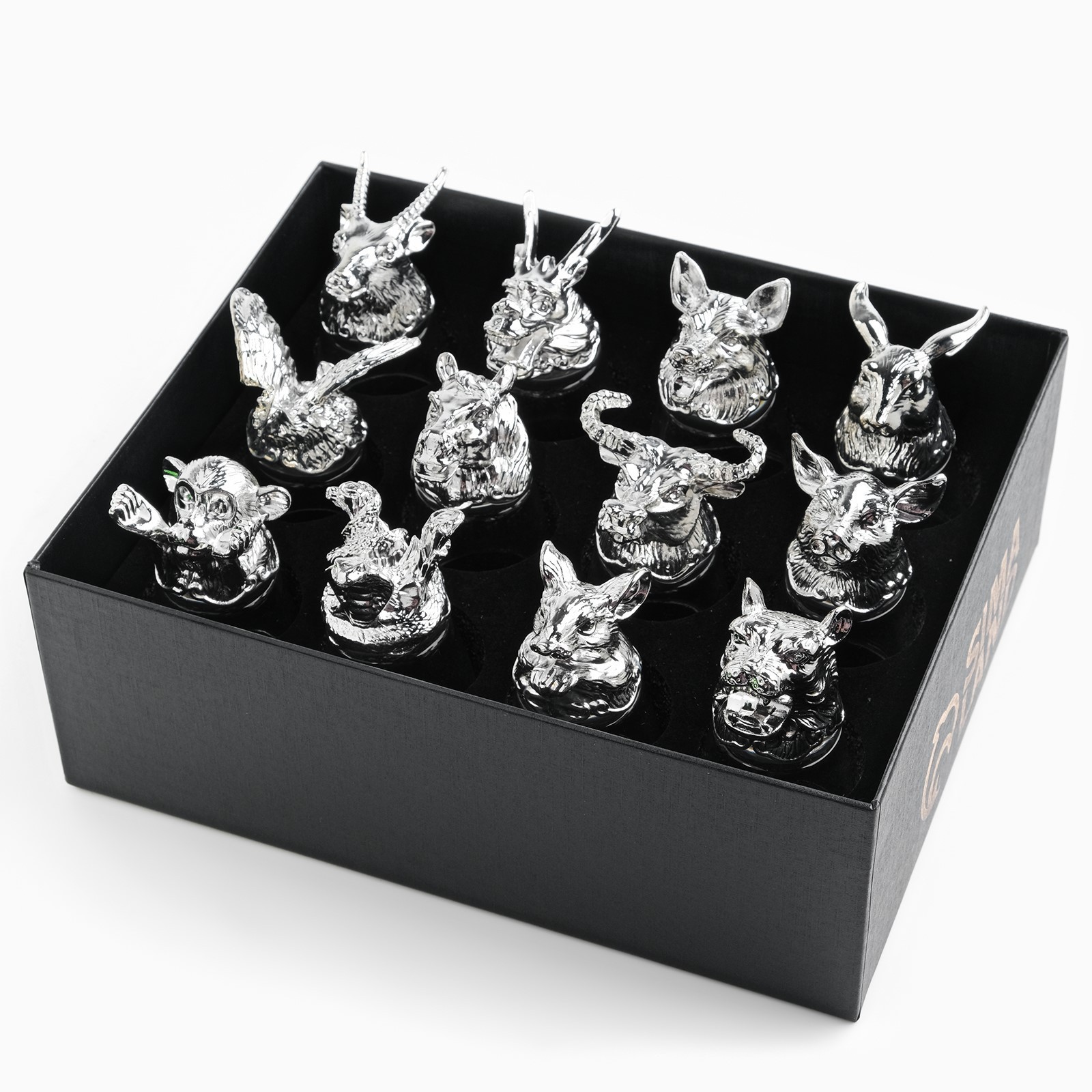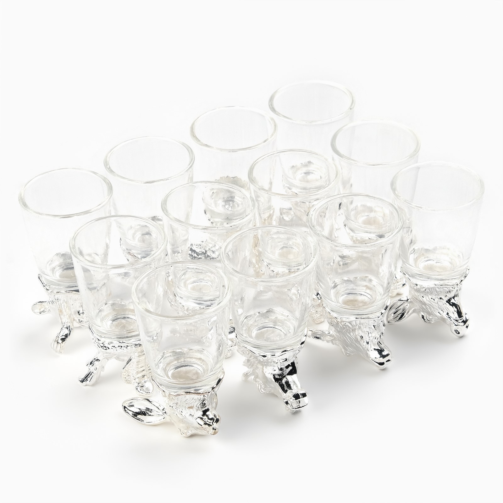 Набор рюмок-перевёртышей подарочный «лучшему мужчине», 30 мл, 12 шт., металл, стекло, серебристый. Набор стопок-перевертышей высокого качества с головами животных — оригинальный подарок для охотника, а также будет незаменим на большом дружеском застолье или на охотничьем привале. Стопки будут прекрасно сочетаться с любой сервировкой и могут использовать как для повседневного использования, так и для особых случаев. Кроме того, стеклянные прозрачные рюмки легко моются и не подвергаются коррозии. Набор станет прекрасным подарком на новый год папе или маме, бабушке или дедушке, а еще коллеге или начальнику боссу на день рождения или 23 февраля, 9 мая, 8 марта, юбилей. Набор:Да|Цвет:Серебристый|Для кого:Для мужчины|В наборе, шт.:12|Объём, мл:30|Объём бокала/рюмки, мл:30|Вид упаковки:Подарочная коробка|Рисунок:Нет|Тематика праздника:День рождения|Тематика праздника:23 Февраля|Адресат:Мужчине|Назначение:Для текилы|Назначение:Для коньяка|Назначение:Для водки/ликера|Материал:Металл|Материал:Стекло|Составляющие набора:Рюмки (стопки)|Возраст:Для взрослых|Страна:Китай  развернуть описание ▼