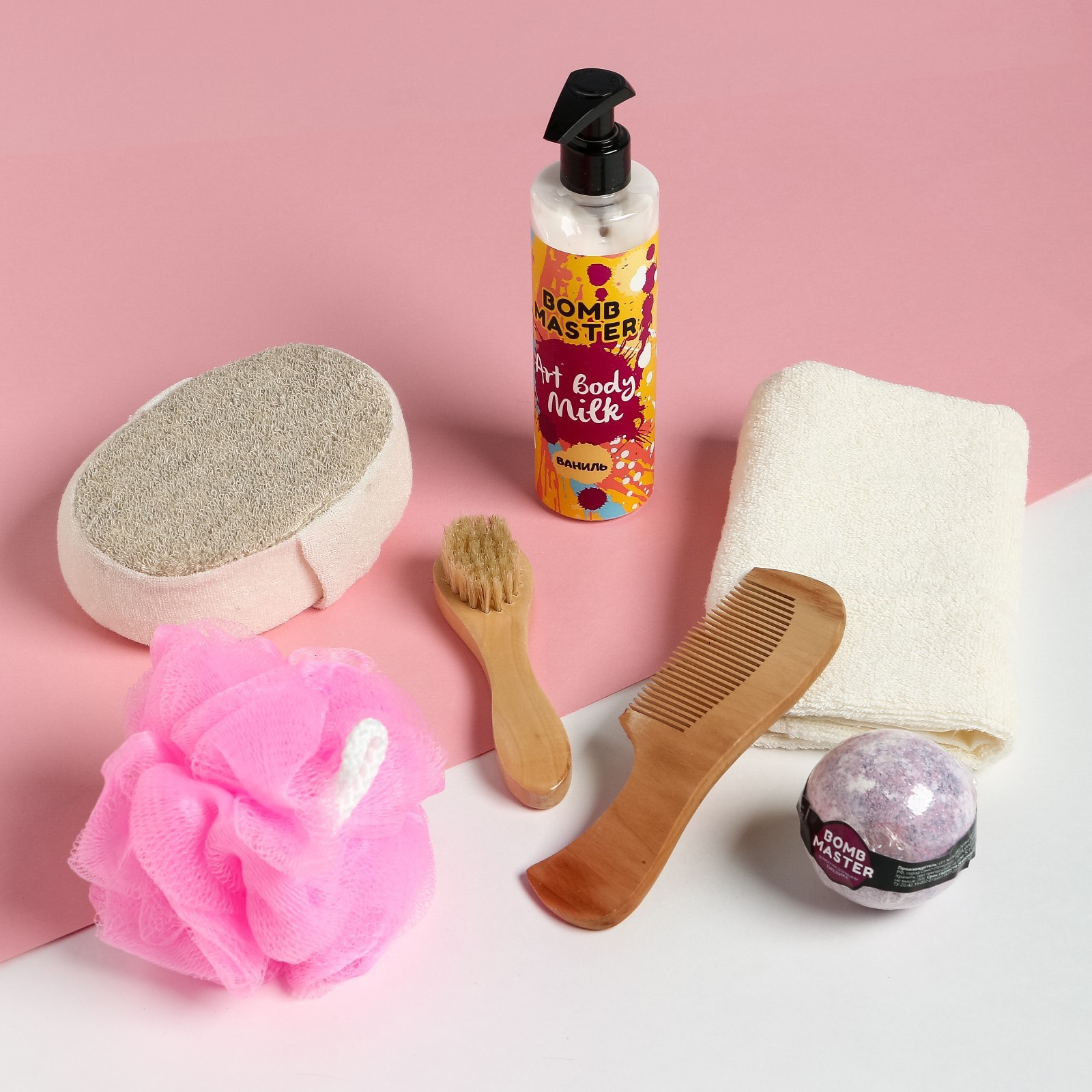 Набор подарочный «этель», полотенце 30 60 см, мочалка, щётка. Набор:Да|Цвет:Бежевый|Для кого:Для женщины|Ткань:Махра|Размер, см:30 х 60|В наборе, шт.:7|Тематика:Однотонная|Вид упаковки:Коробка картонная|Тематика праздника:8 Марта|Адресат:Без адресата|Декоративные элементы:Без элементов|Назначение полотенец:Для лица|Назначение полотенец:Для рук|Состав ткани:Хлопок|Составляющие набора:Бомбочка для ванн|Составляющие набора:Расчёска для волос|Составляющие набора:Мочалка|Составляющие набора:Полотенце|Составляющие набора:Молочко для тела|Составляющие набора:Щётка|Возраст:Для взрослых|В подарочной упаковке:Да|Особенности:Без особенностей|Страна:Россия  развернуть описание ▼