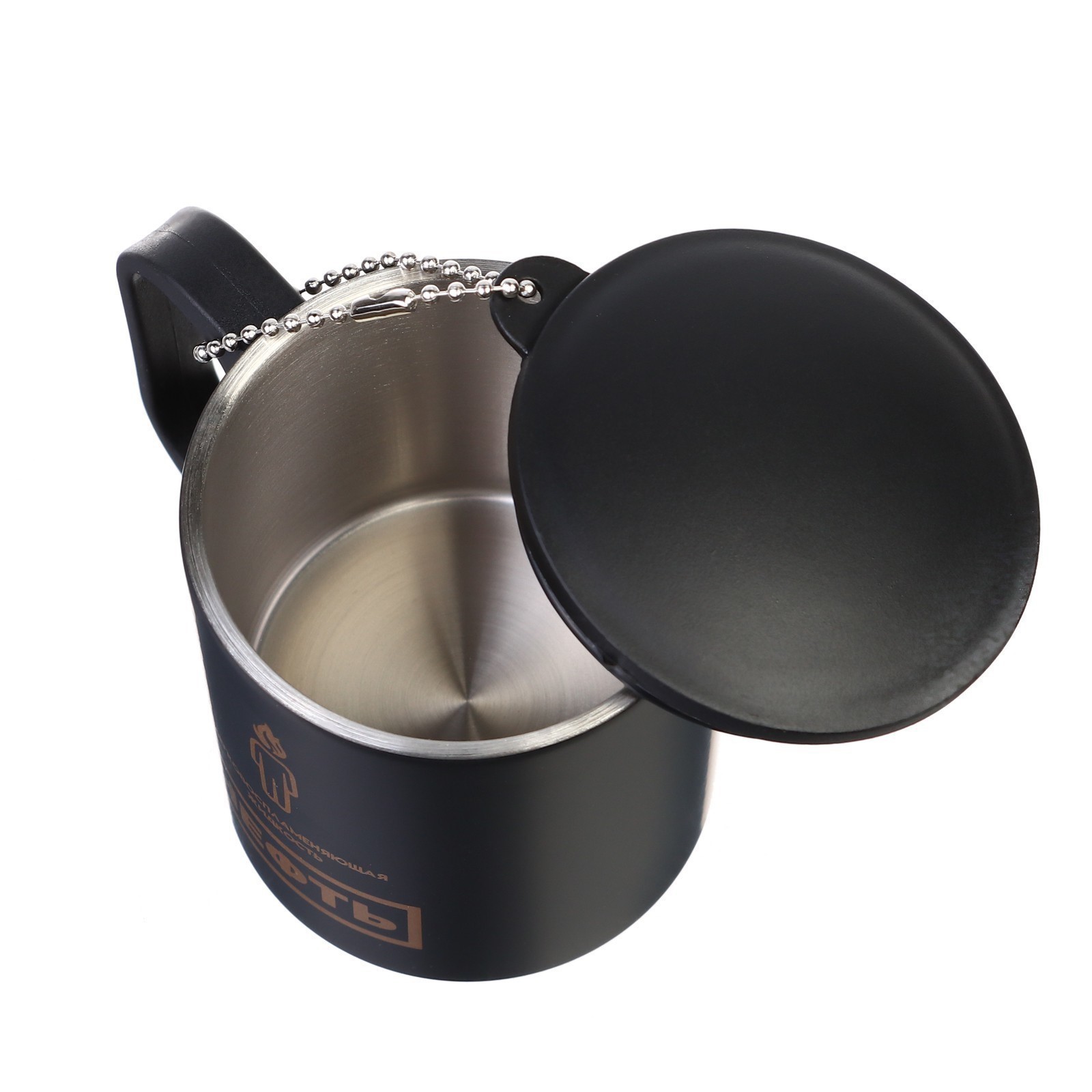 Термокружка, 180 мл, туризм "нефть", сохраняет тепло 2 ч. Стильная и яркая термокружка "Мастер К" для кофе и чая, подарит вам тепло и уют. Двуслойная конструкция кружки из нержавеющего металла снаружи и 304 нержавеющей стали внутри. Внутренняя колба из нержавеющей стали не впитывает запахи, не влияет на вкус напитка и легко моется. Термокружка "Мастер К" 180 мл (0. 18 л) - это яркое решение для любителей чая, кофе, травяных, ягодных и фруктовых заварок. Она позволяет не только согреться горячим кофе, чаем, матчей, какао, но и идеально подходит для прохладных напитков: чай со льдом, смузи или айс-кофе, которые вы можете взять с собой куда угодно. Кружка из нержавейки станет отличным подарком рыболову, охотнику, папе или маме, бабушке или дедушке, другу, подруге, брату, сестре, детям, ребенку, девушке а еще коллеге или начальнику боссу на день рождения или 23 февраля, 9 мая, 8 марта, юбилей, новый год. Пойдет как кружка на пикник для путешественников. Это отличная альтернатива одноразовым стаканам. Термокружка выполнена на основе двуслойной конструкции, при горячих напитках кружка не будет нагреваться и вам будет комфортно держать ее в руке. Кружка имеет удобную пластиковую ручку. При желании вы можете снять крышку и использовать ее без нее. Классическая форма стакана обеспечит удобство использования, а авторский дизайн подчеркнёт индивидуальность обладателя. Цвет: Чёрный Время сохранения тепла/холода, ч: 2 Объём, мл: 180 Материал корпуса: Коррозионностойкая сталь Крышка: Да Материал: Пластик Материал: Металл Материал колбы: Металл Слои: Однослойные Вакуумный: Нет  развернуть описание ▼
