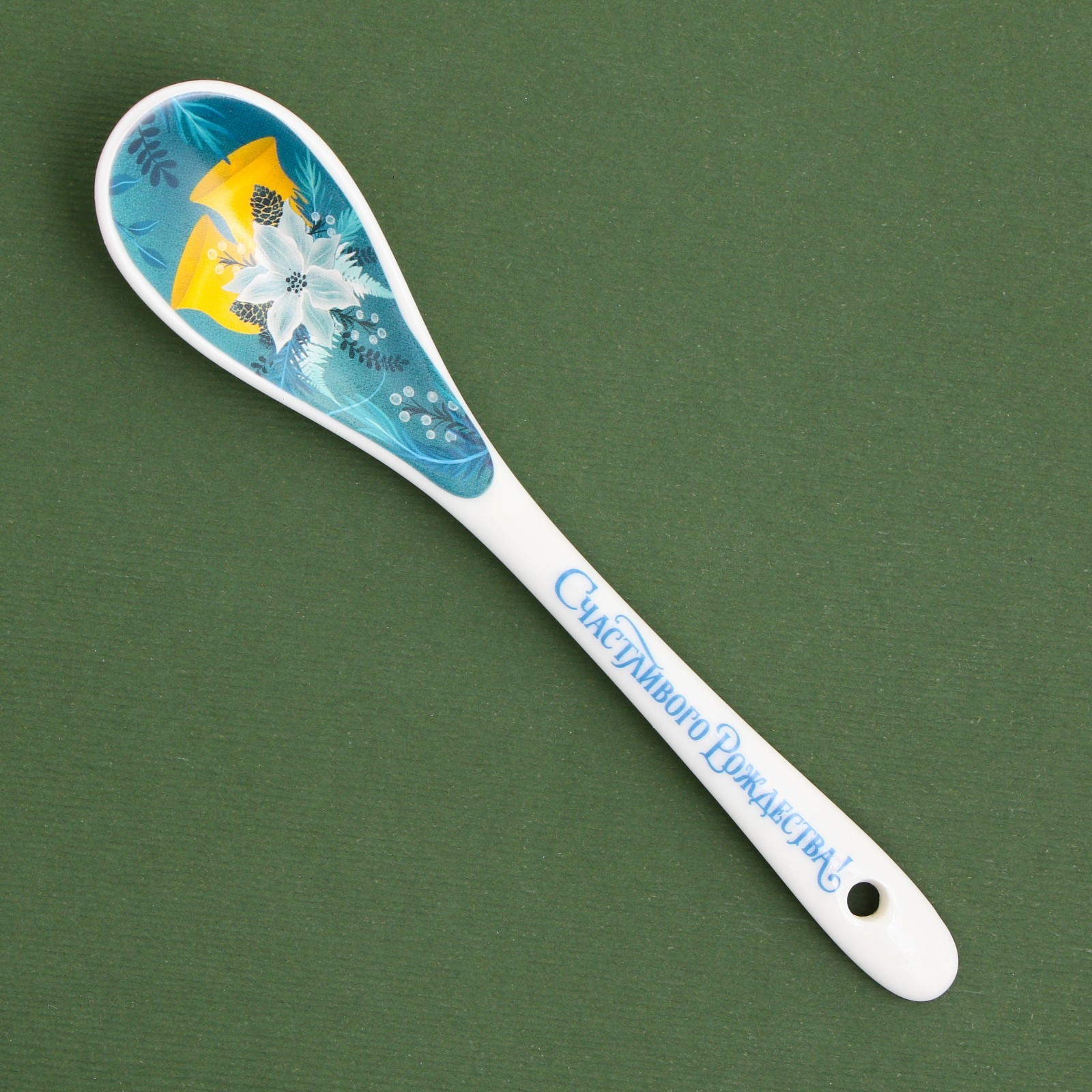 Ложка новогодняя «счастливого рождества!», на новый год, керамика, 2,5 х 12,6 см