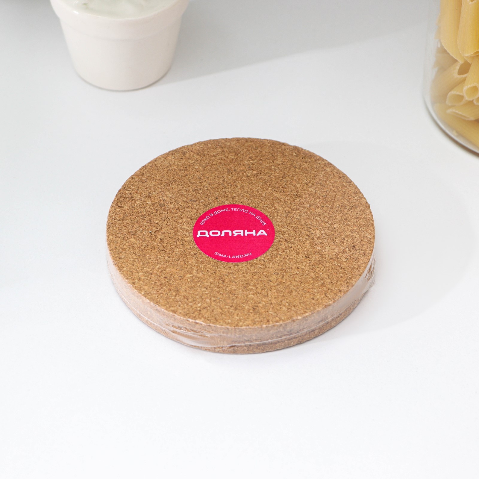 Набор подставок под горячее доляна, 4 шт, d=10 см. Подставка под горячее поможет сохранить стол от пятен и повреждений. А также подставку можно использовать для хранения украшений. Помимо этого, изделие будет необычным элементом интерьера кухни и подойдёт в качестве подарка на любой праздник! Достоинства: необычный дизайн, неограниченный срок службы, экологический и безопасный для продуктов питания материал. Цвет: Бежевый Форма: Круглая Размер, см: 10 х 10 В наборе, шт.: 4 Материал: Пробка Можно мыть в посудомоечной машине: Нет  развернуть описание ▼