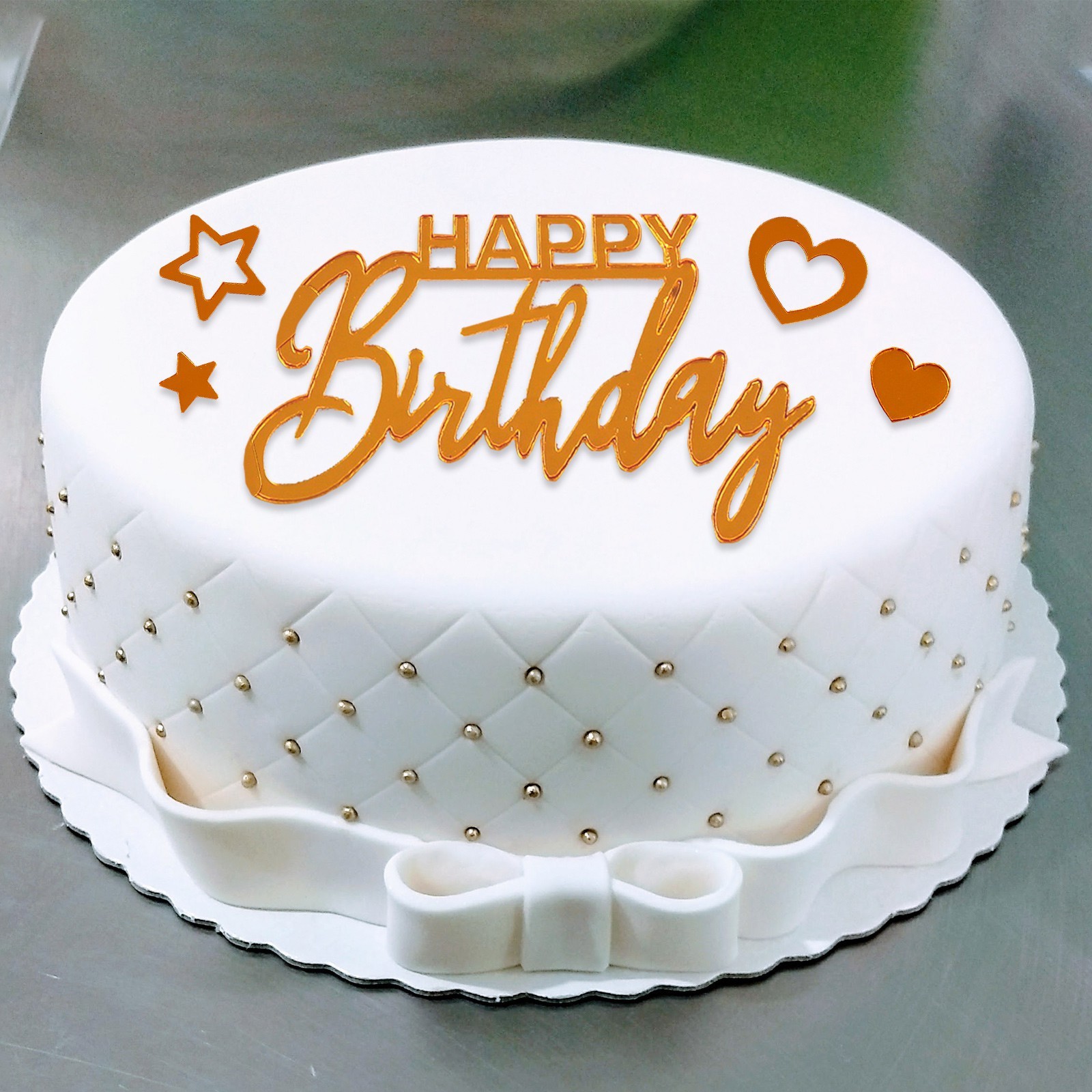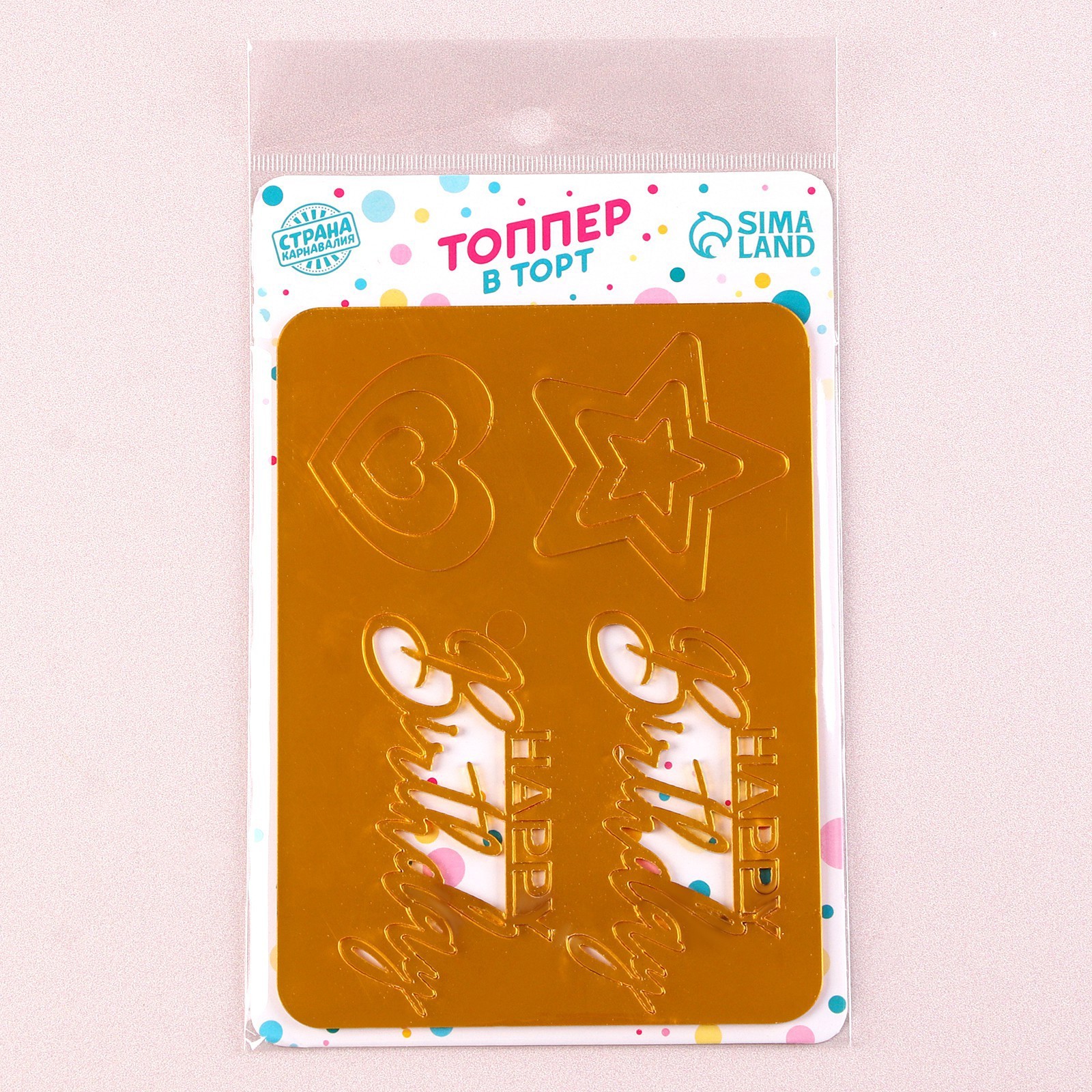 Украшение для торта «с днём рождения», со звёздами и сердцами, цвет золото