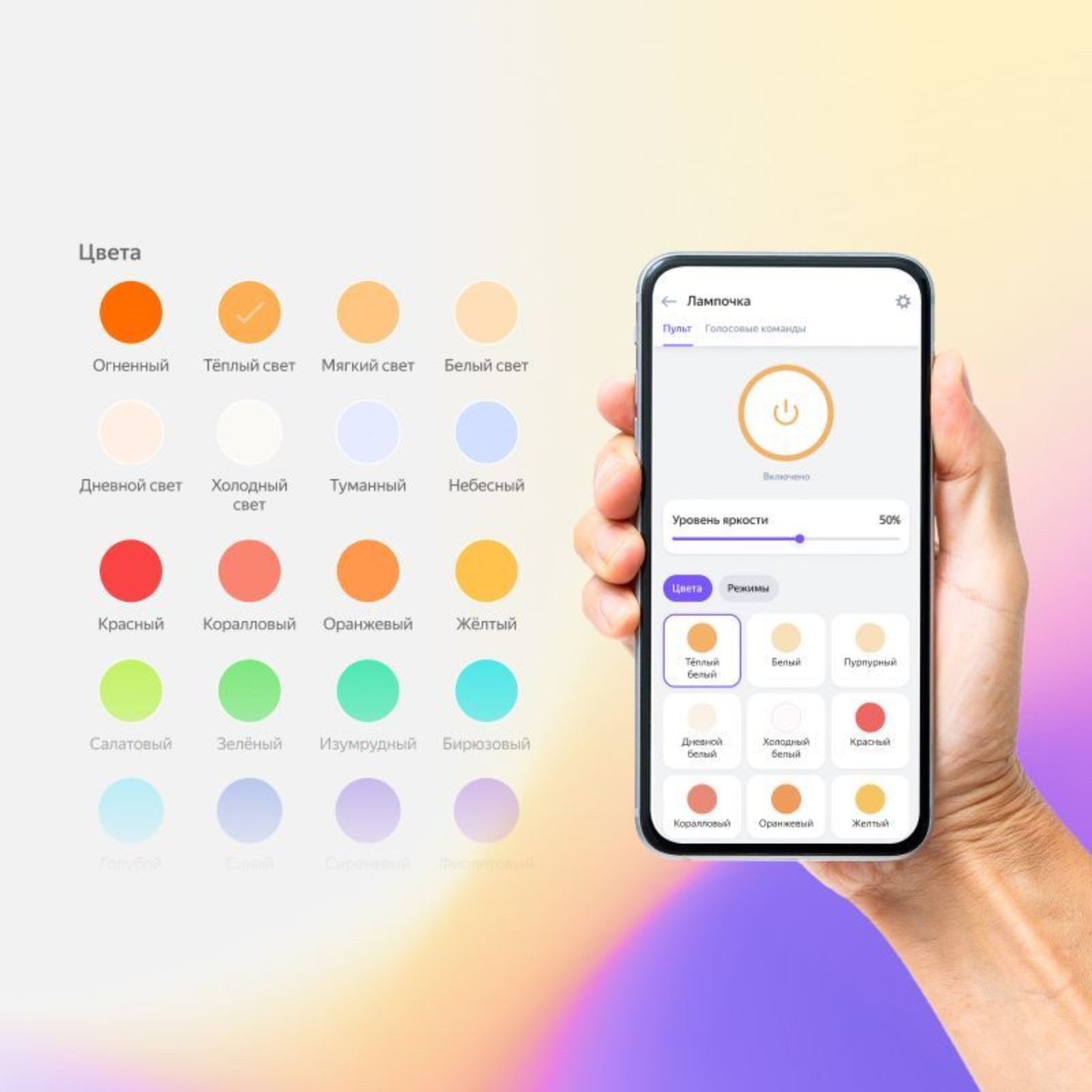 Умная лампа яндекс, работает с алисой, светодиодная, цветная, 4.9 вт, 400 лм, Gu10, 220 в