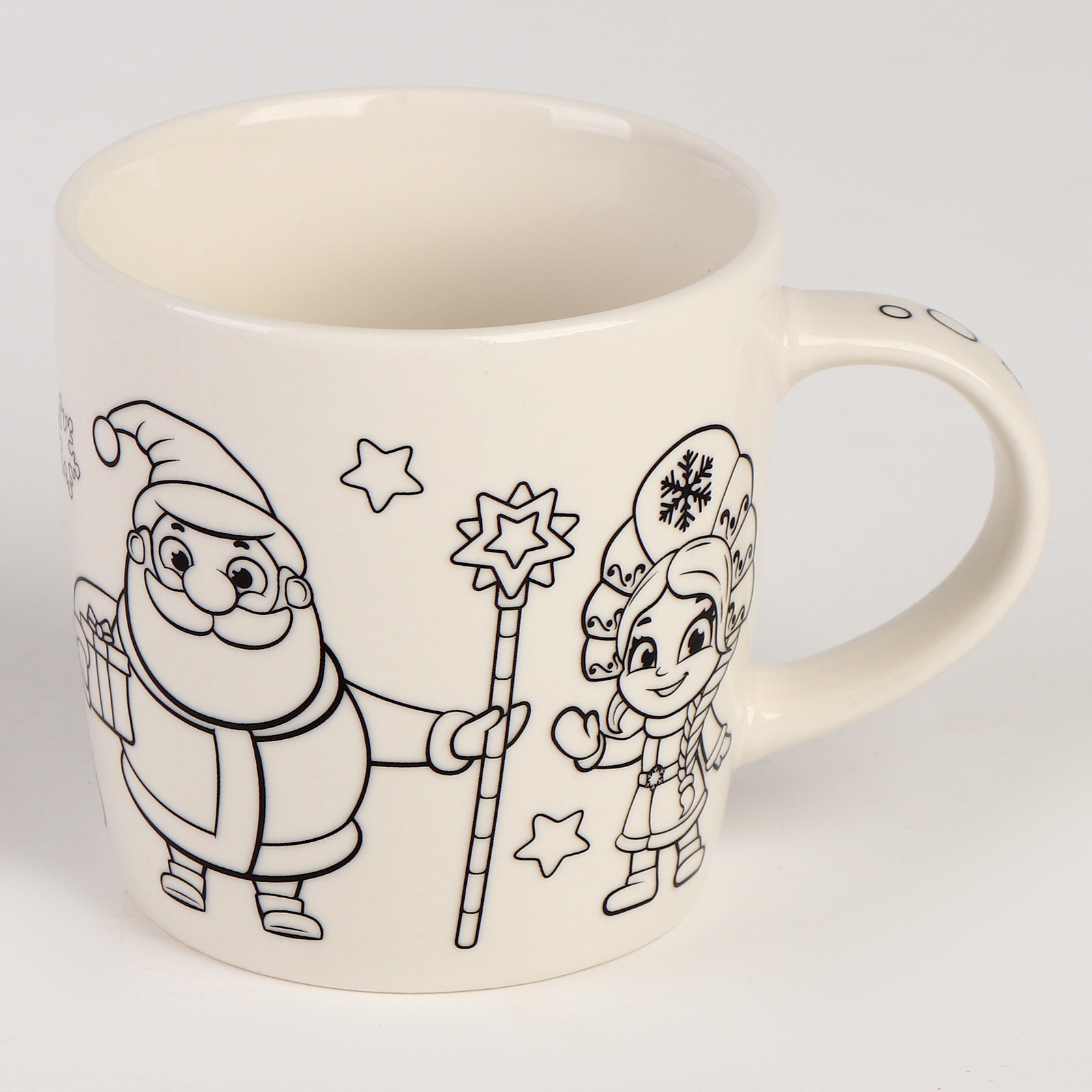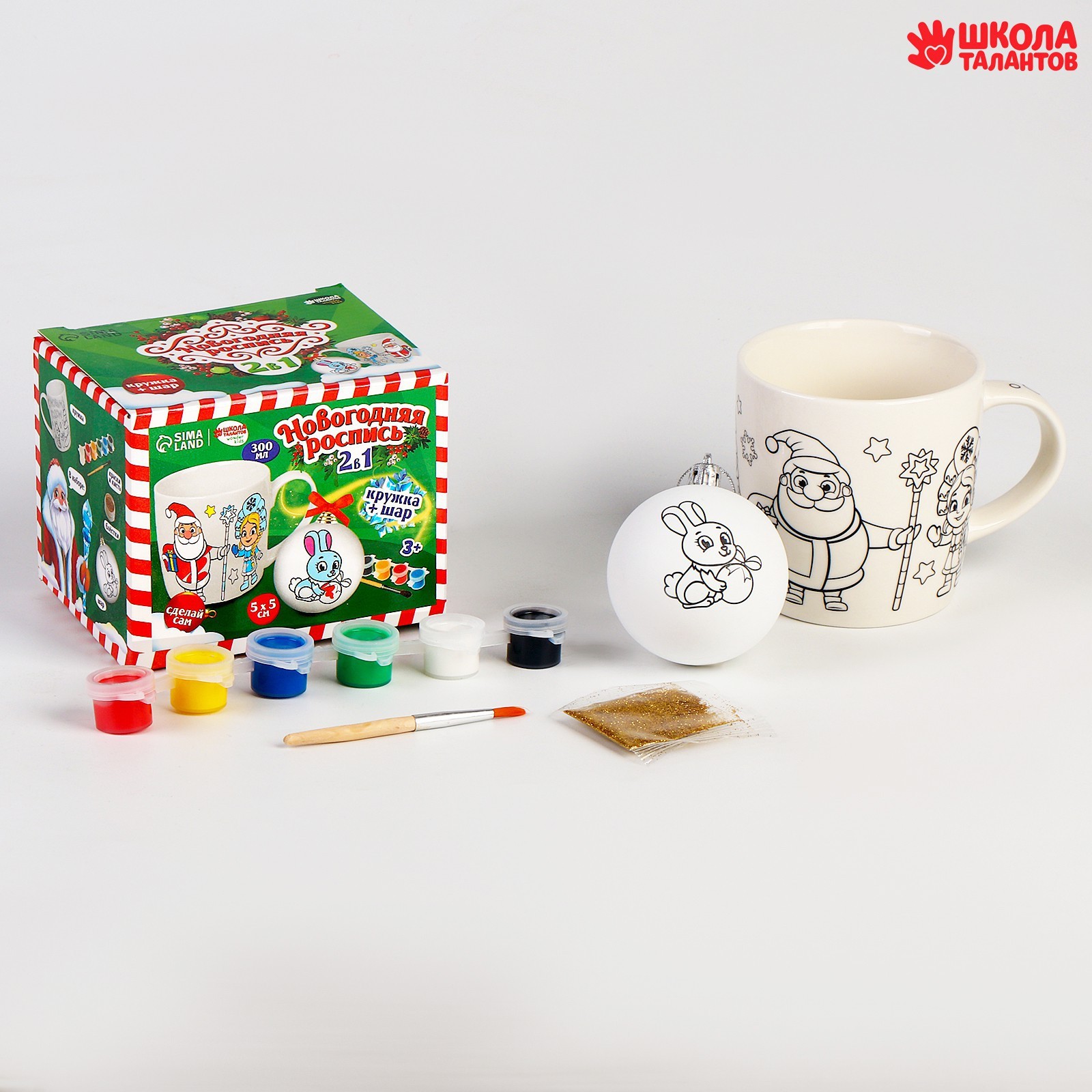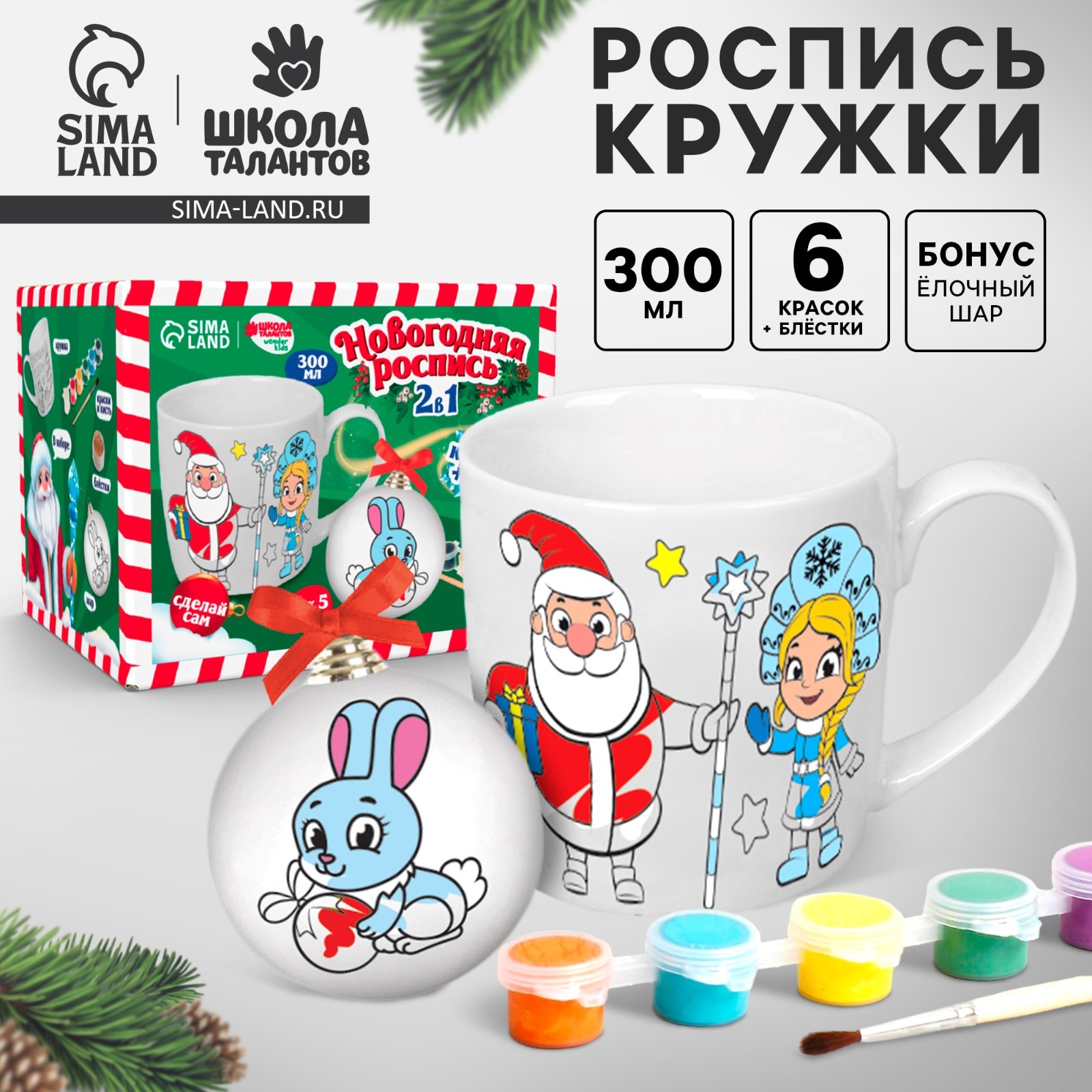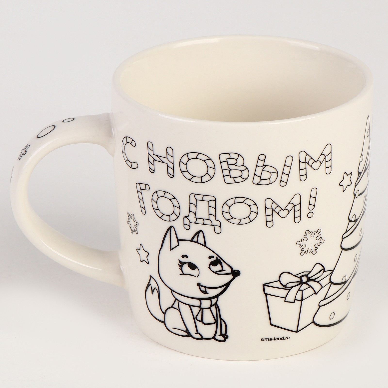 Кружка под раскраску с ёлочным шаром на новый год «с новым годом», 300 мл, набор для творчества