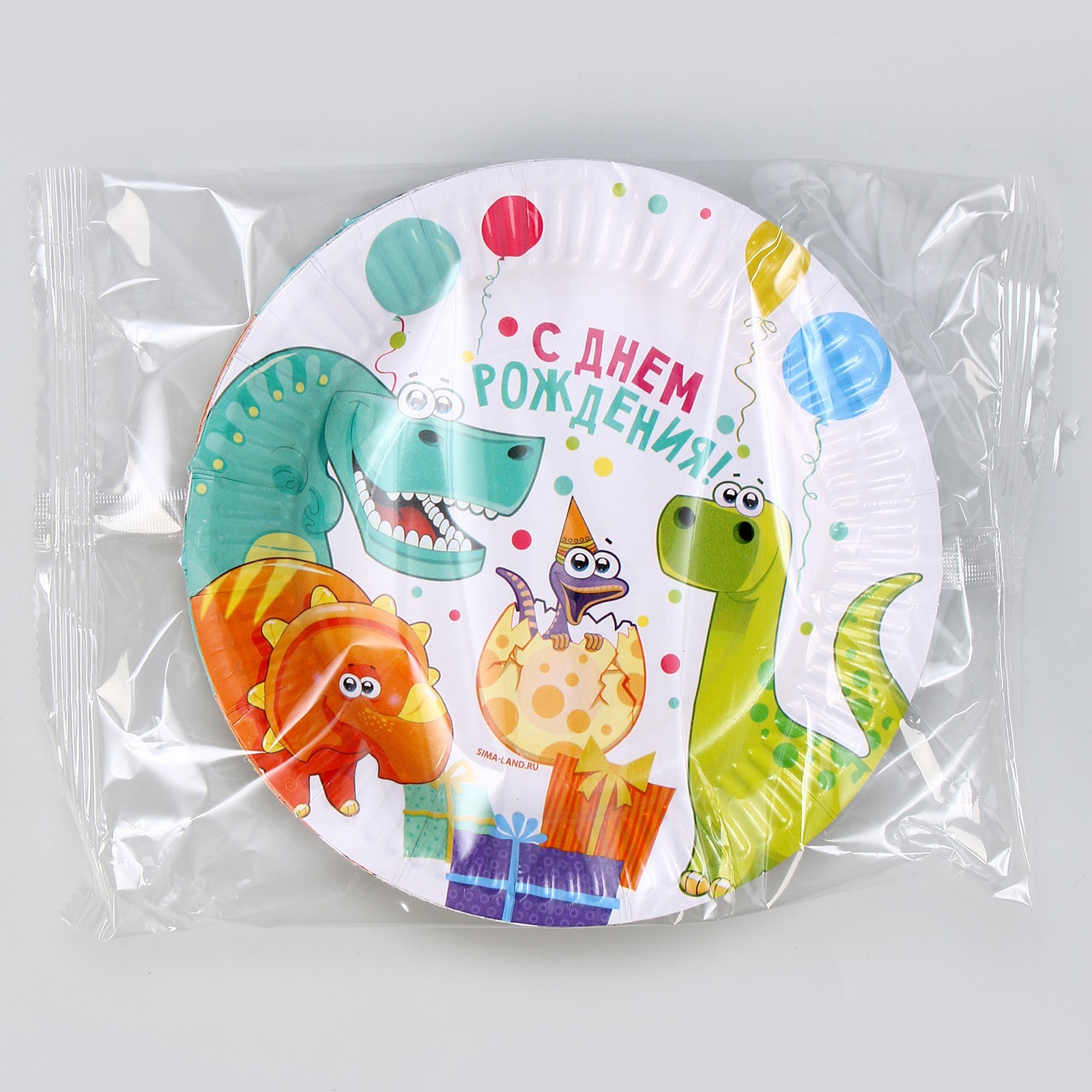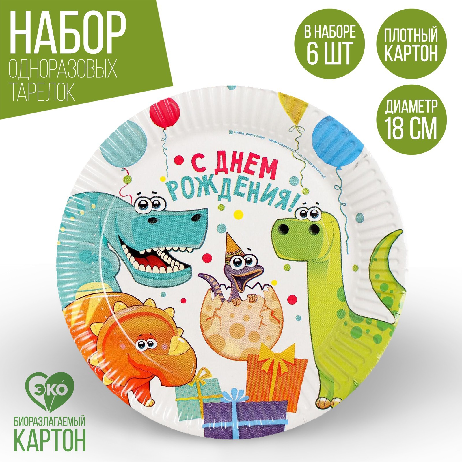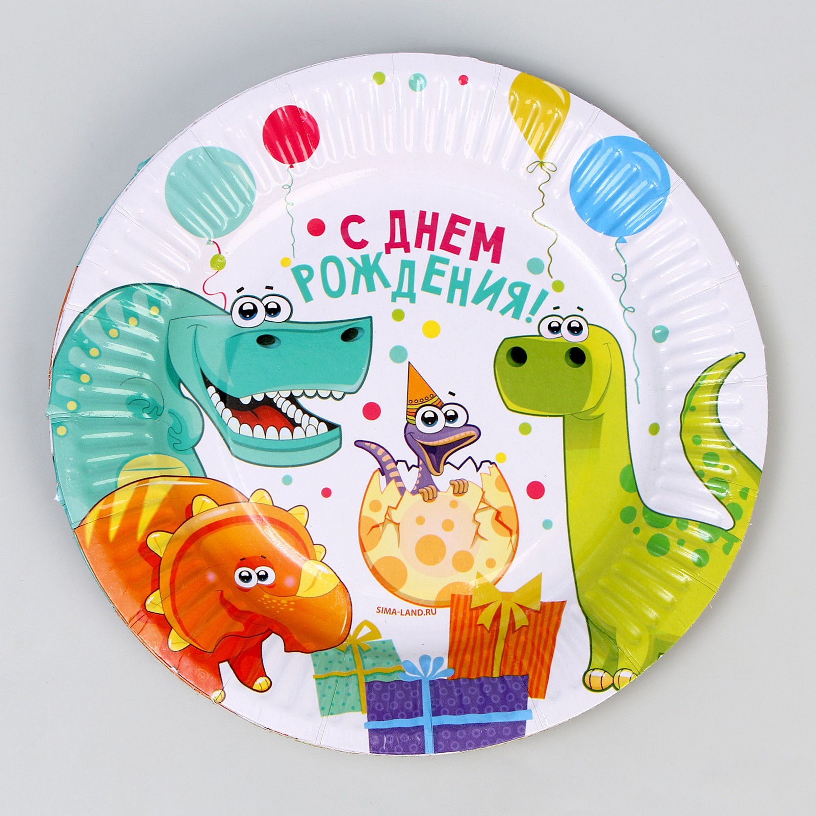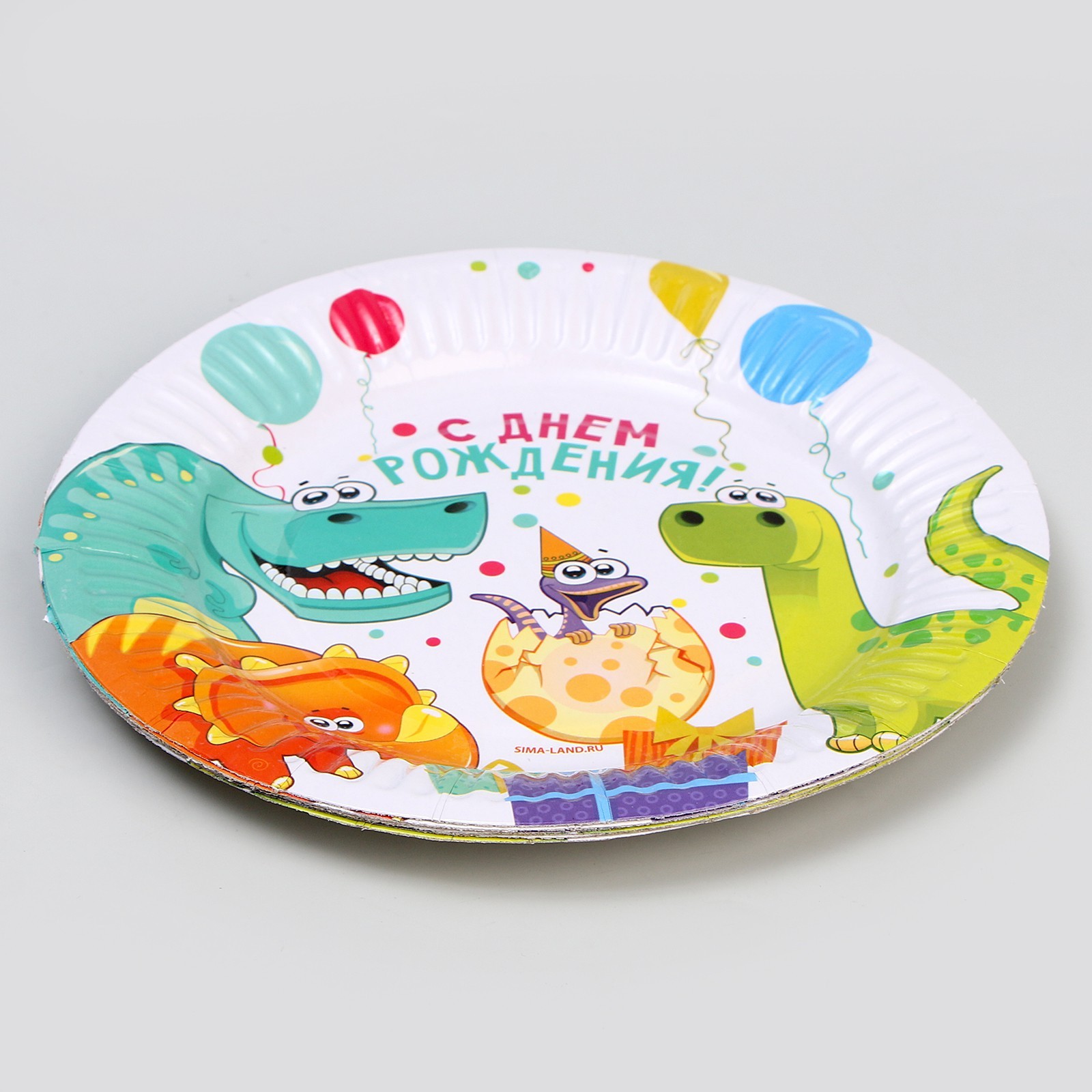 Тарелка одноразовая бумажная "динозаврики!", (18 см) , набор 6 шт