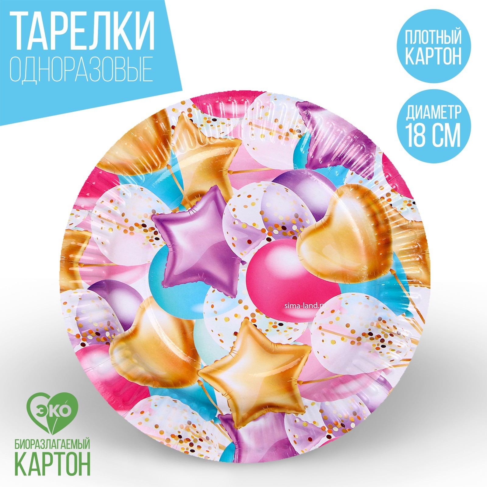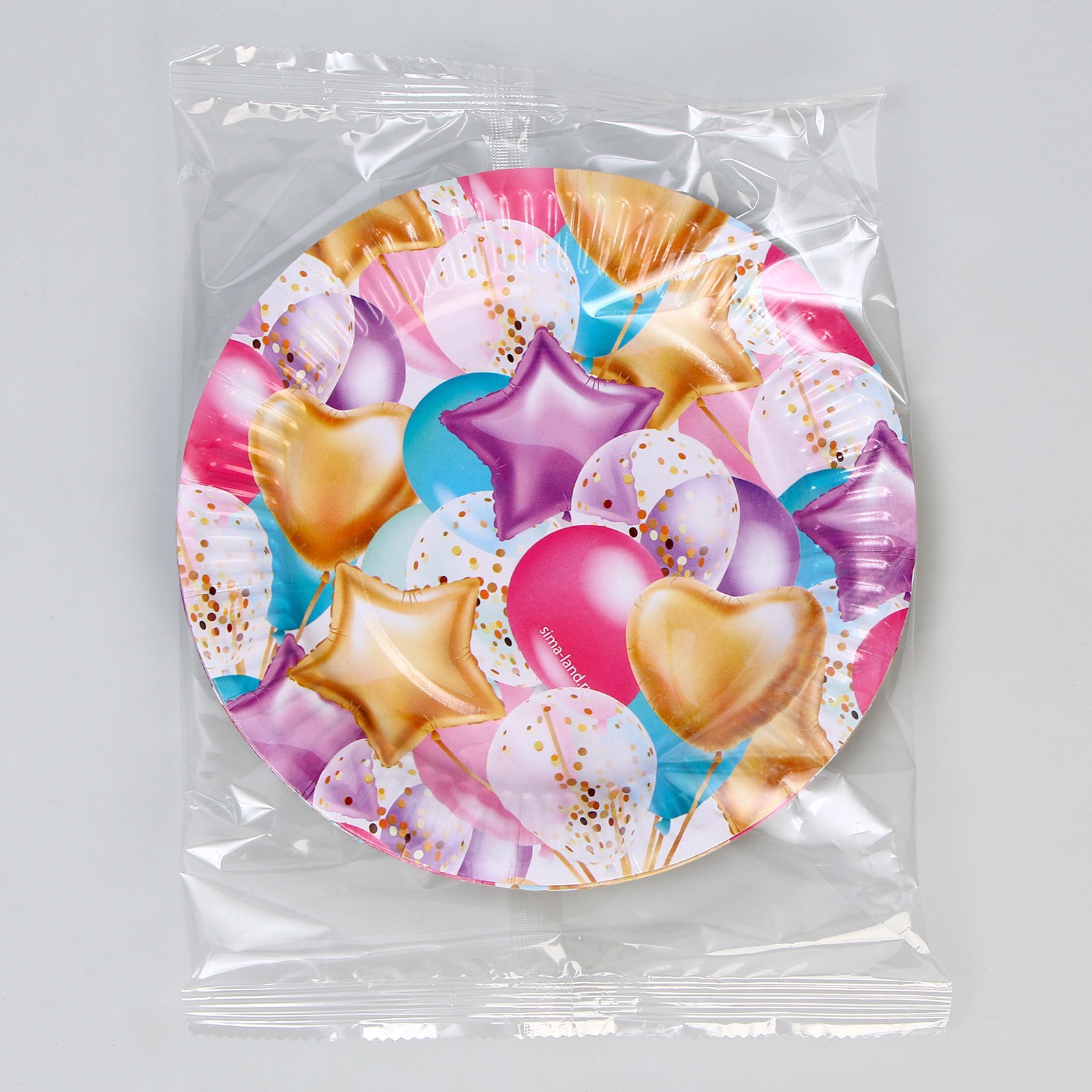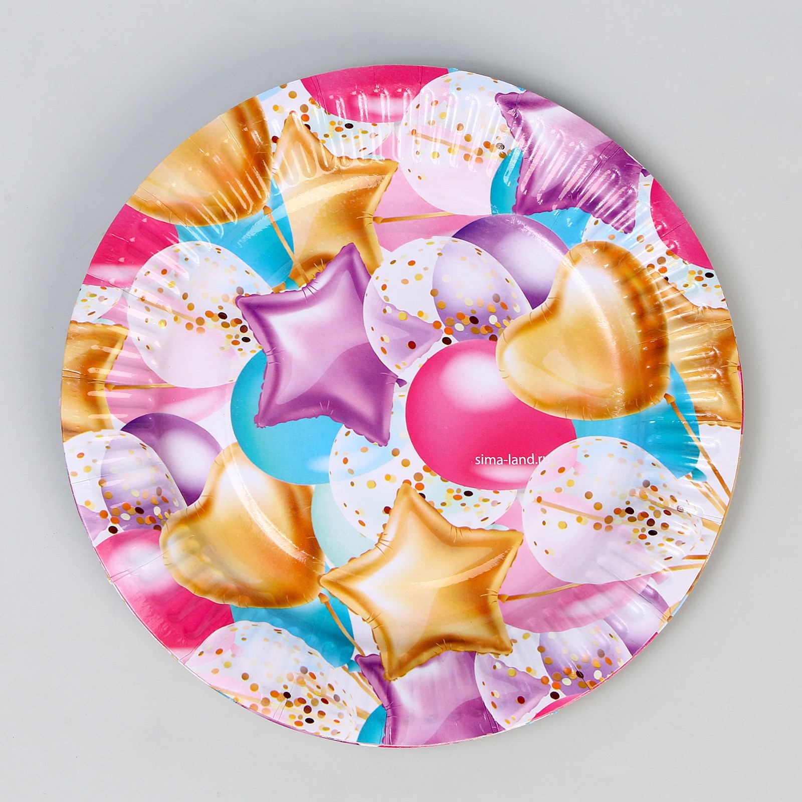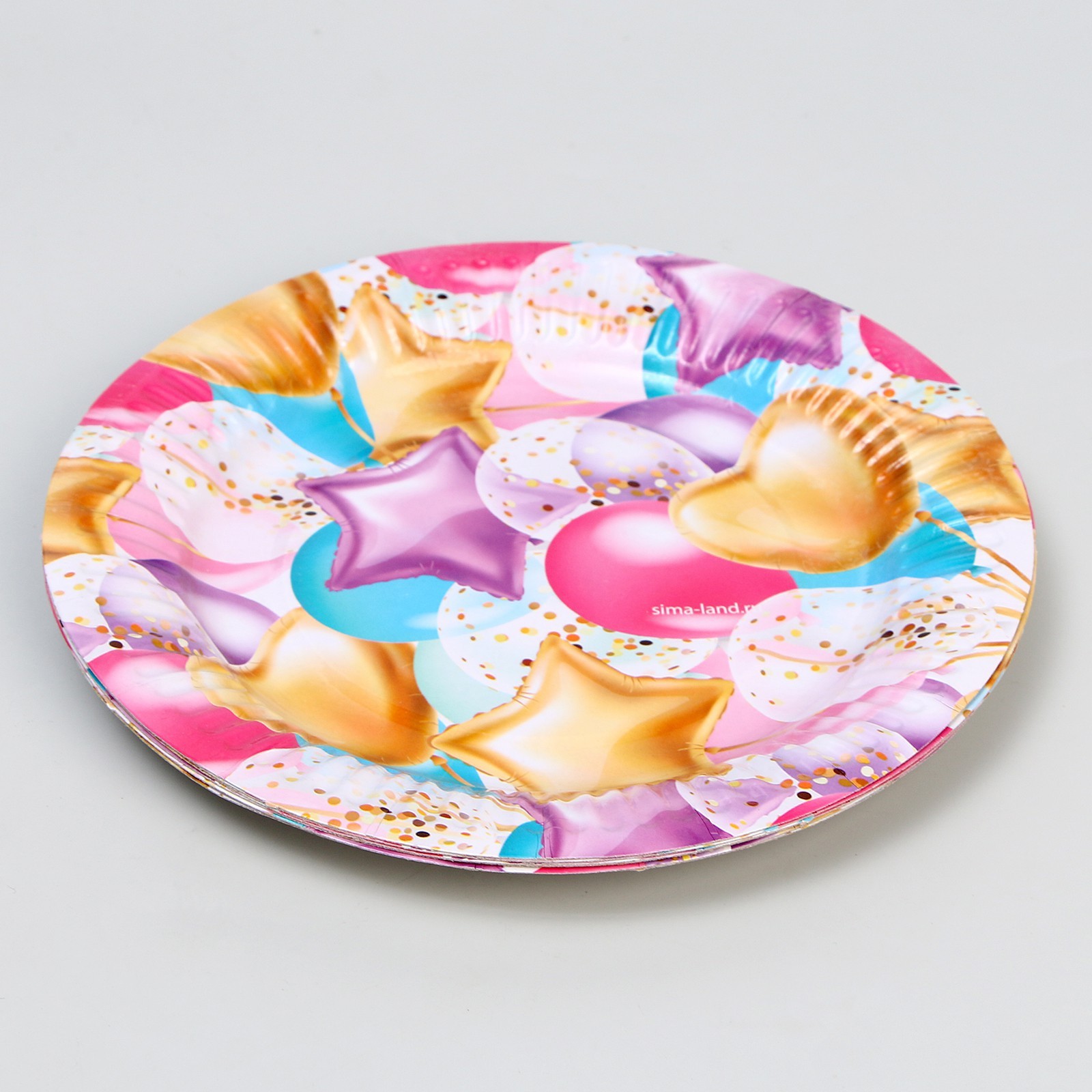 Тарелка одноразовая бумажная "шары", (18 см) , набор 6 шт