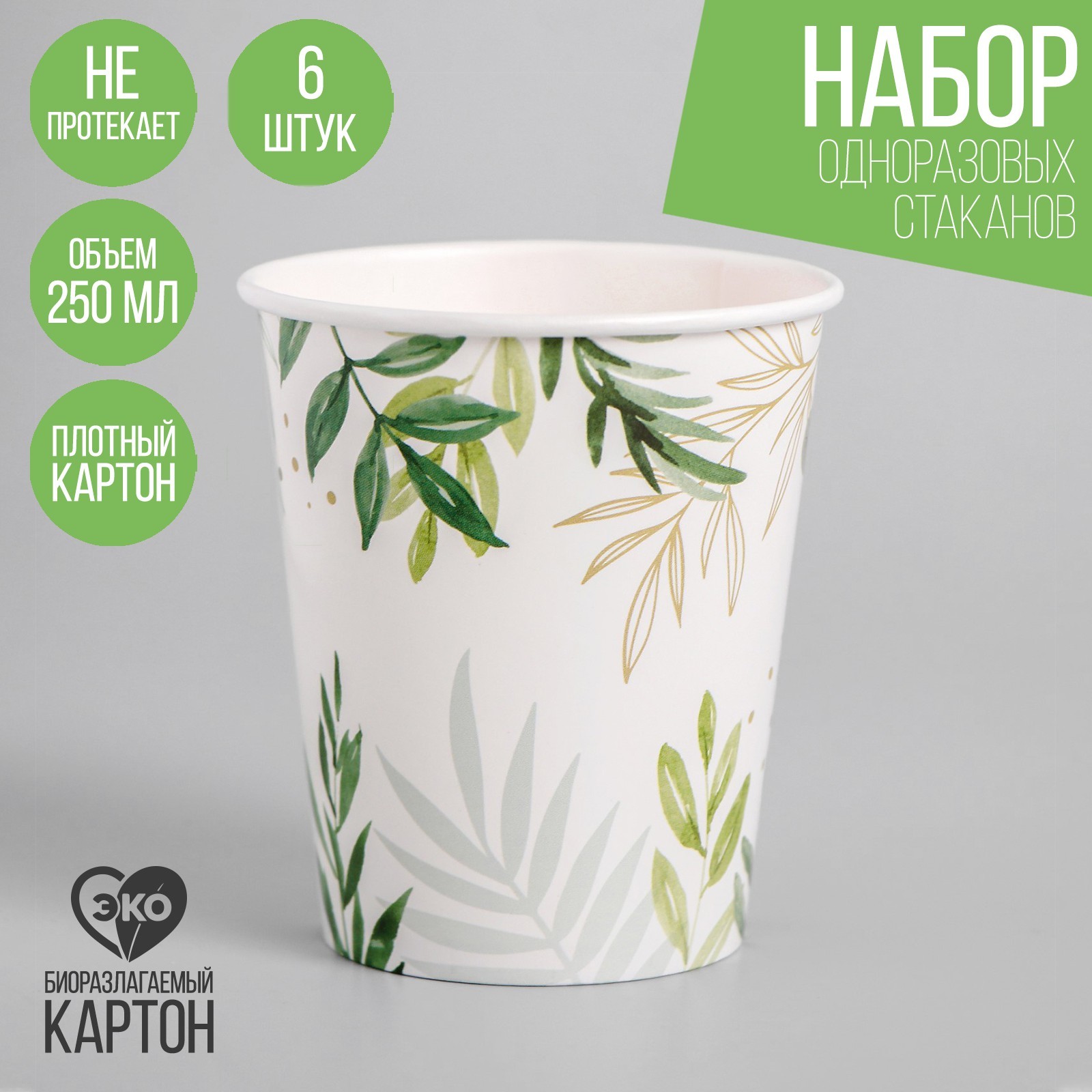 Стакан одноразовый бумажный "природа", 250 мл,набор 6 шт