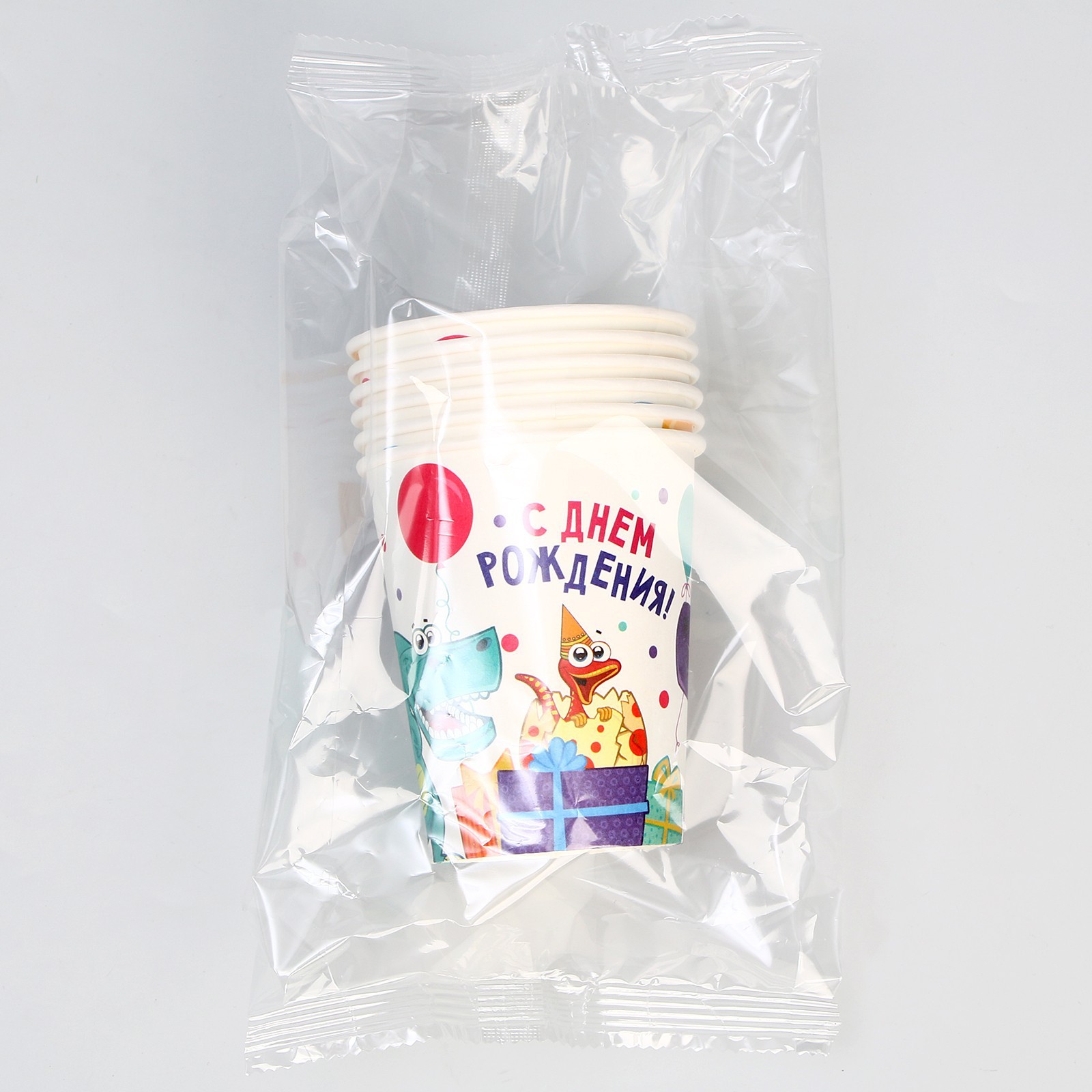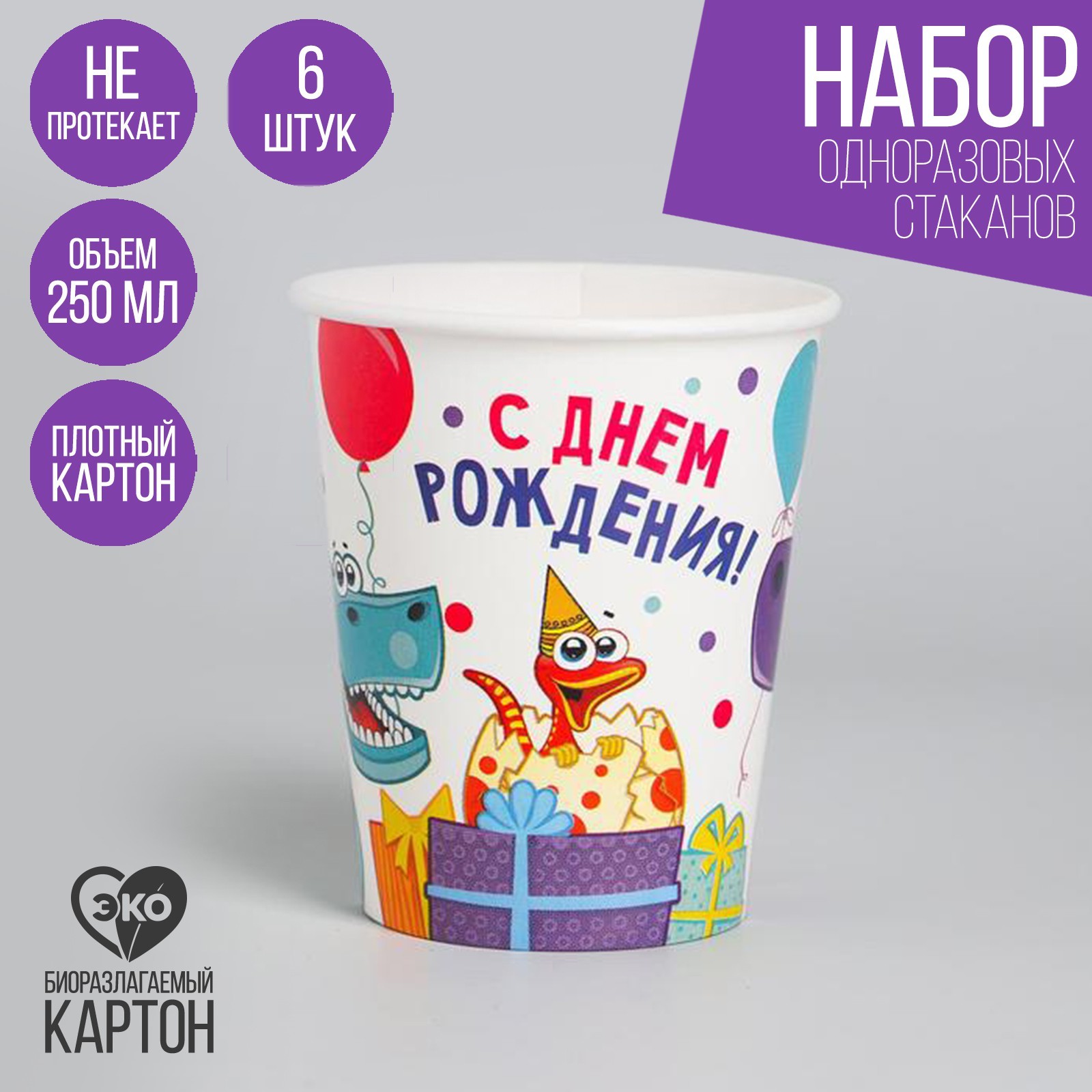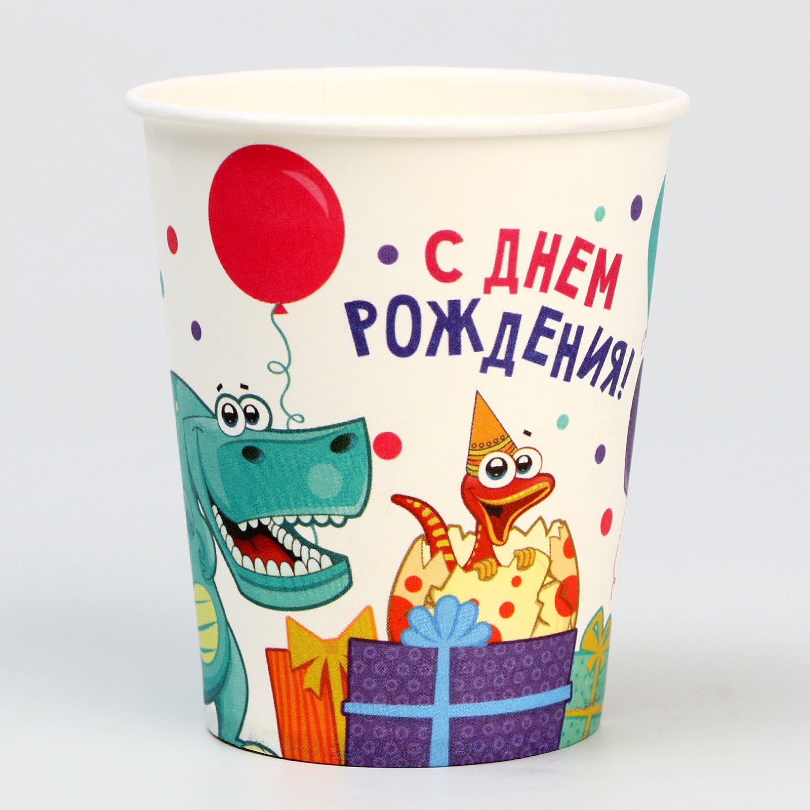Стакан одноразовый бумажный "динозаврики", 250 мл,набор 6 шт.