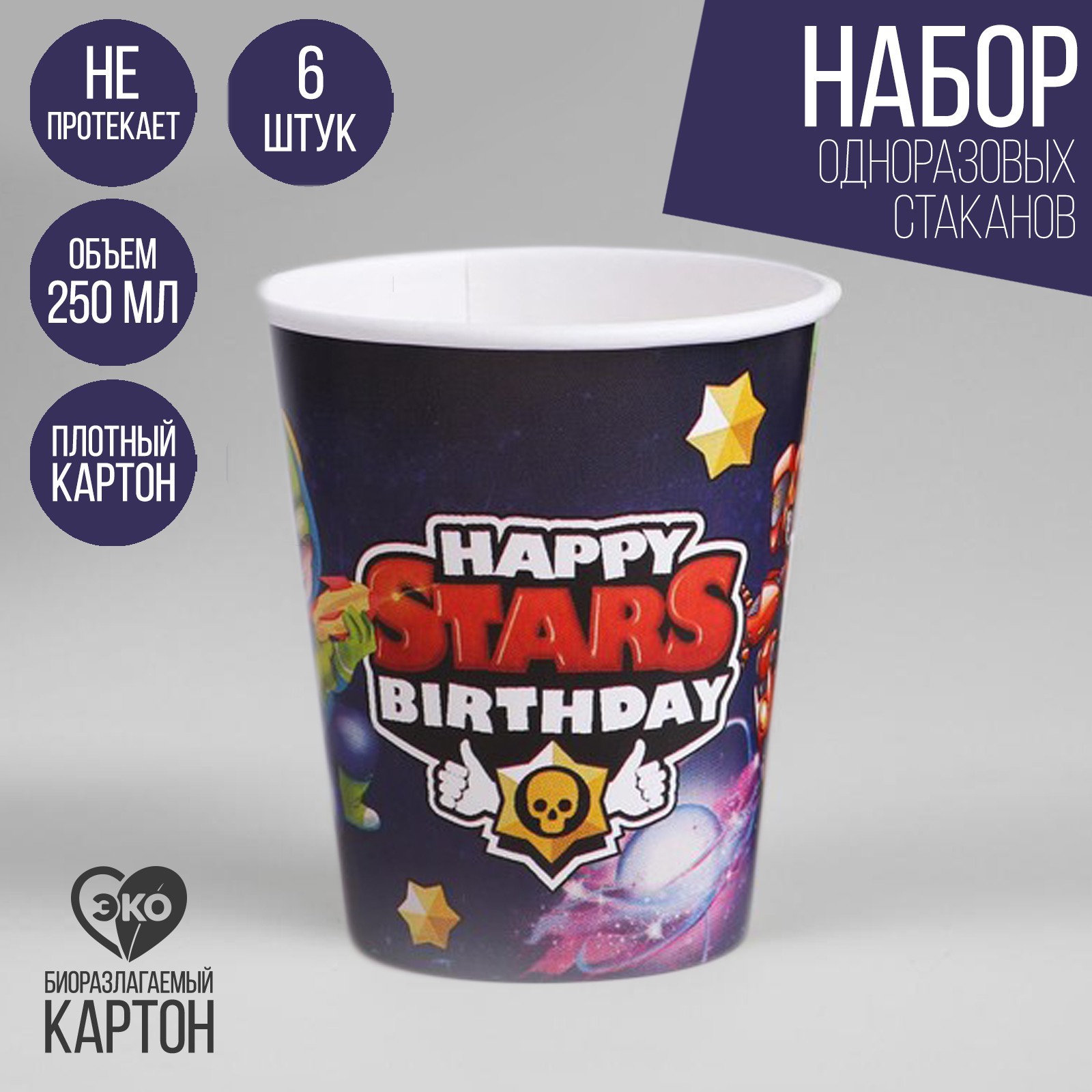 Стакан одноразовый бумажный Stars , набор 6 шт.